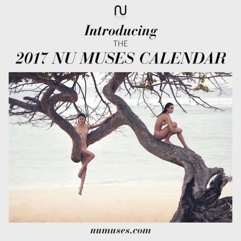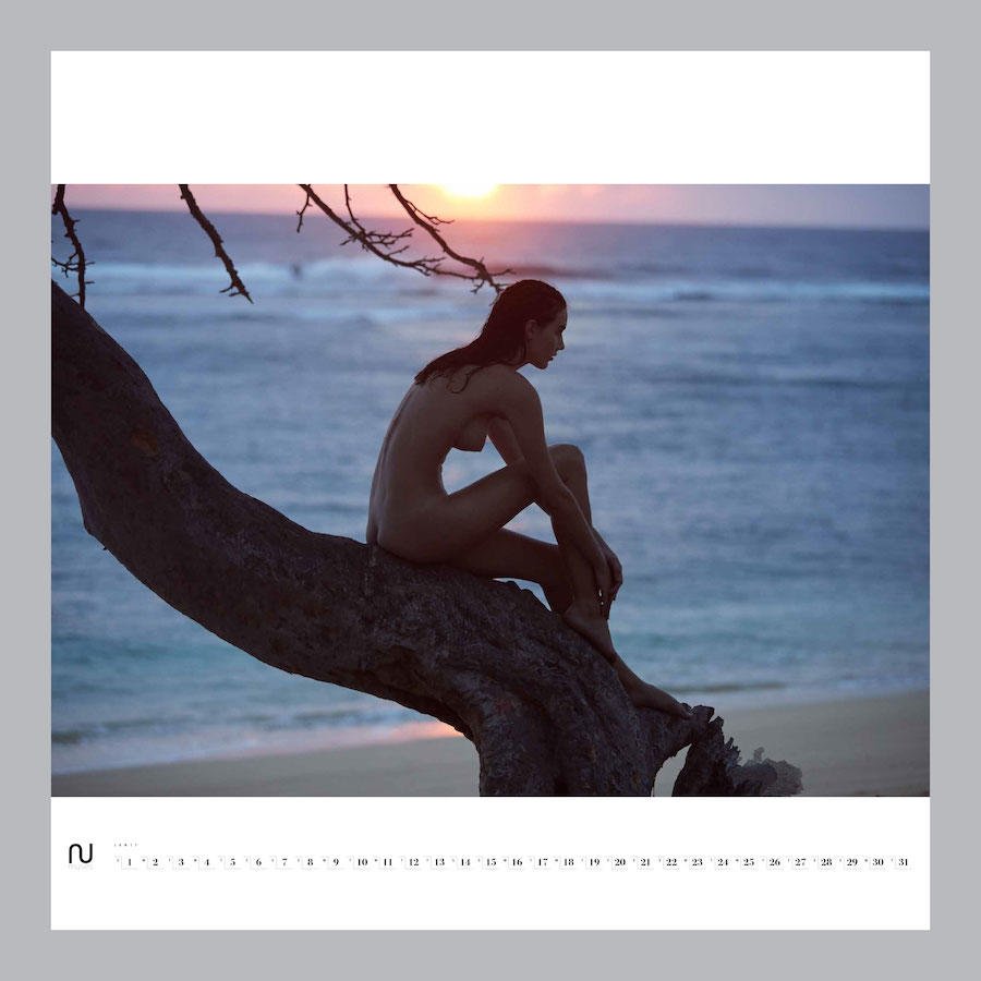 Анна Вольф сидит на дереве – Календарь The Nu Muses 2017 от Дэвида Беллемера. Анна Вольф – модель.
