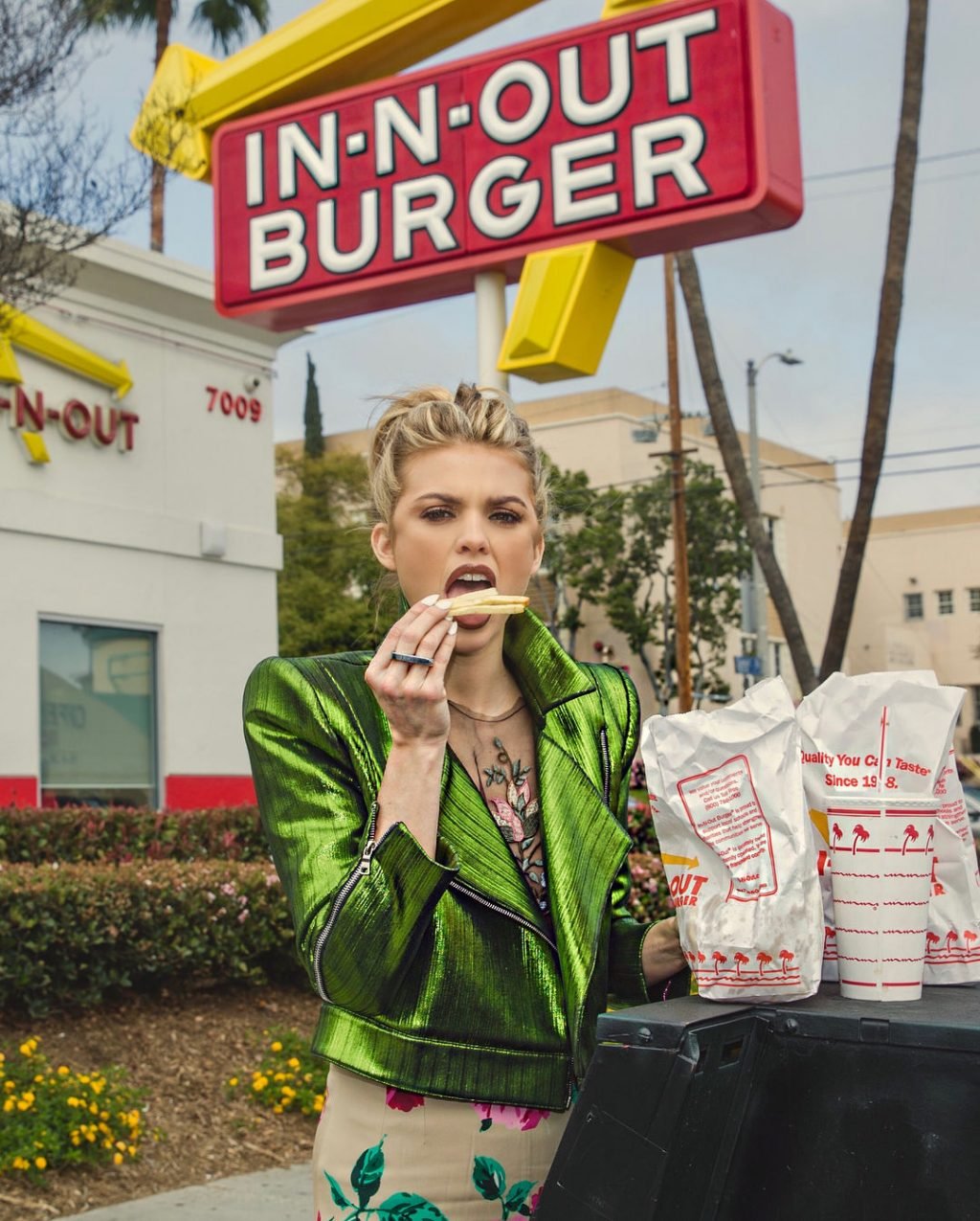 Эй, я ел в этом In N Out! Он рядом с Hollywood High School на Sunset Blvd!