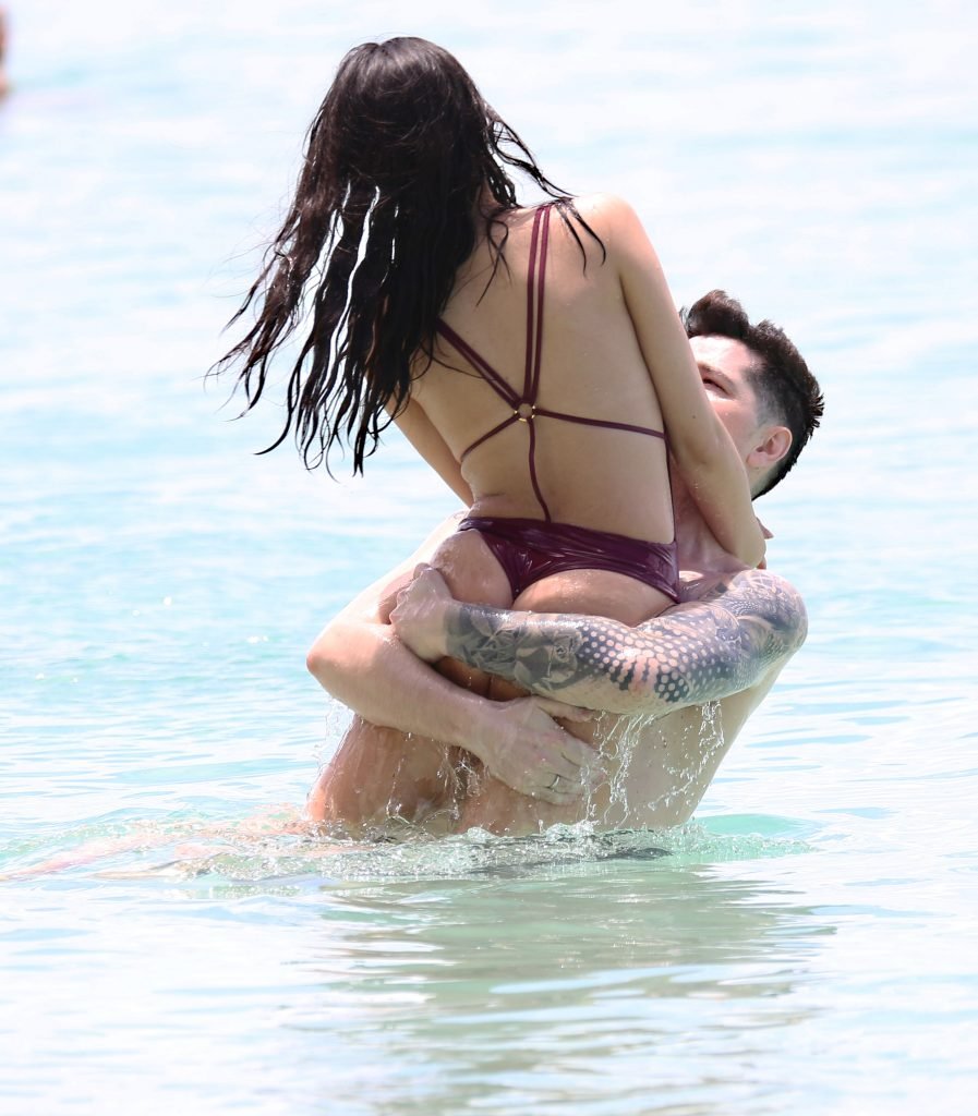 Danny O’Donoghue (The Script) и его бразильская девушка модель Анна Де Паула запечатлены на пляже во время отпуска в Карибском бассейне, 25.03.2018. Анна Де Паула была в бордовом купальнике и продемонстрировала свою отличную попу!