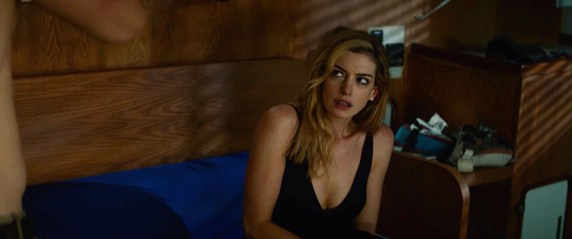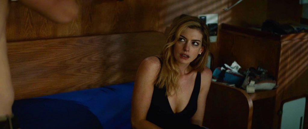 Посмотрите последние сексуальные и слегка обнажённые видео-редакции Анны Хэтэуэй из “Спокойствия” (2019). Анна (Карен Зариакас) снимает с себя халат, который ей помогает снять Джейсон Кларк (Фрэнк Зариакас). Мы видим её оголённую спину чуть выше ягодиц (двойник тела?).