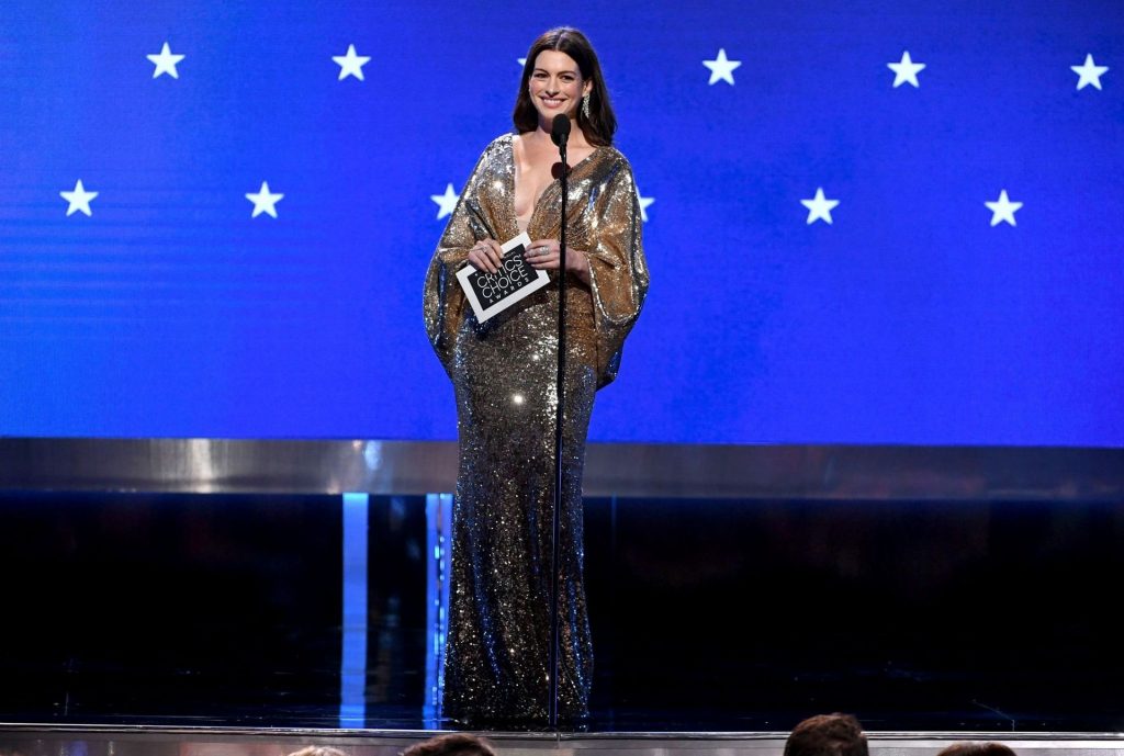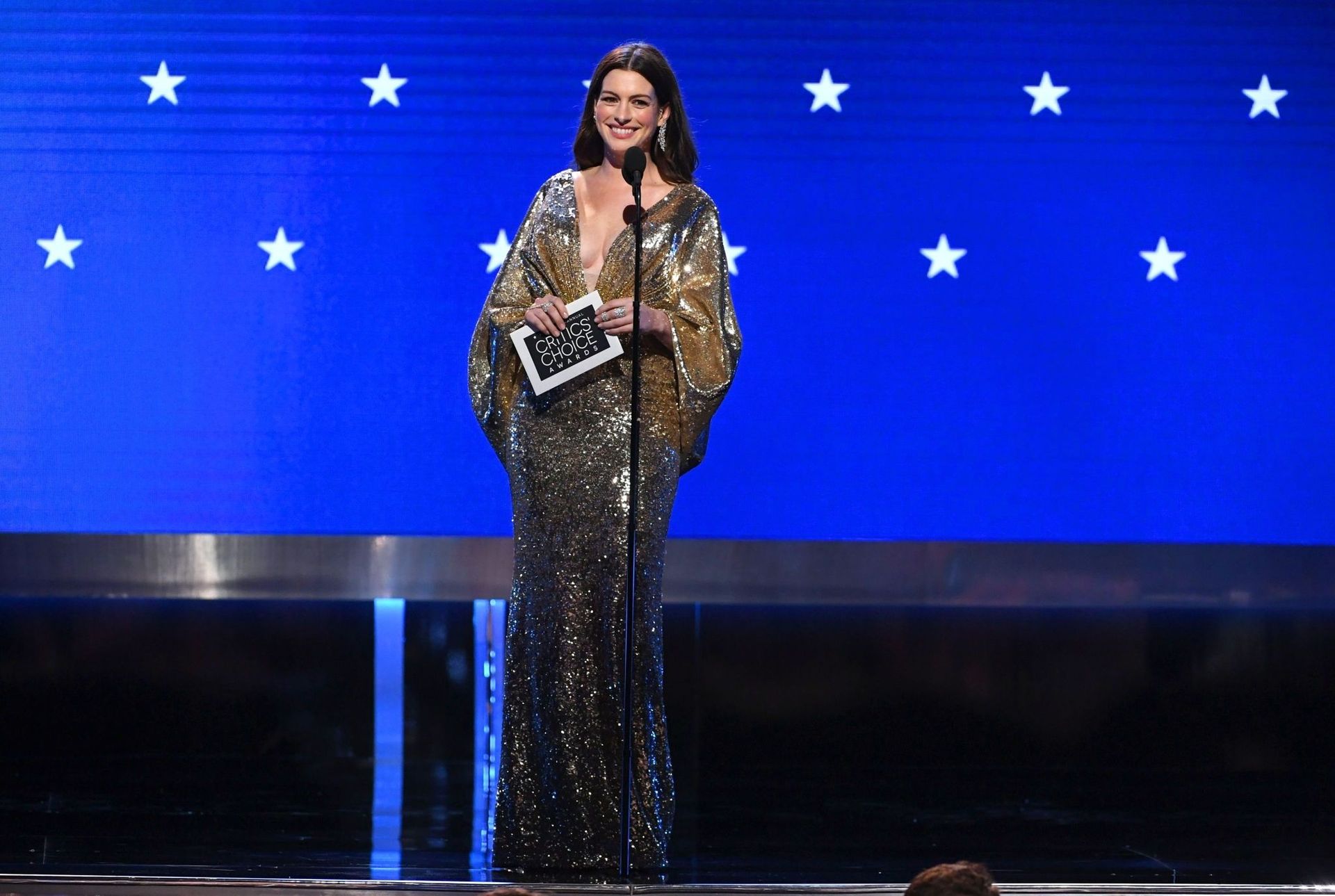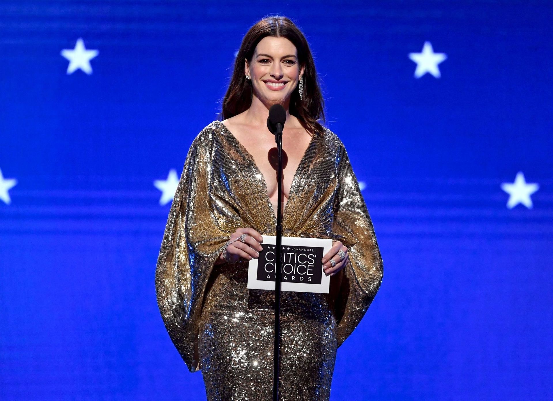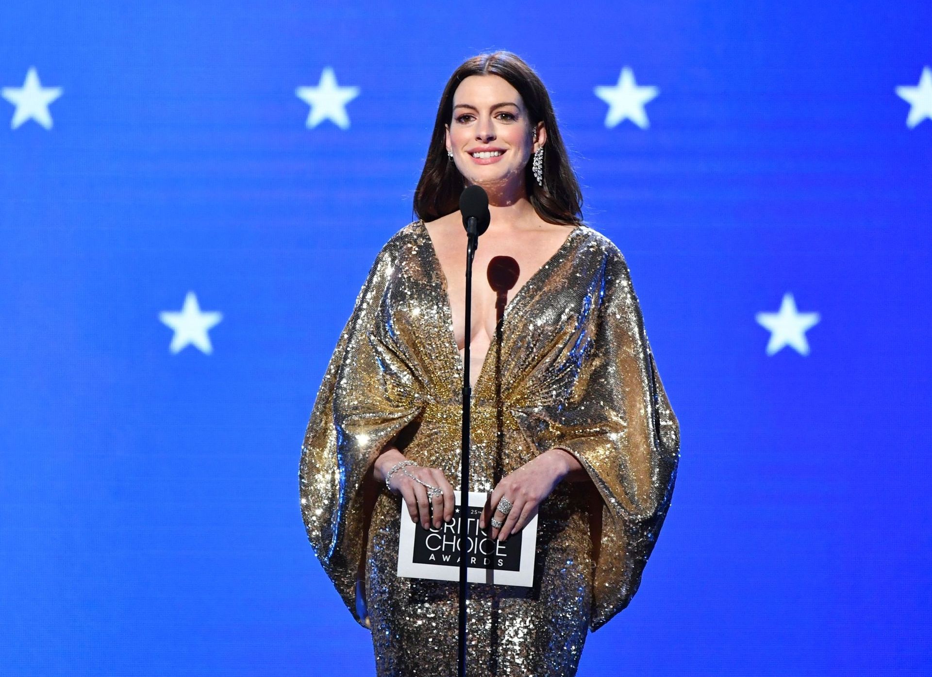 После рождения второго ребенка всего несколько недель назад, звезда The Fappening Энн Хэтэуэй снова появилась на красной дорожке. И сделала это, во всех смыслах, блестяще! Одна из гостей влиятельной премии Critics’ Choice Awards в Санта-Монике появилась в золотом платье Versace с глубоким вырезом. Это один из лучших образов мероприятия!