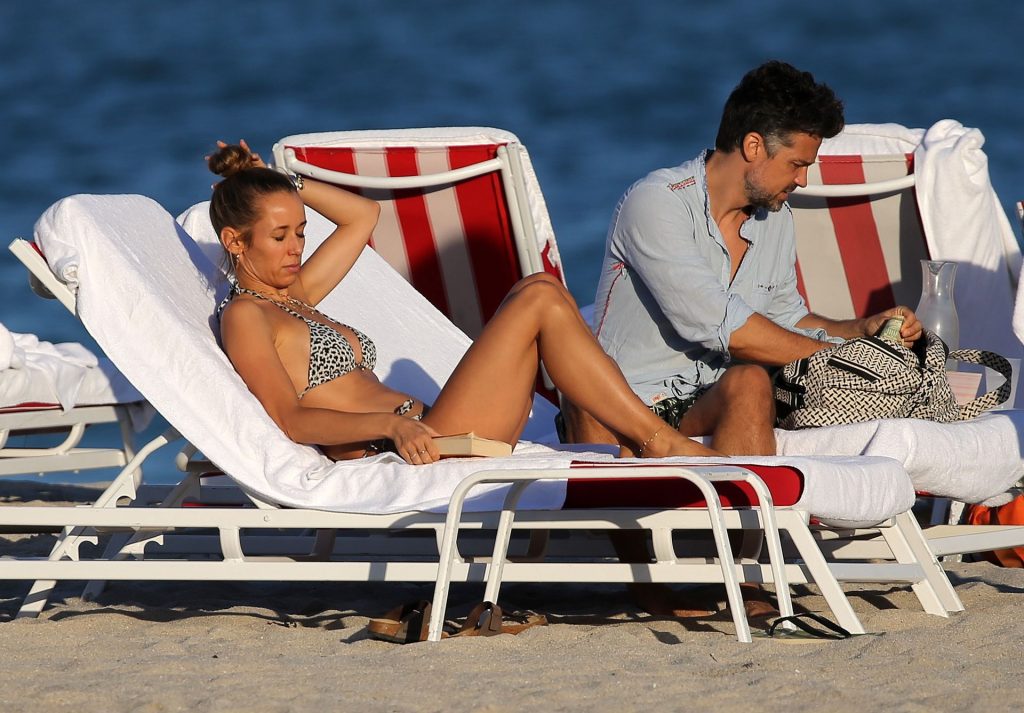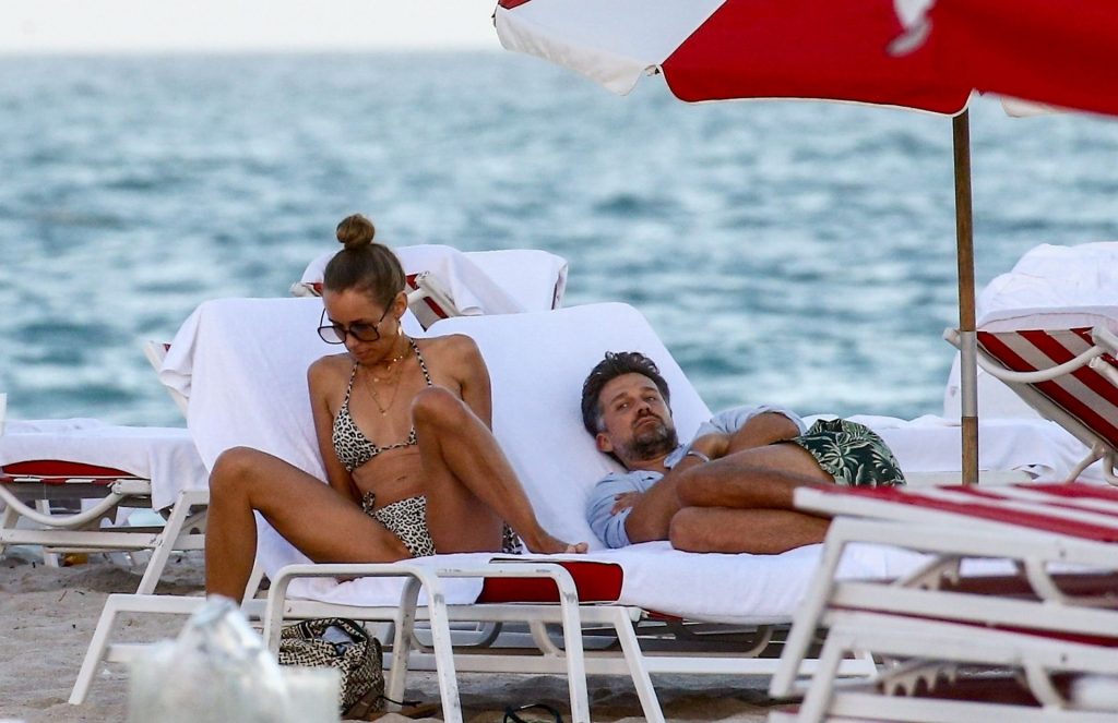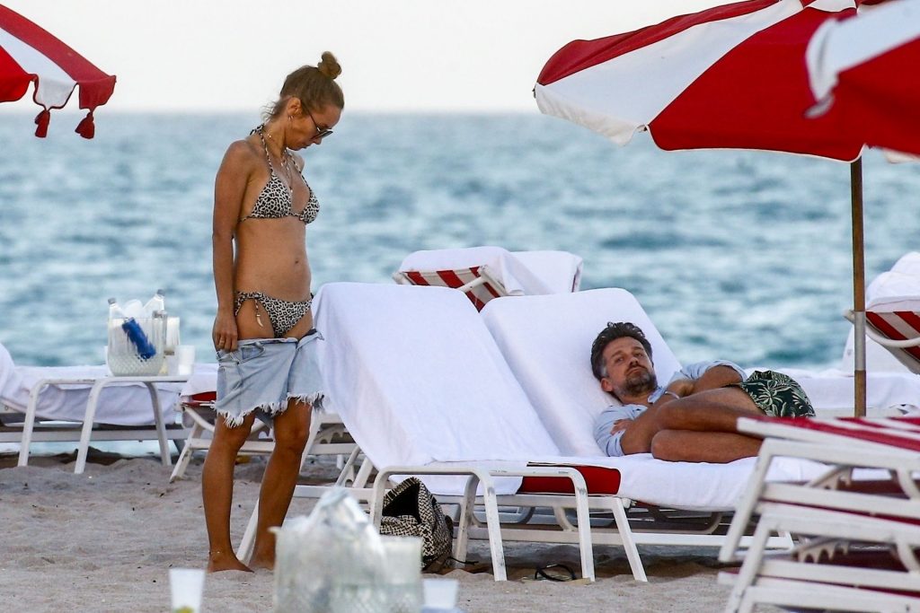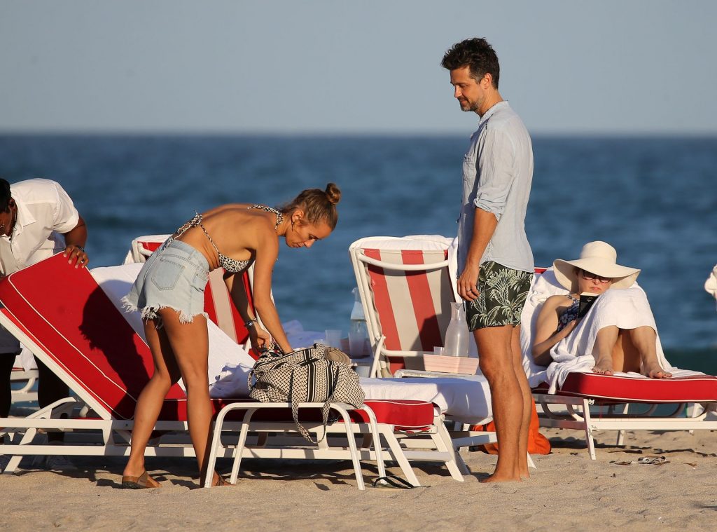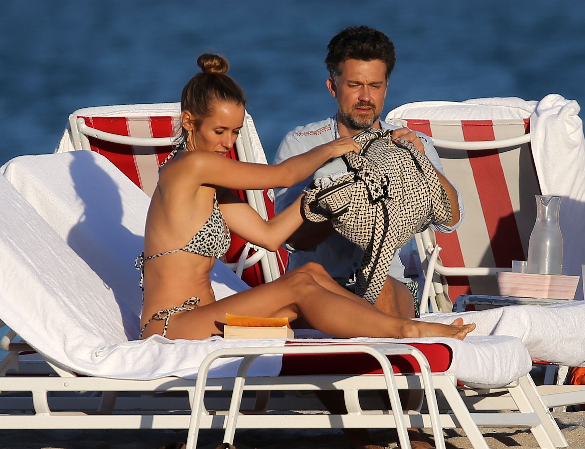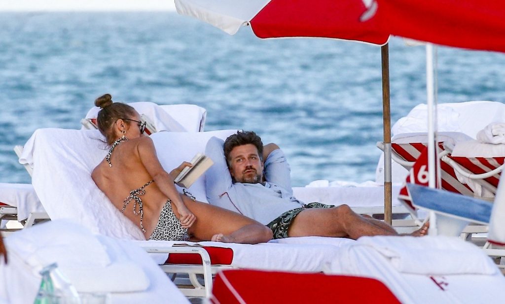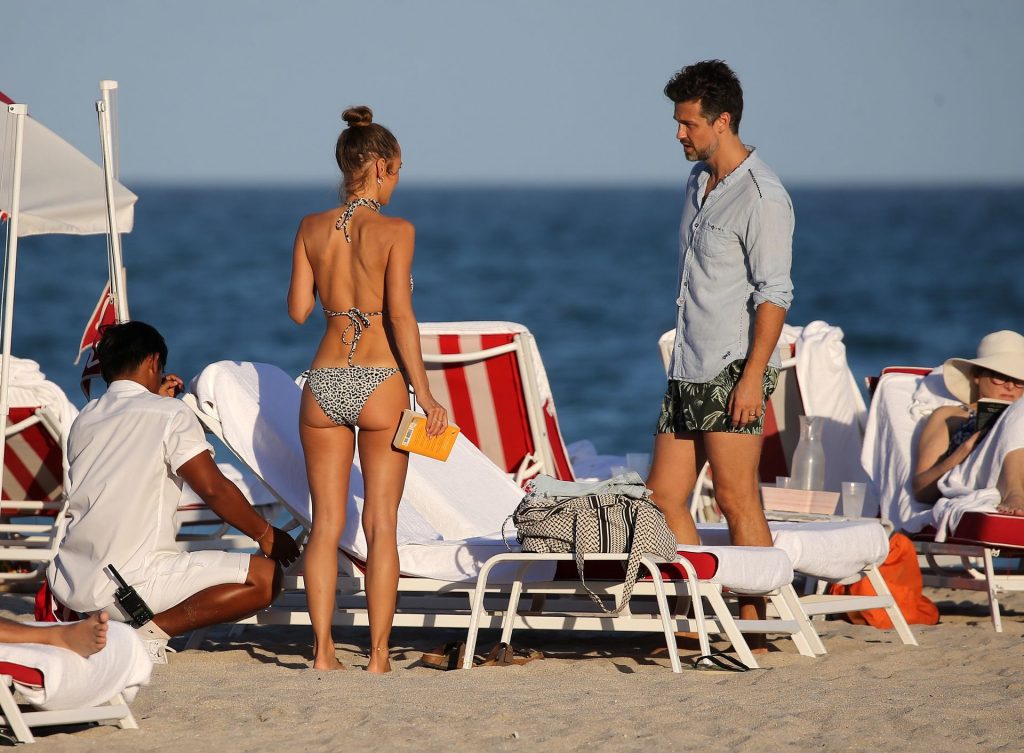 Фитнес-ведущая немецкого телевидения Аннемари Карпендале и её актёрский муж Уэйн Карпендале вместе отдыхают на пляже в Майами-Бич, 01/03/2020. Аннемари надевает свои укороченные джинсы и целует своего возлюбленного, прежде чем улыбнуться нашим камерам.