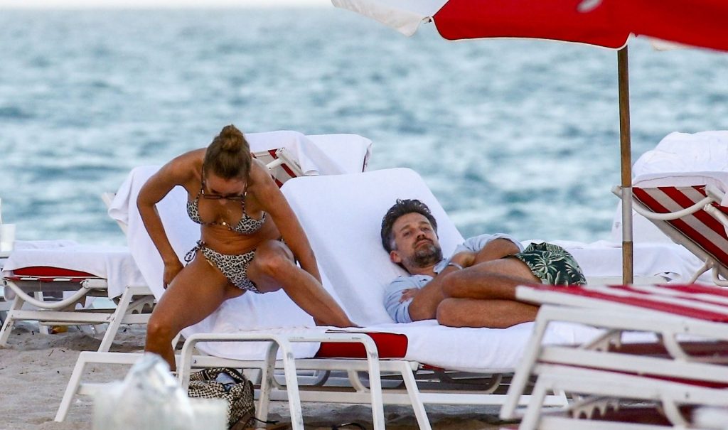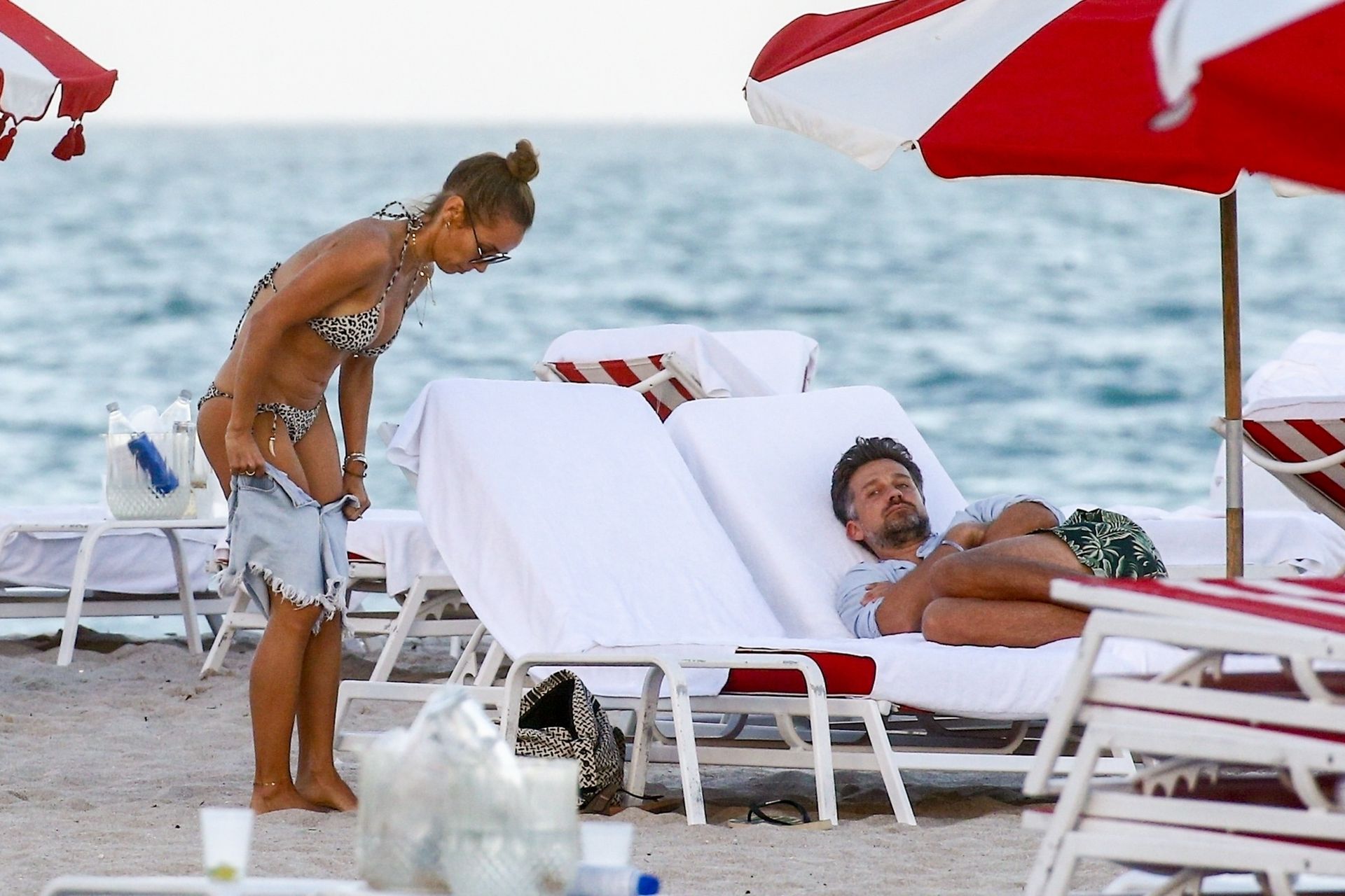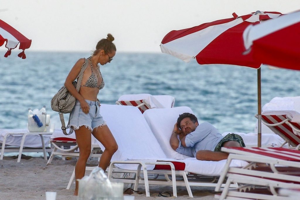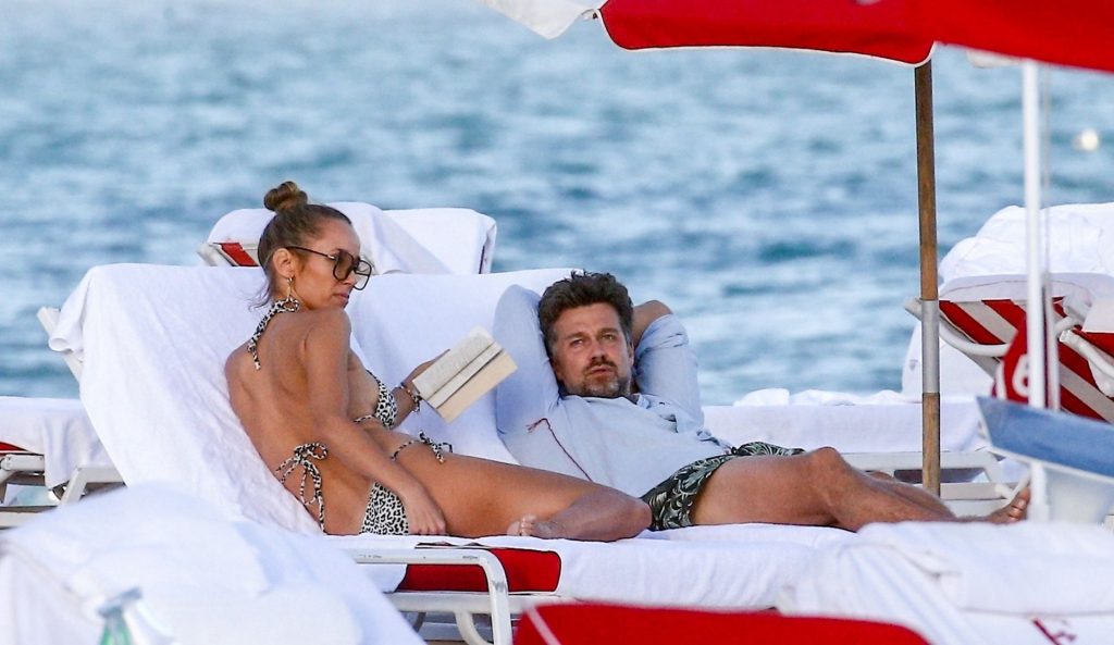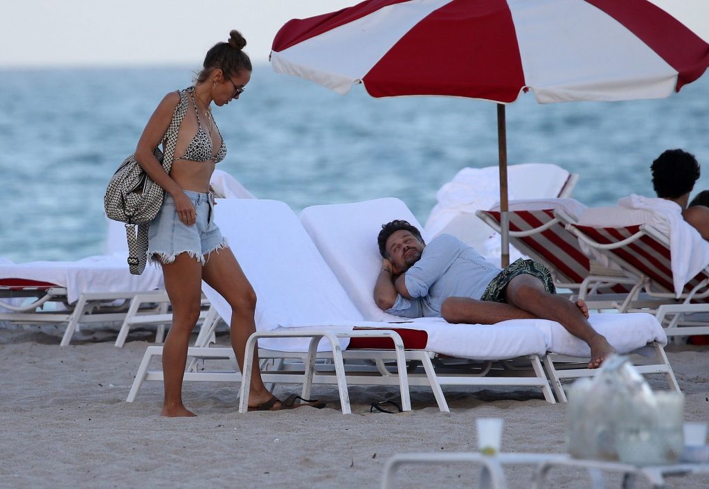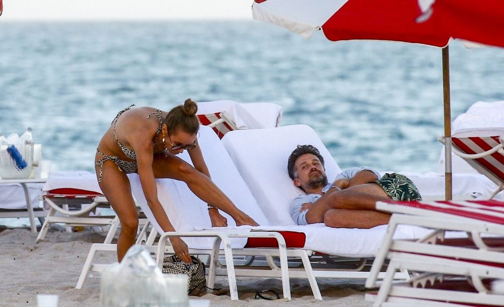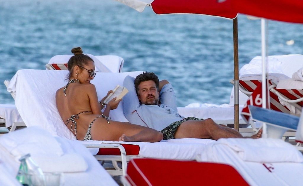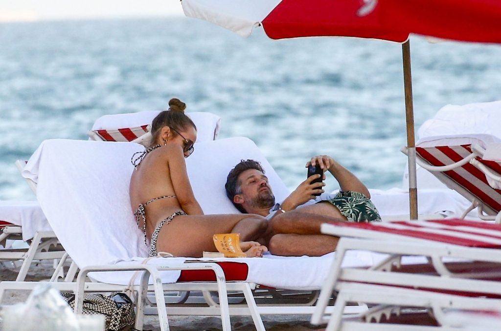 Фитнес-ведущая немецкого телевидения Аннемари Карпендале и её актёрский муж Уэйн Карпендале вместе отдыхают на пляже в Майами-Бич, 01/03/2020. Аннемари надевает свои укороченные джинсы и целует своего возлюбленного, прежде чем улыбнуться нашим камерам.