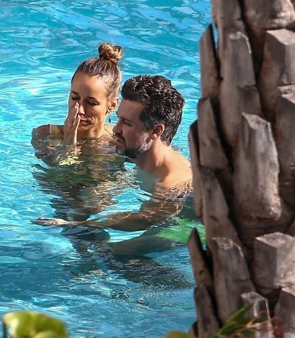 Wayne Carpendale наслаждается отпуском у бассейна с семьей, включая его жену Аннемари Карпендале и их сына Мадса, 01/04/2020. Троица выглядит так, будто они наслаждаются отпуском, отдыхая вместе на солнце.