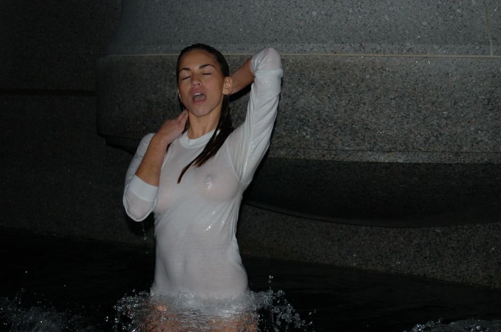 Американская певица, музыкант и звезда шоу “American Idol” Антонелла Мария Барба устроила ню-фотосессию, позируя в прозрачной мокрой футболке в фонтане.