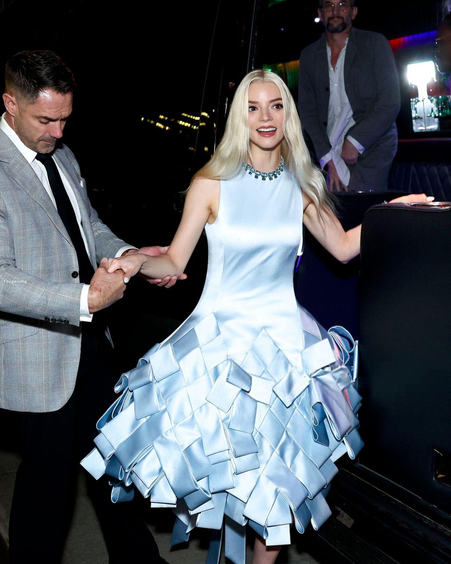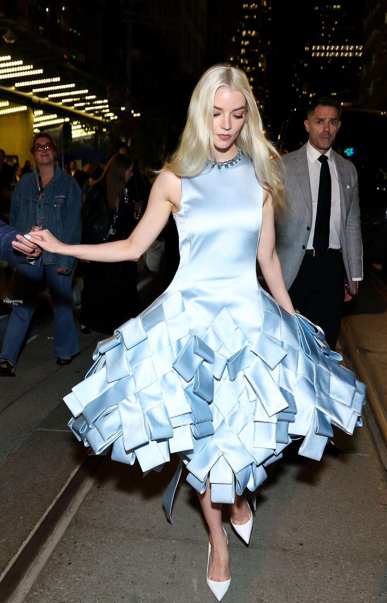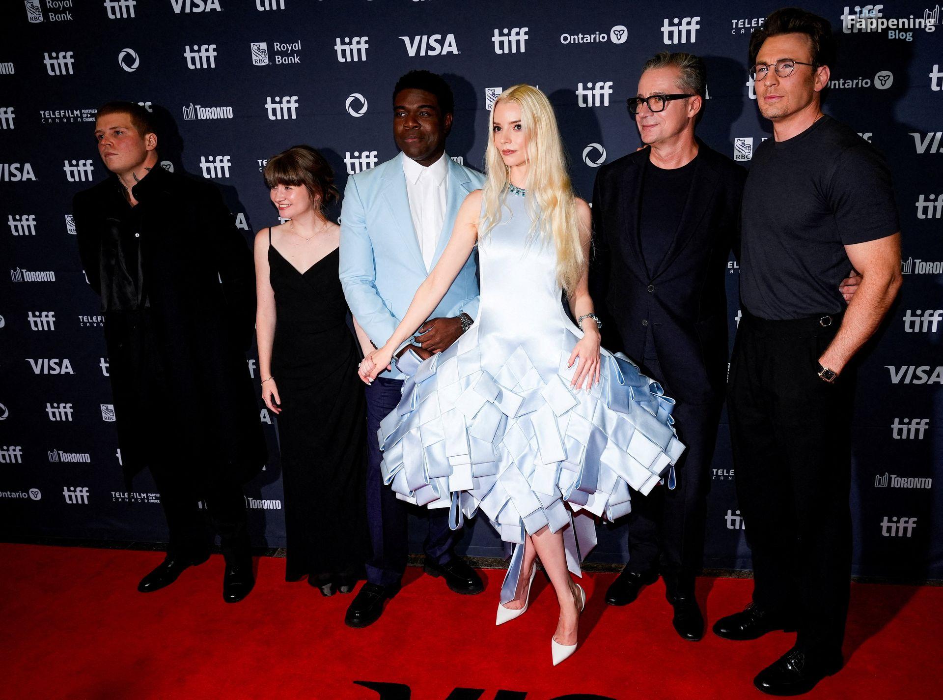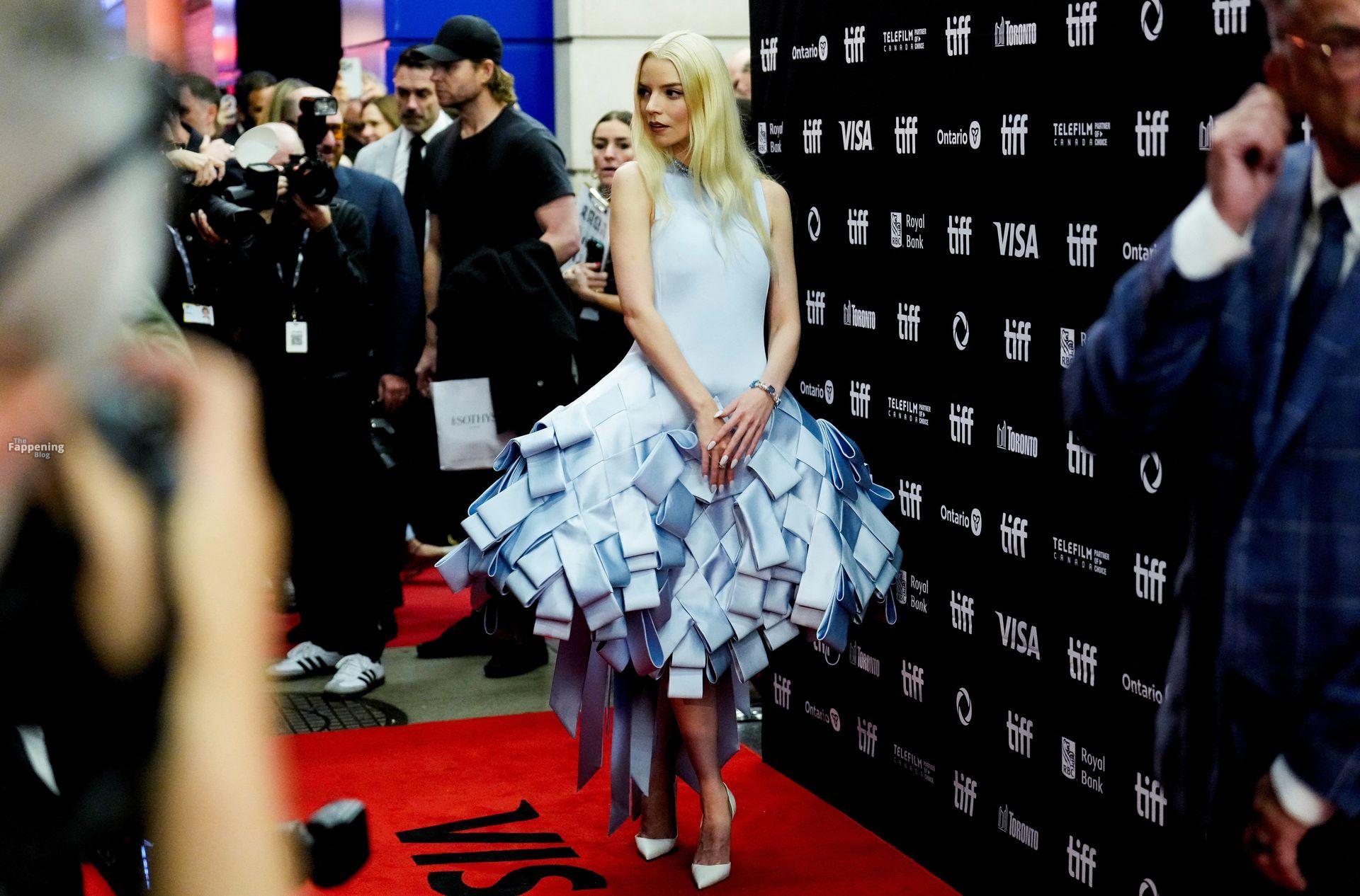 Член актерского состава Аня Тейлор-Джой позировала в элегантном синем атласном платье на красной дорожке фильма «Жертва» на 50-м Международном кинофестивале в Торонто (TIFF) в Торонто, Онтарио.