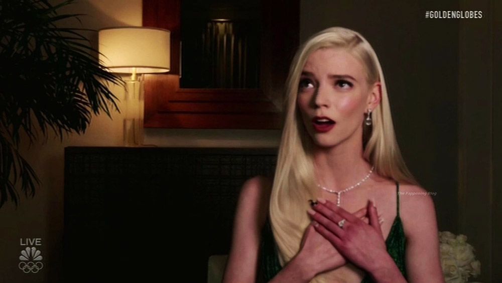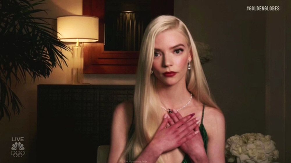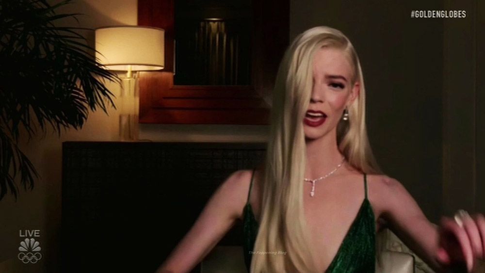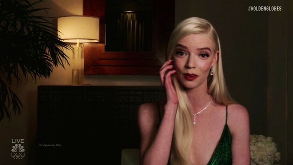 She earned the rising actress the Golden Globe for Best Actress in a Limited Series. Taylor-Joy won the Globe over fellow nominees Cate Blanchett, Daisy Edgar-Jones, Shira Haas, and Nicole Kidman. Despite facing tough competition, Taylor-Joy was widely viewed as the front runner! During her speech, Taylor-Joy especially thanked the director Scott Frank. Anya Taylor-Joy appeared in a green gown with too deep cleavage and stunning jewelry!