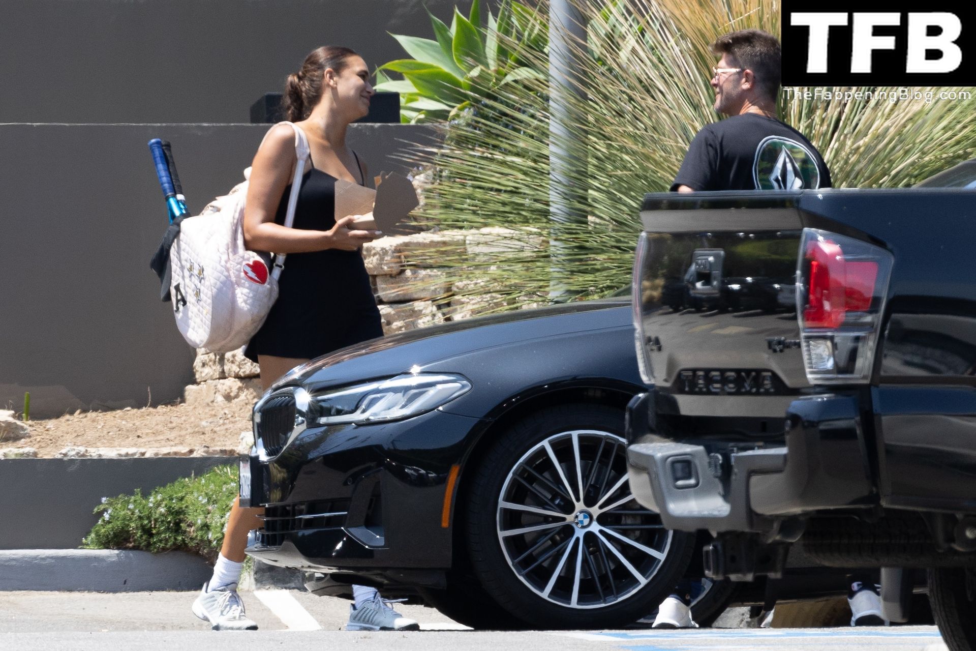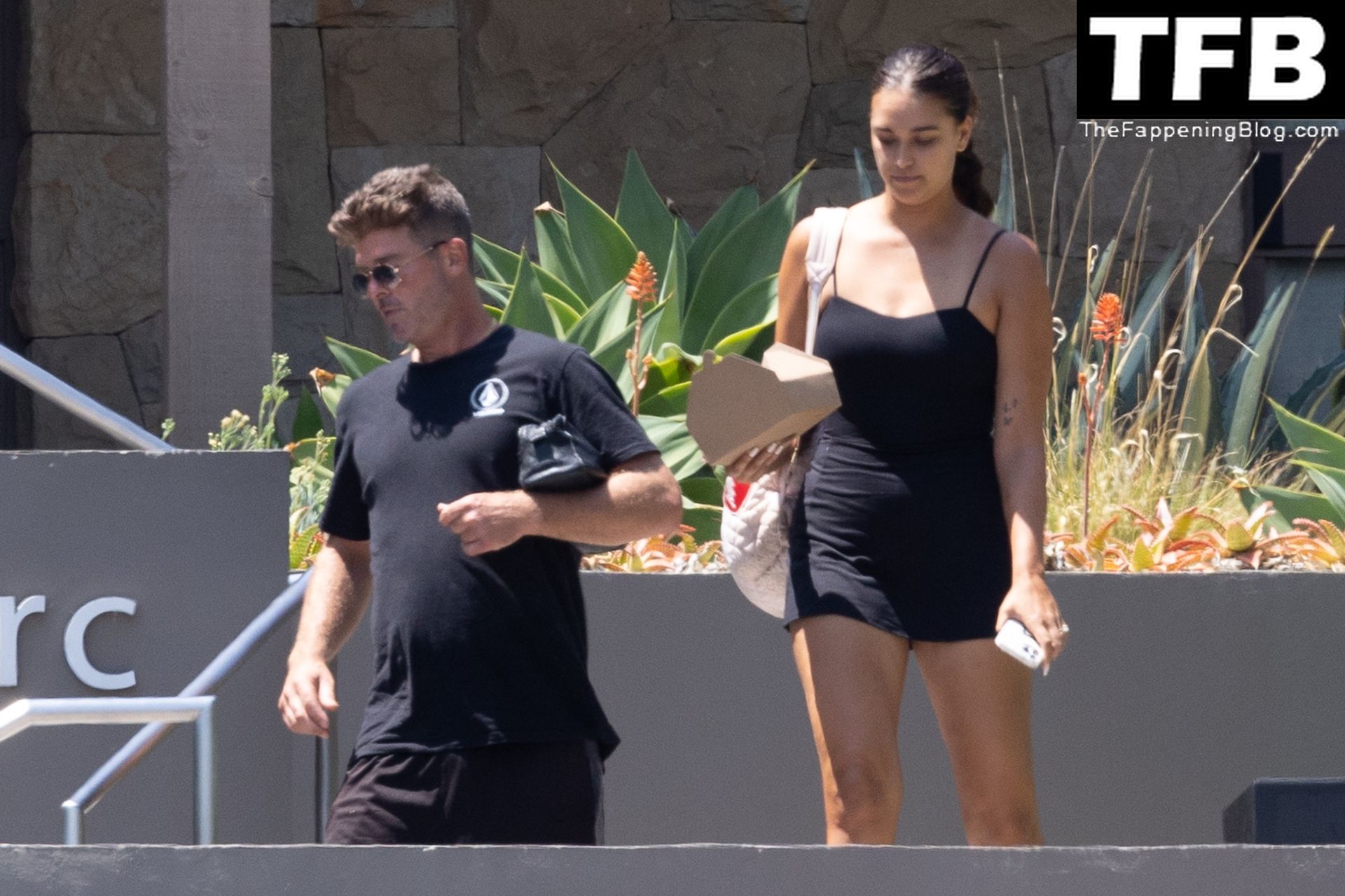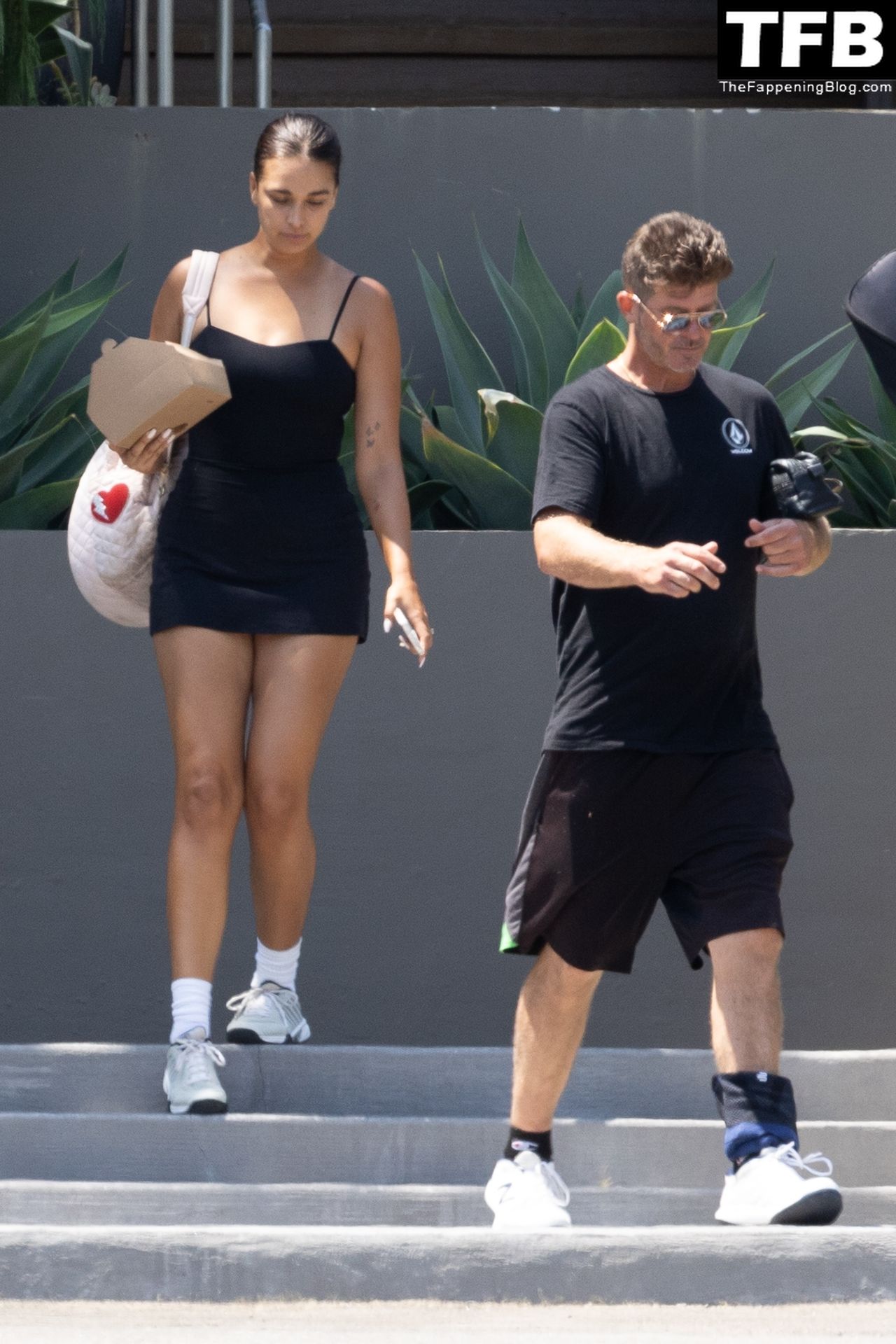 Певец Робин Тик и его невеста Эйприл Лав Гири смеются, расходясь после игры в теннис в Малибу, 03.08.2022.