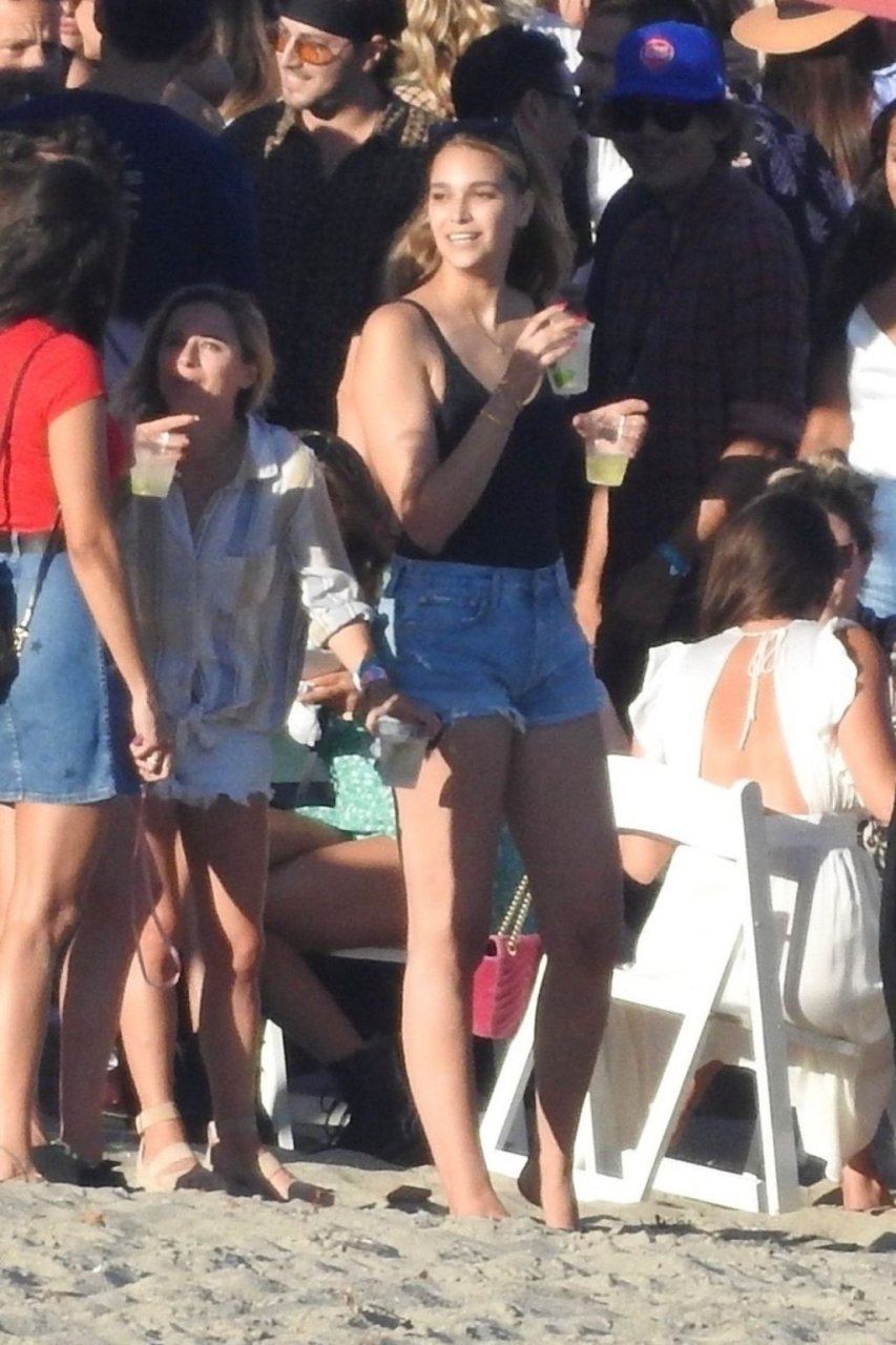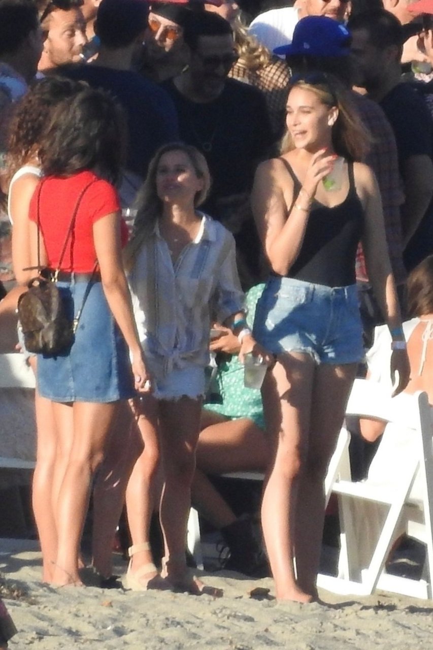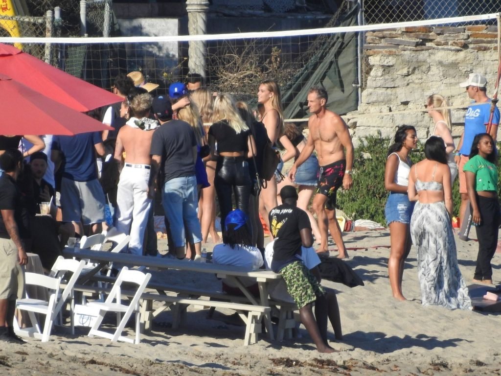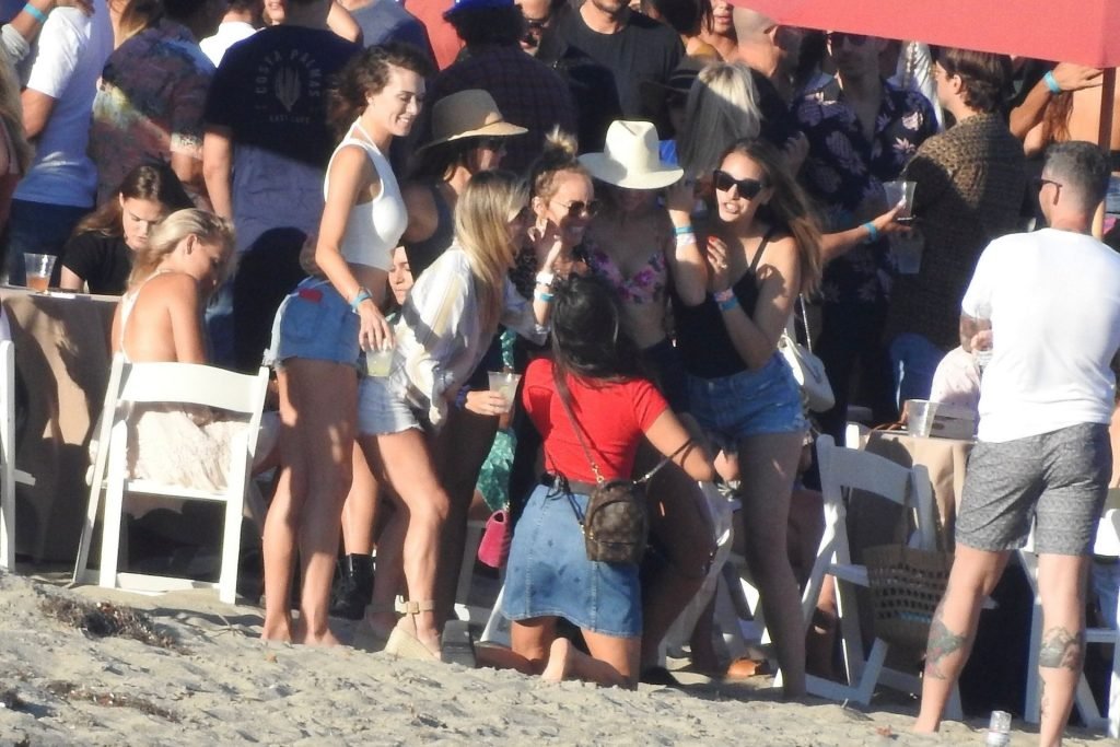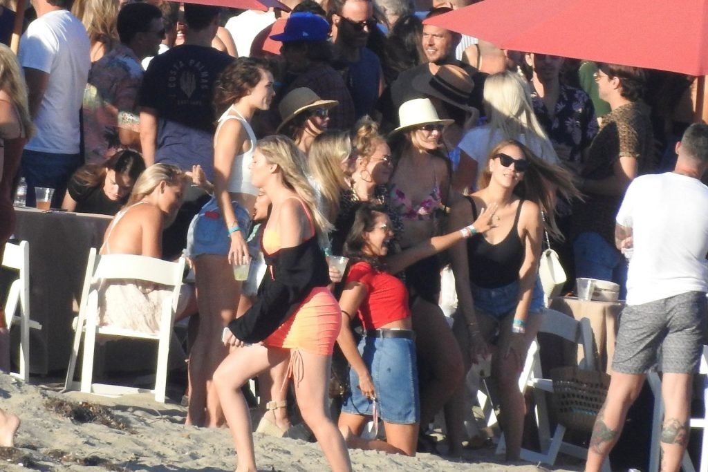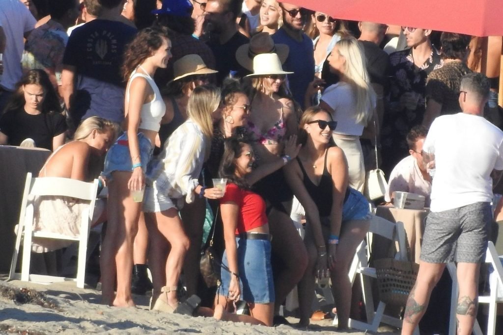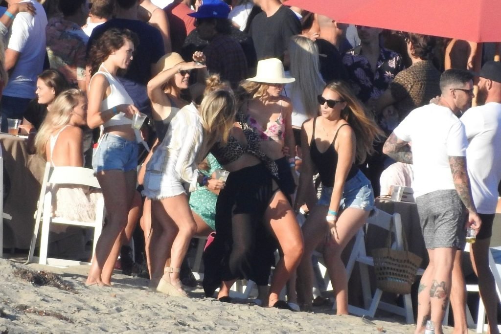 Апрель Лав Гири посещает пляжную вечеринку в Малибу, где также присутствуют Джейми Фокс и Шон Пенн, 25.08.2019. Модель приехала с подругами и была замечена за наслаждением холодным напитком на пляже.
