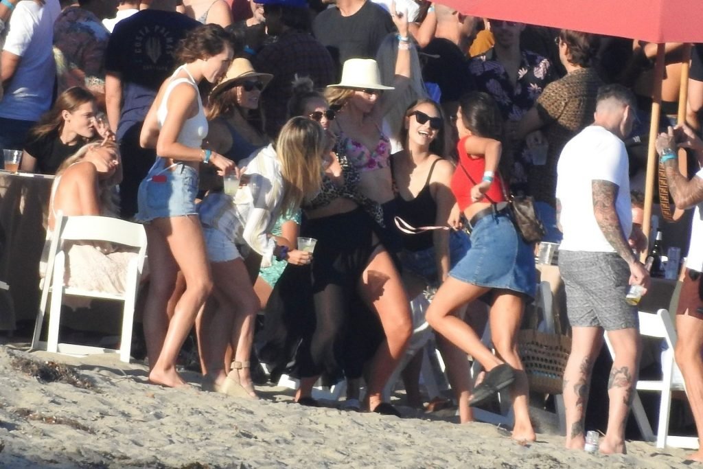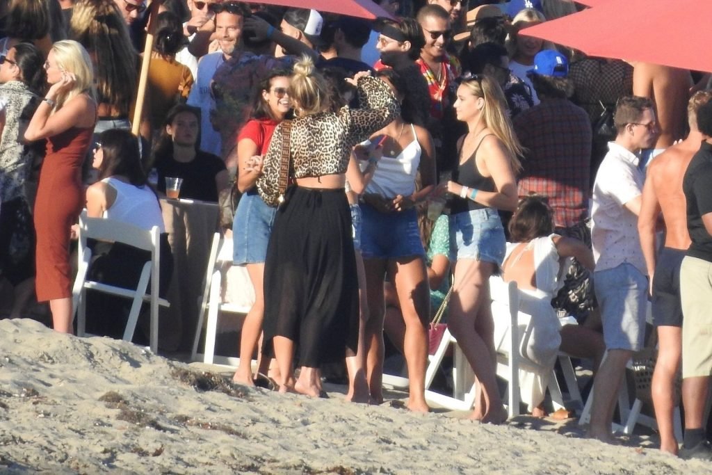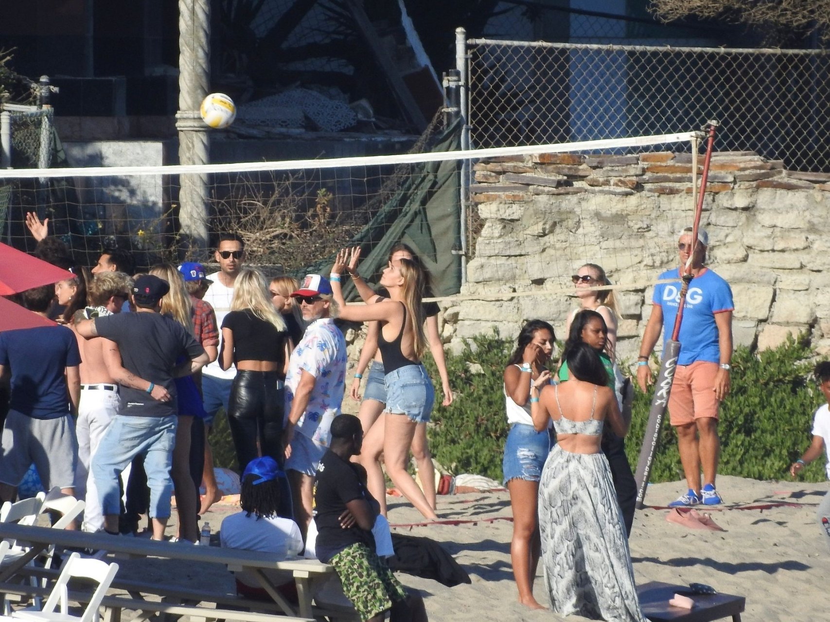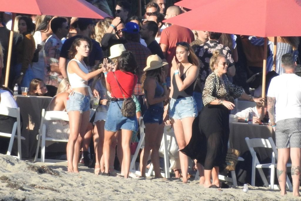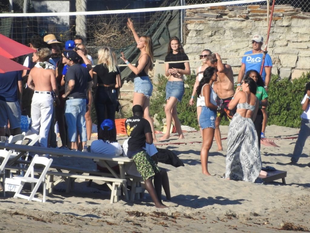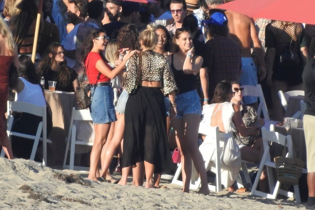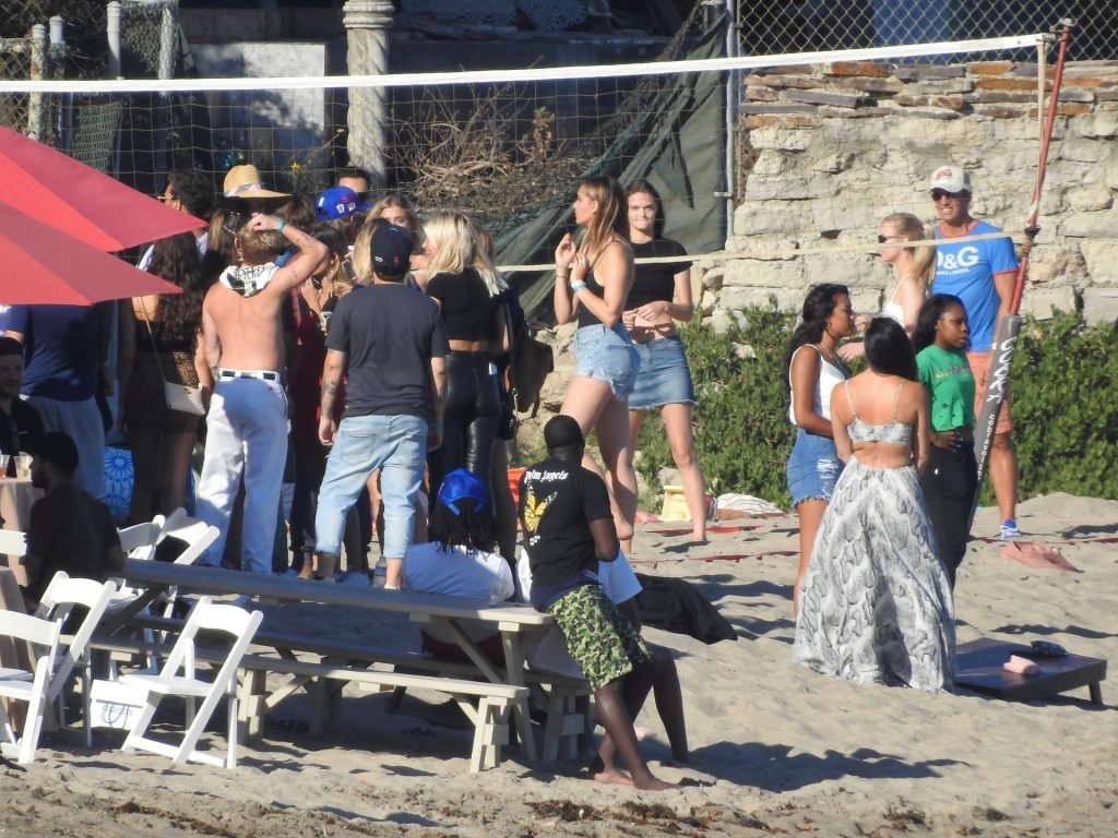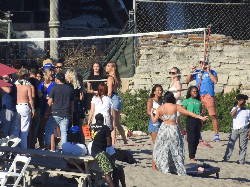 Апрель Лав Гири посещает пляжную вечеринку в Малибу, где также присутствуют Джейми Фокс и Шон Пенн, 25.08.2019. Модель приехала с подругами и была замечена за наслаждением холодным напитком на пляже.