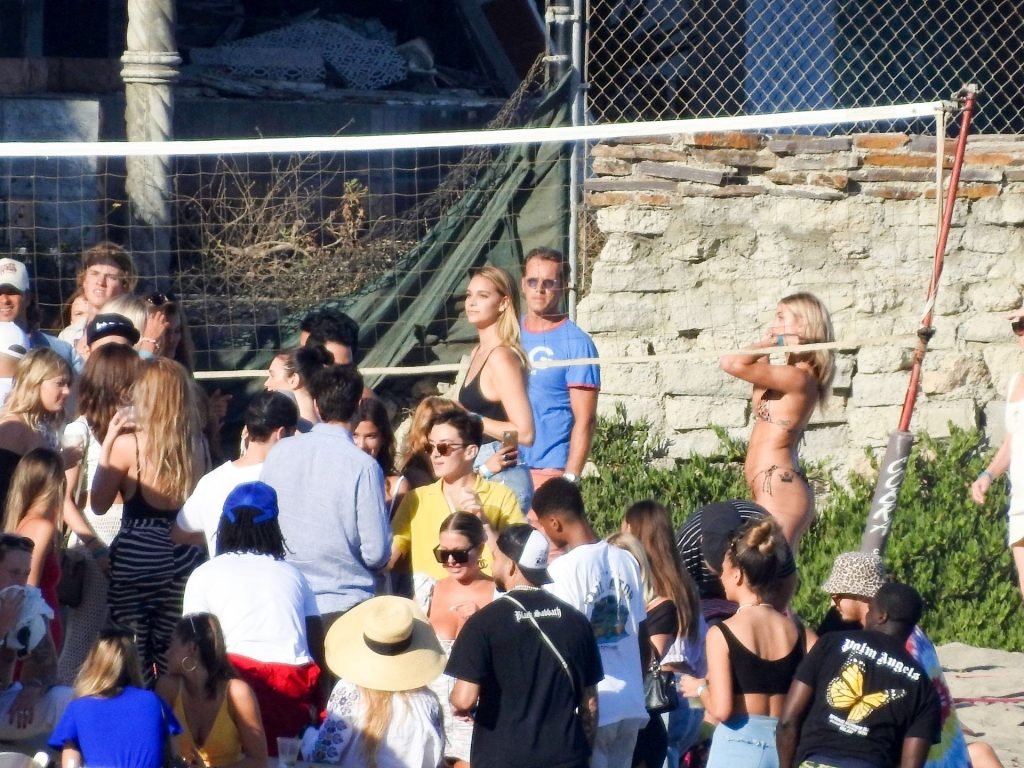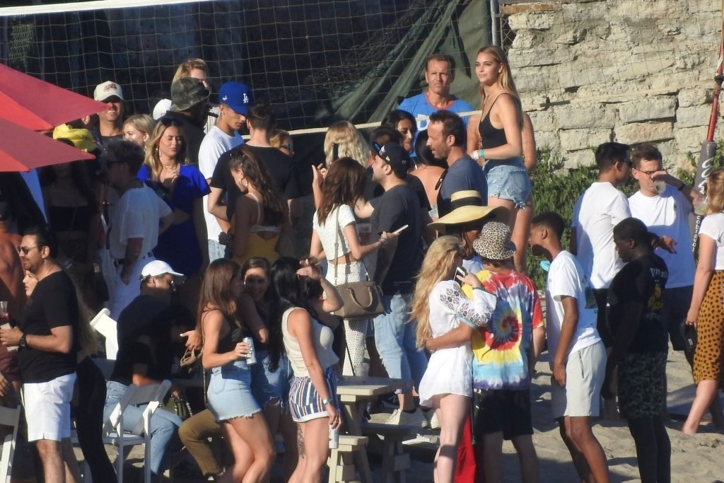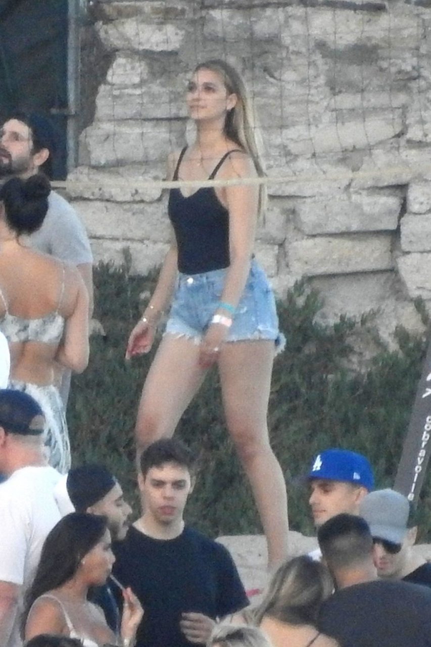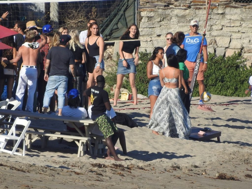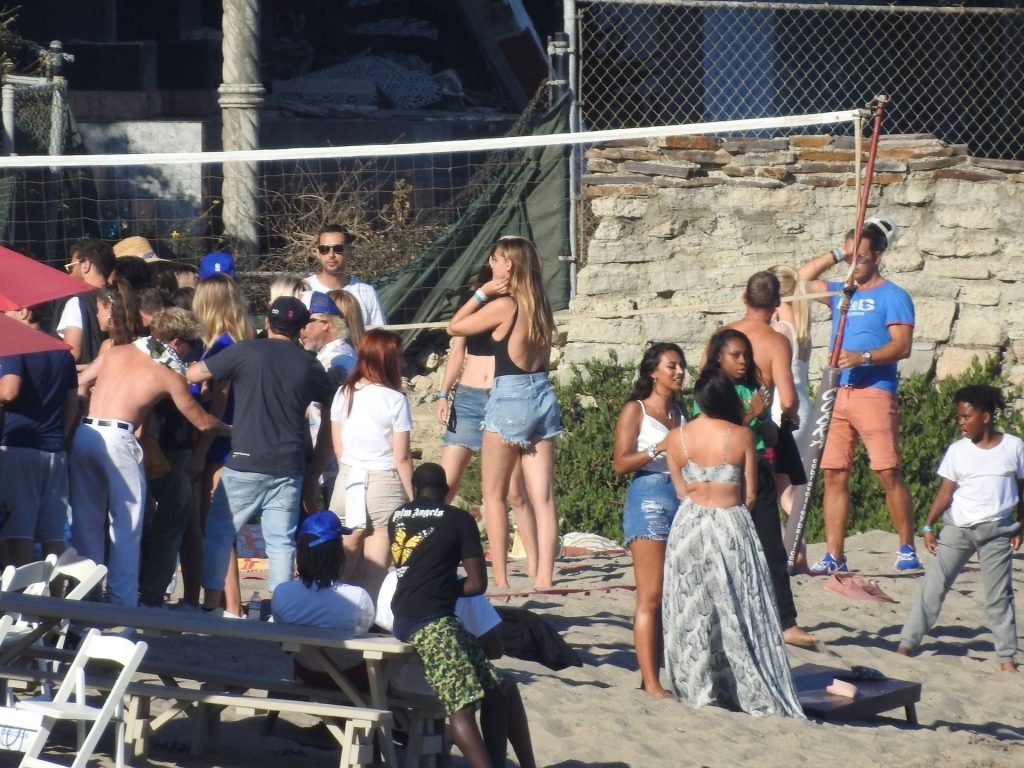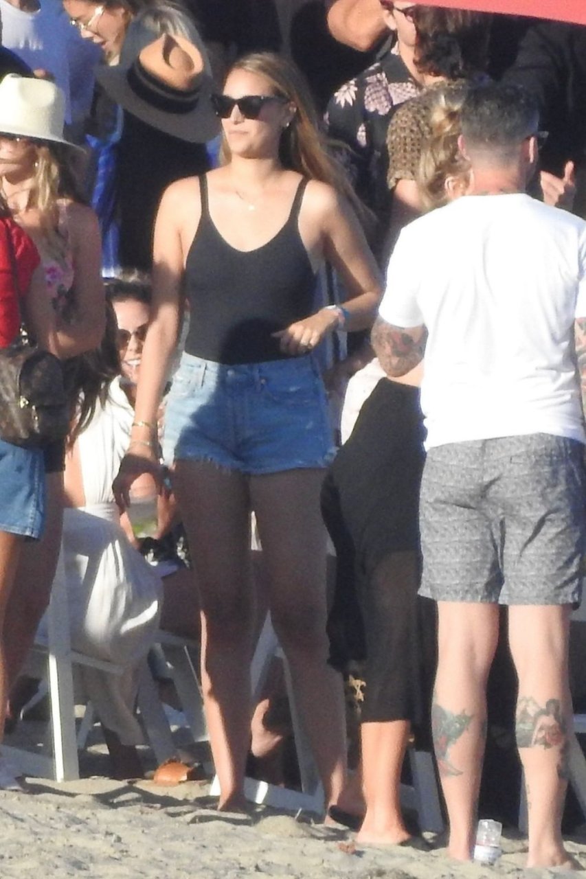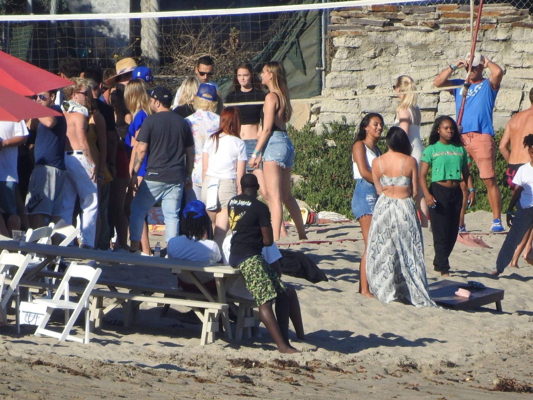 Апрель Лав Гири посещает пляжную вечеринку в Малибу, где также присутствуют Джейми Фокс и Шон Пенн, 25.08.2019. Модель приехала с подругами и была замечена за наслаждением холодным напитком на пляже.