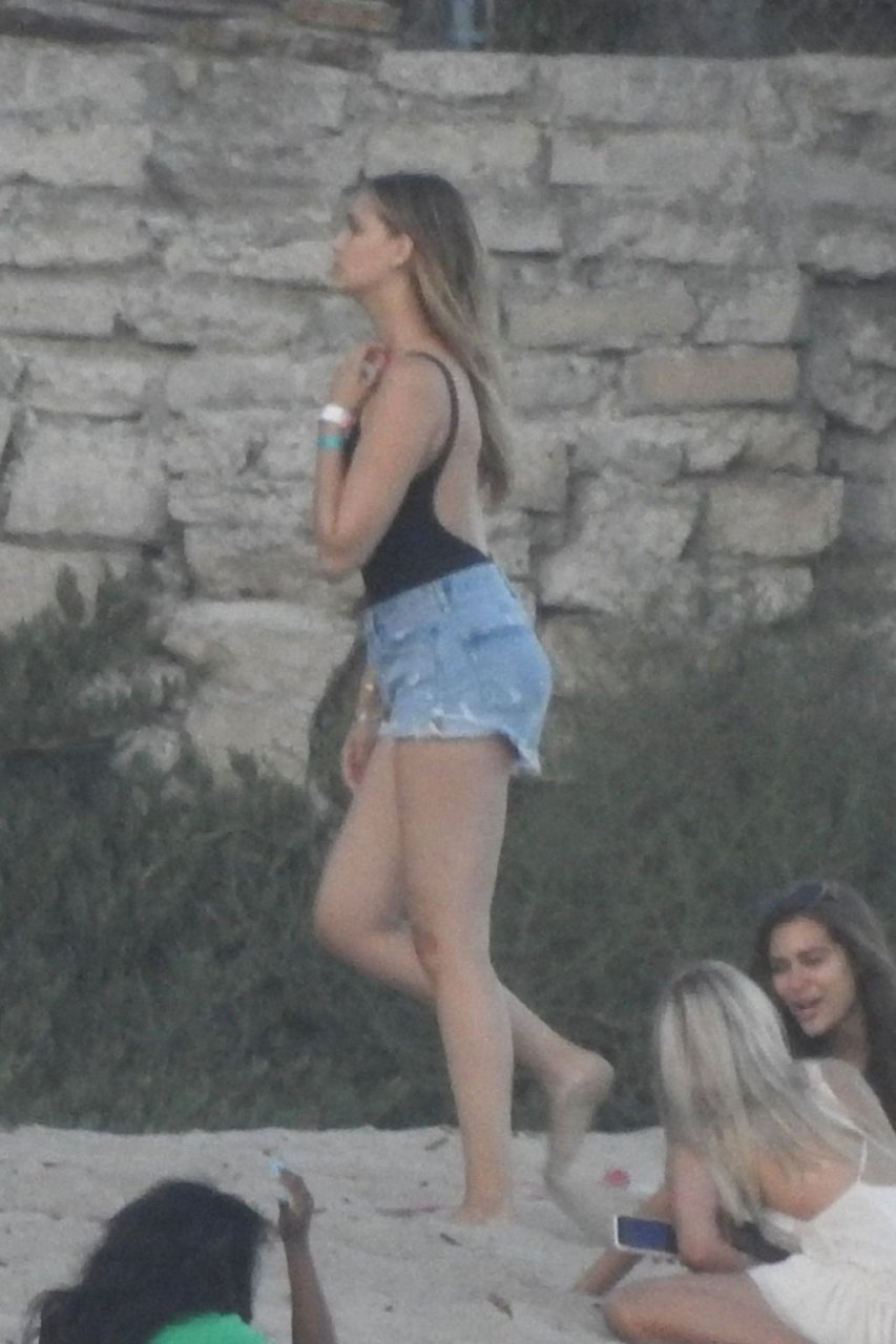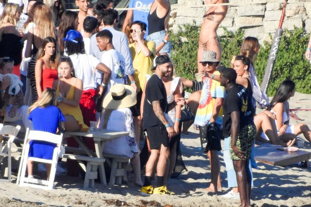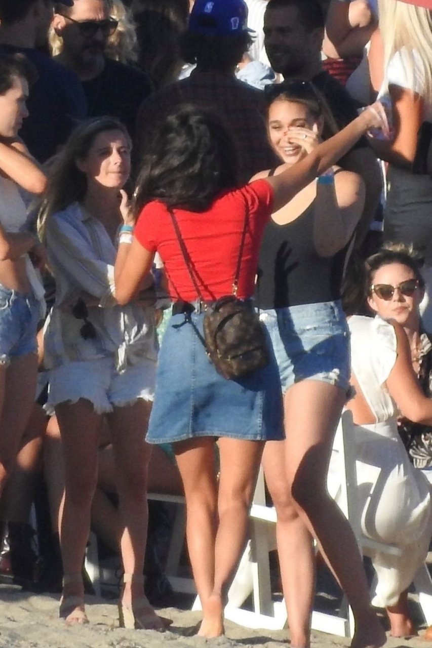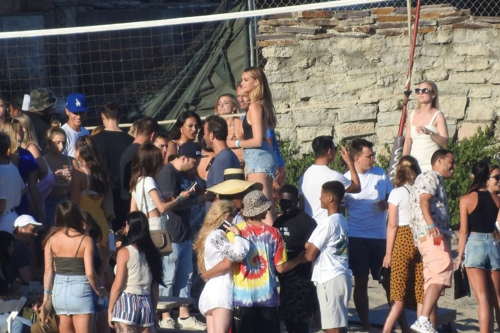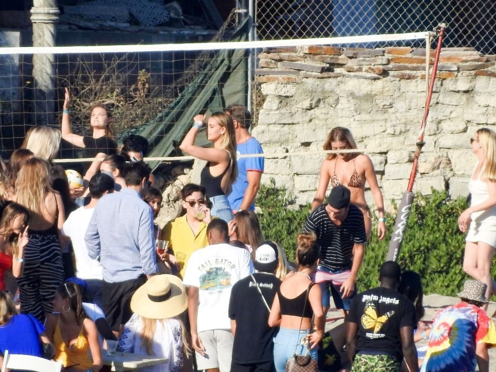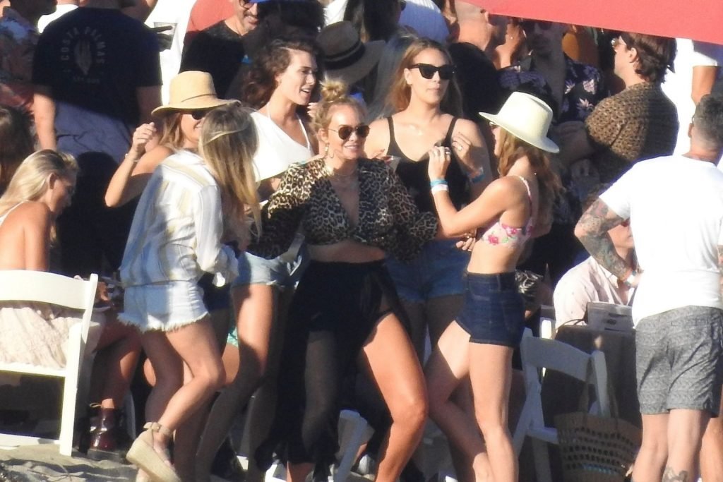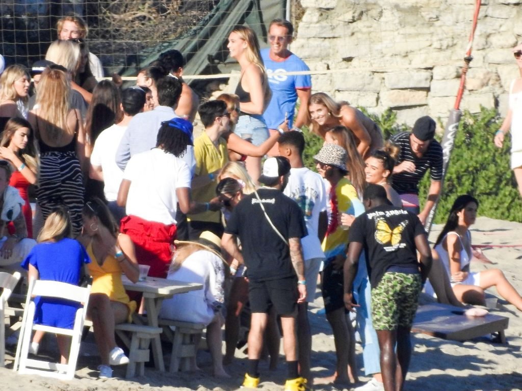 Апрель Лав Гири посещает пляжную вечеринку в Малибу, где также присутствуют Джейми Фокс и Шон Пенн, 25.08.2019. Модель приехала с подругами и была замечена за наслаждением холодным напитком на пляже.