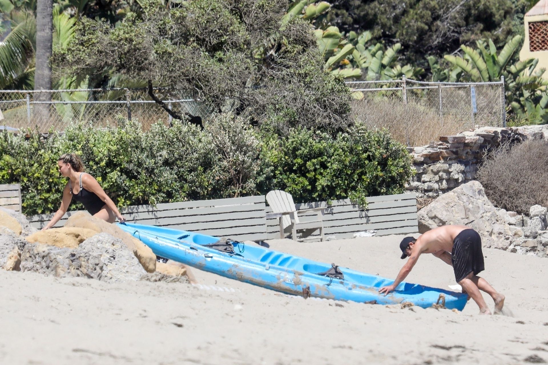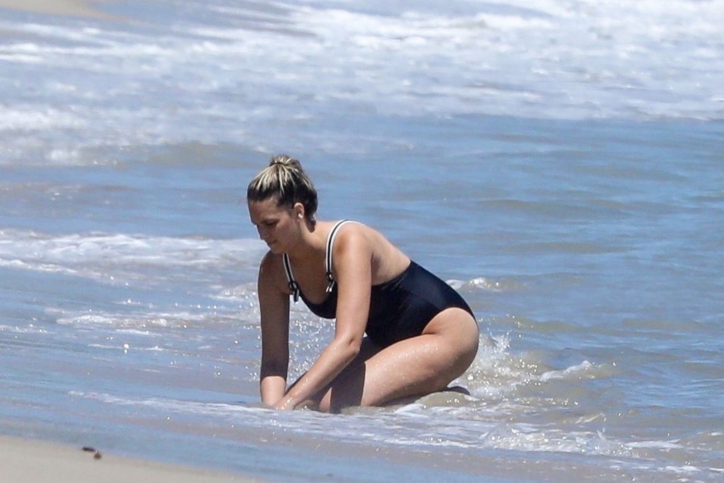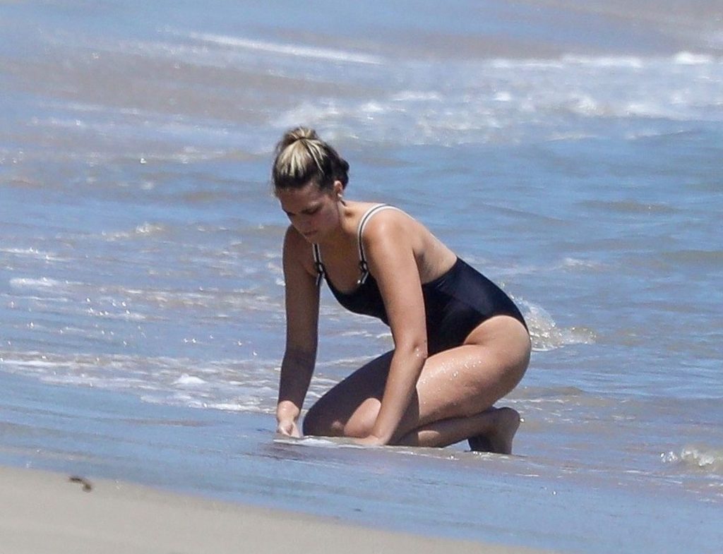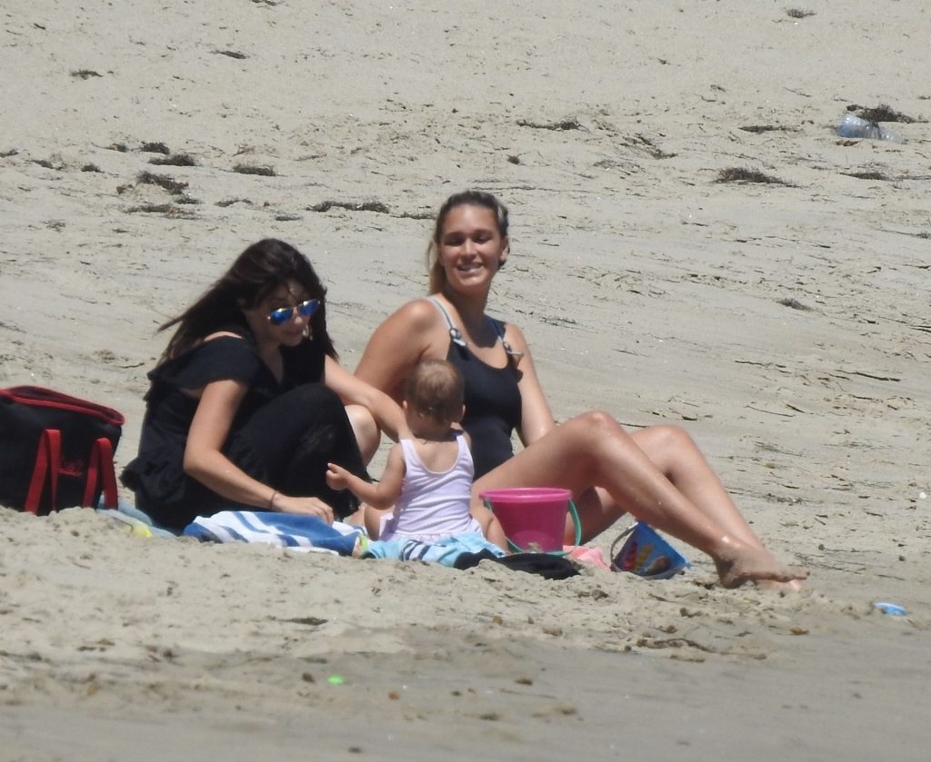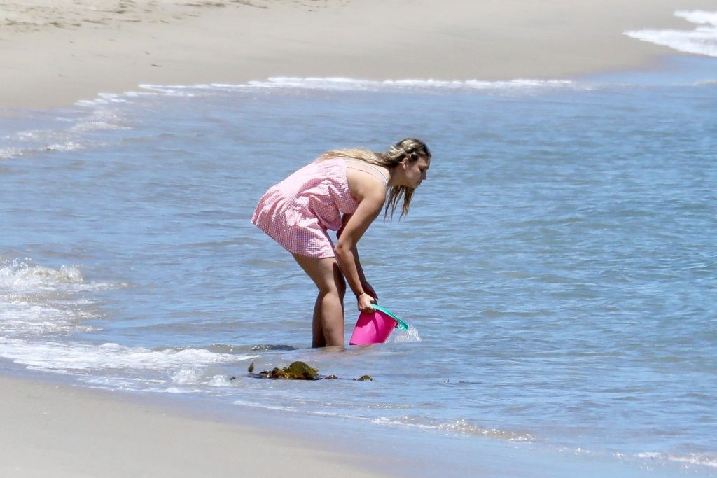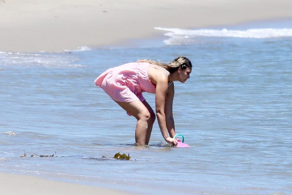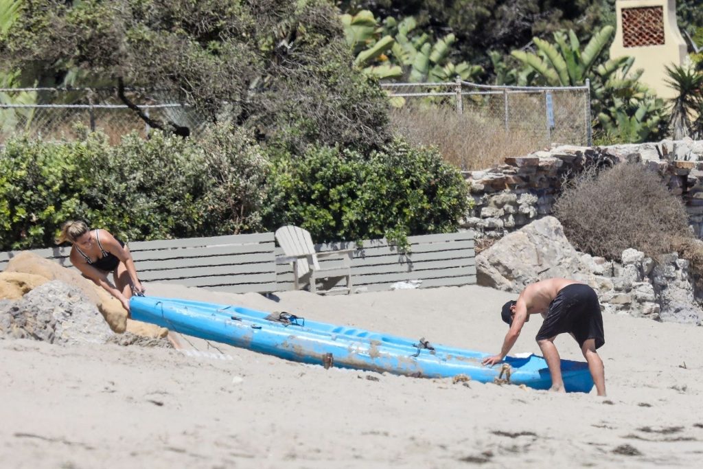 Эйприл ищет крабов вместе с дочерью, пока мальчики играют в воде и на каяке. Эйприл, которая родила дочь Лолу Ален Тик в феврале 2019 года и Мию Лав в феврале 2018 года, демонстрирует свои изгибы в простом черном цельном купальнике.