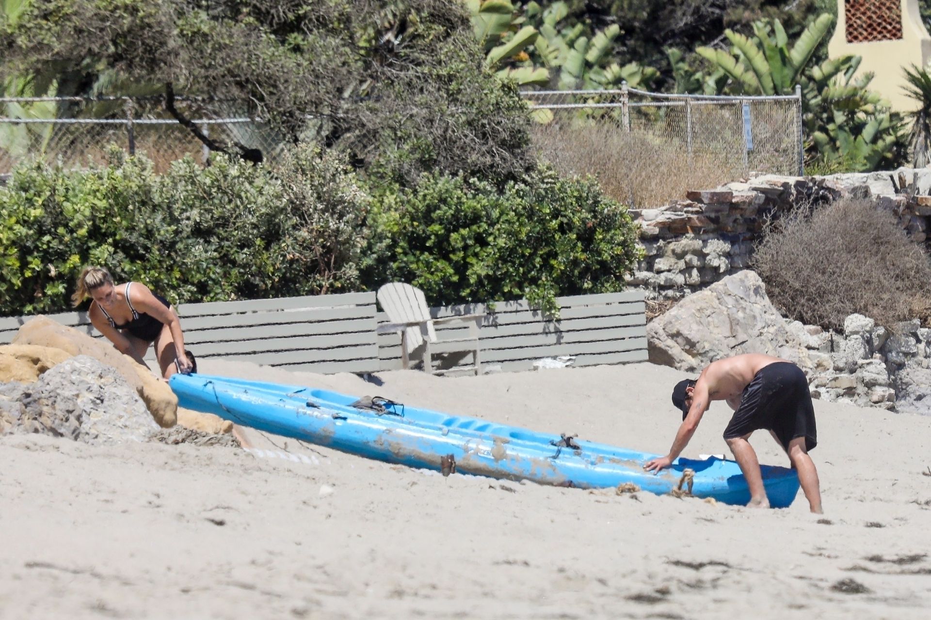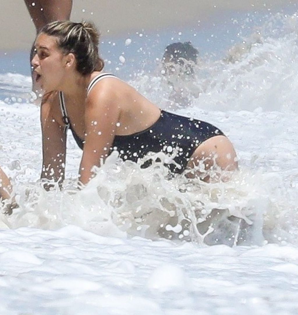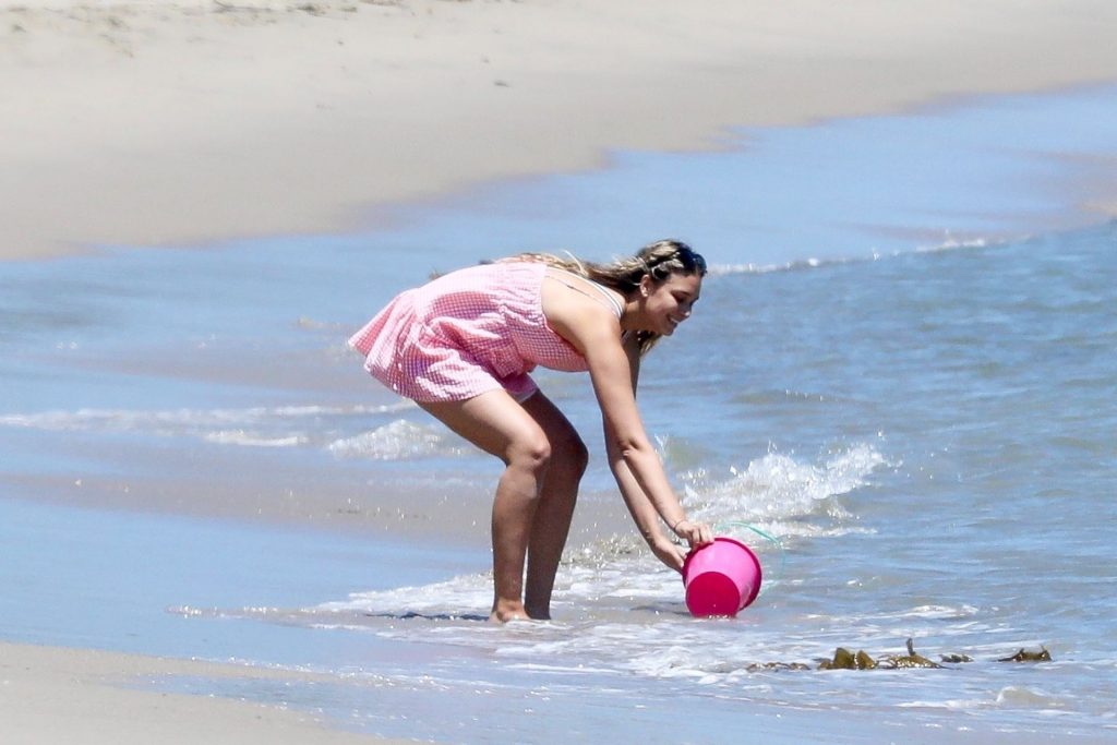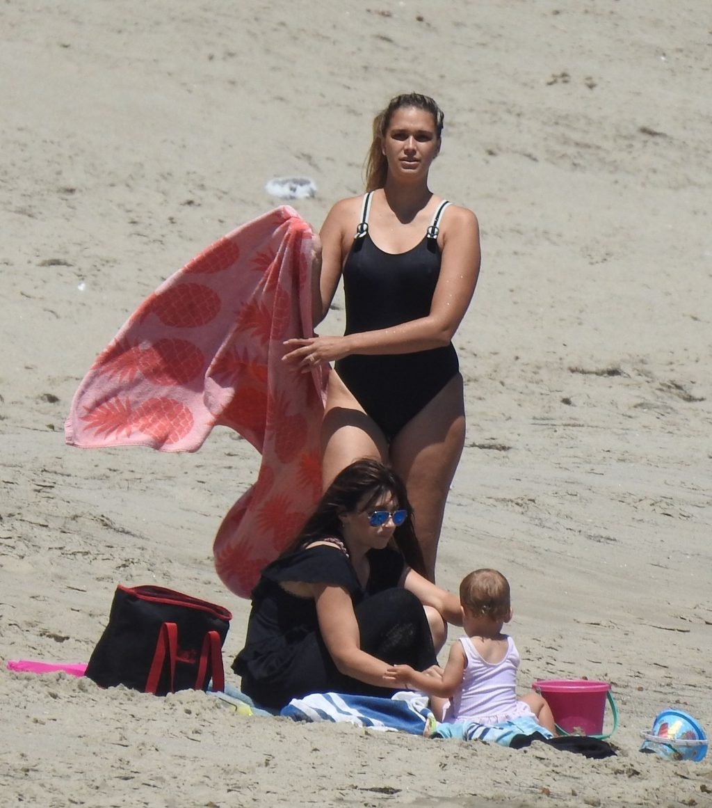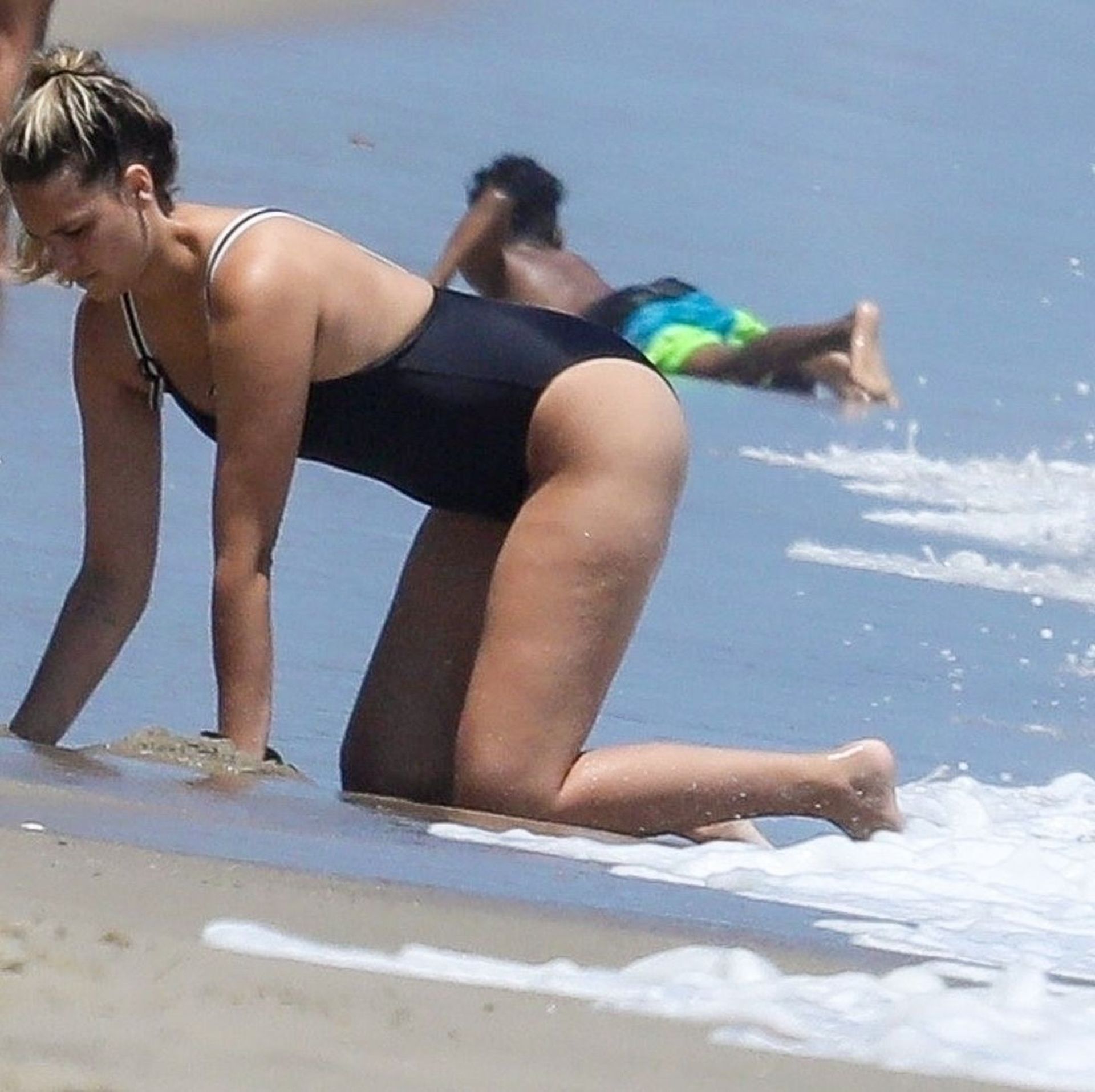 Эйприл ищет крабов вместе с дочерью, пока мальчики играют в воде и на каяке. Эйприл, которая родила дочь Лолу Ален Тик в феврале 2019 года и Мию Лав в феврале 2018 года, демонстрирует свои изгибы в простом черном цельном купальнике.