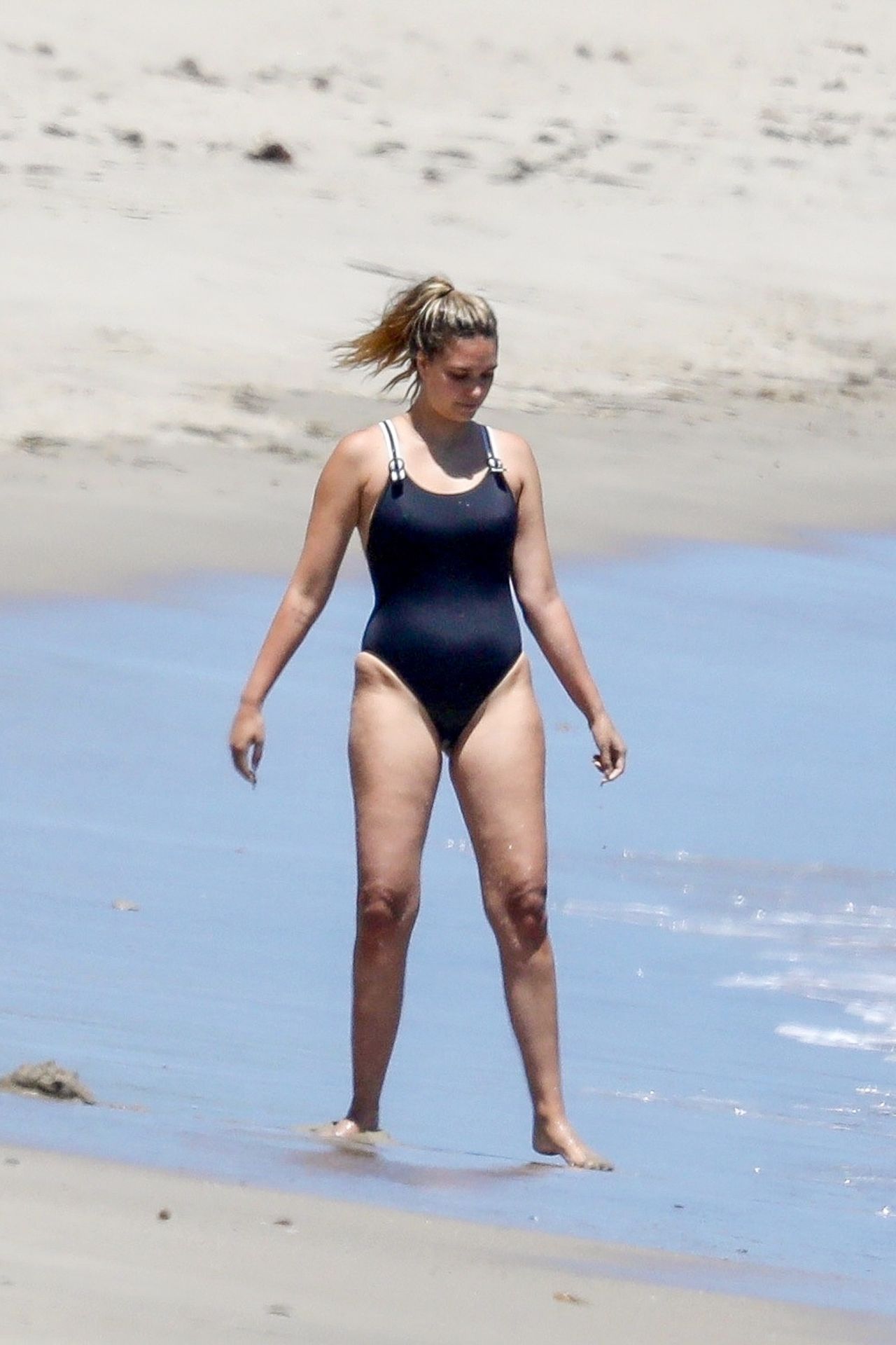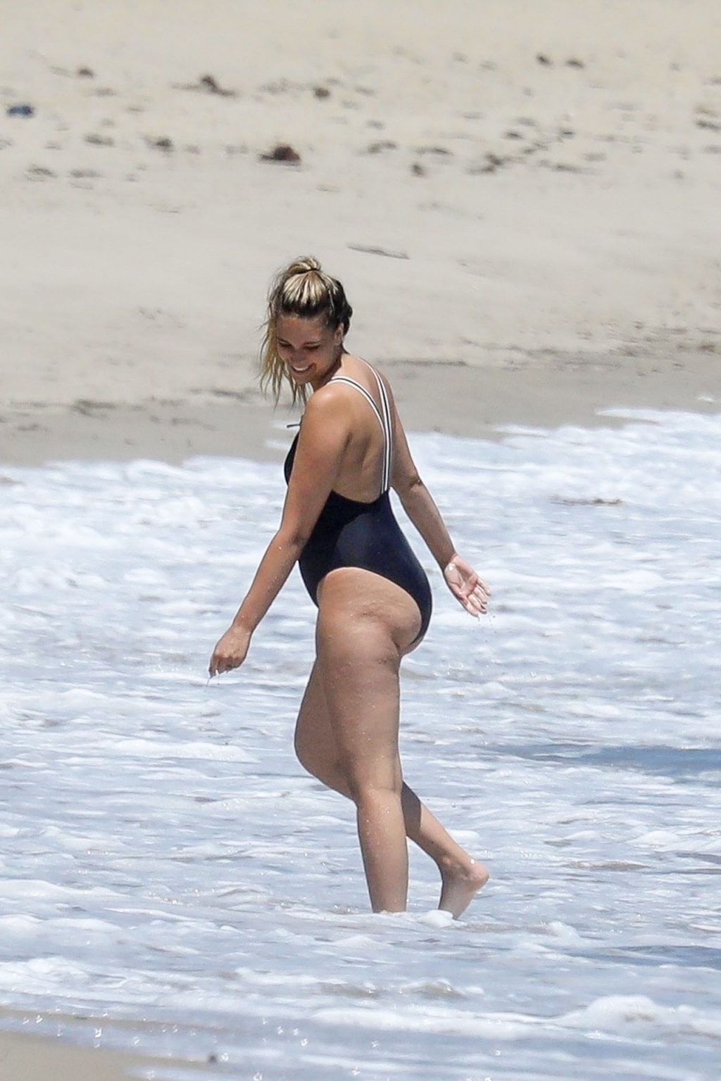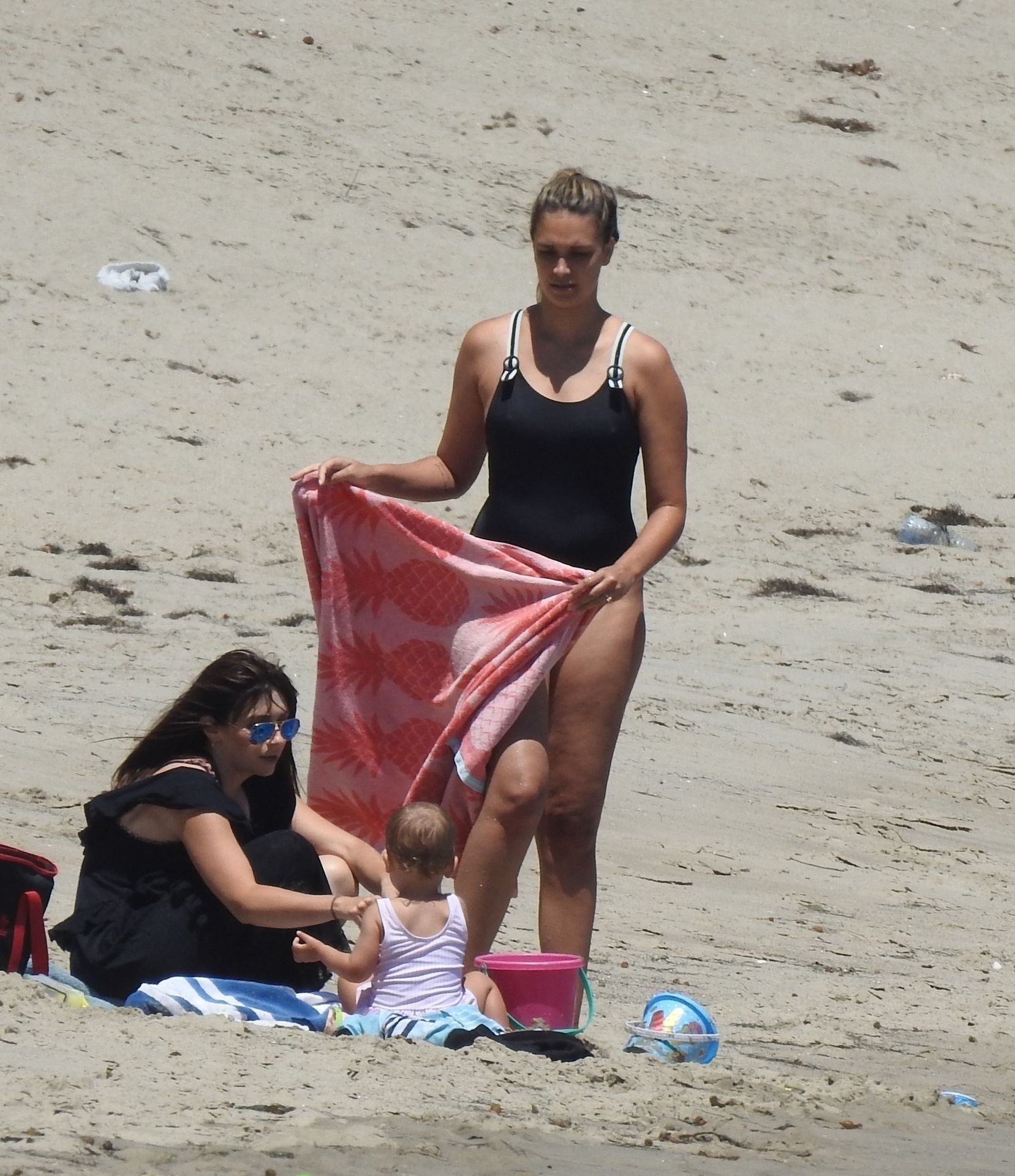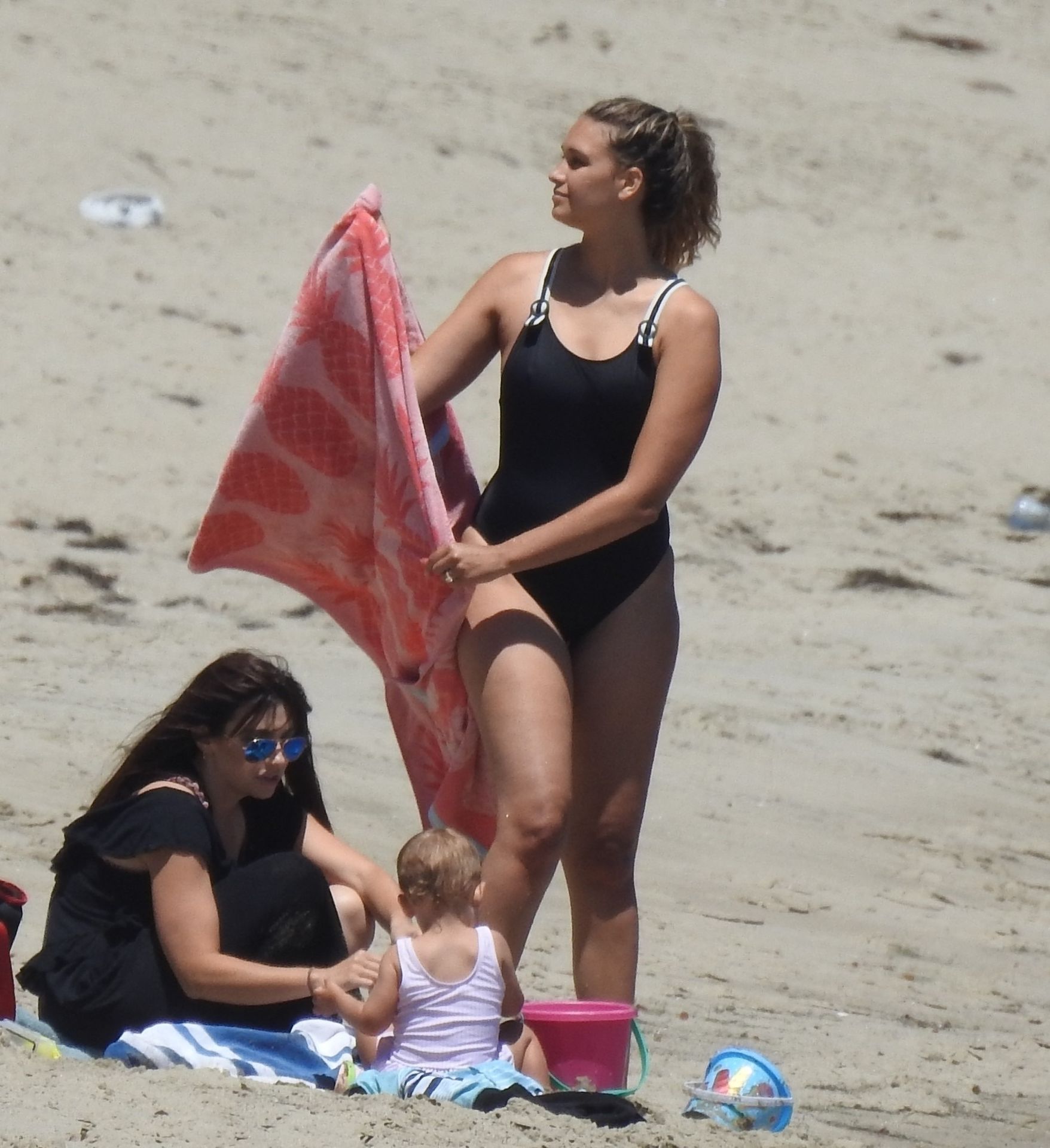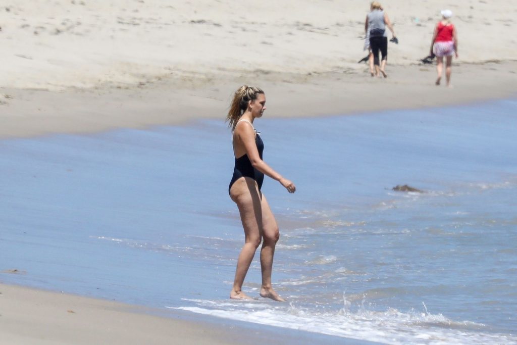 Эйприл ищет крабов вместе с дочерью, пока мальчики играют в воде и на каяке. Эйприл, которая родила дочь Лолу Ален Тик в феврале 2019 года и Мию Лав в феврале 2018 года, демонстрирует свои изгибы в простом черном цельном купальнике.