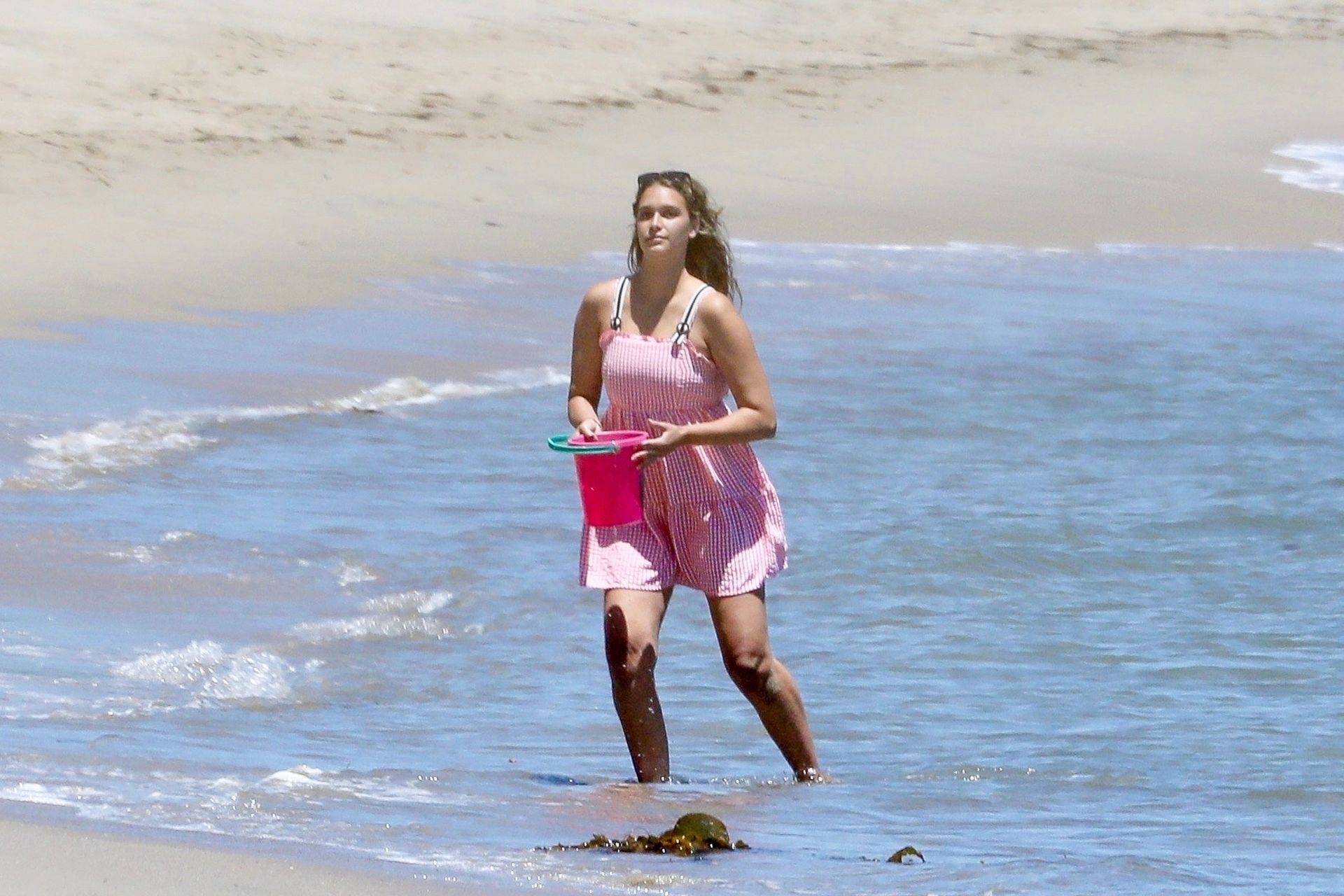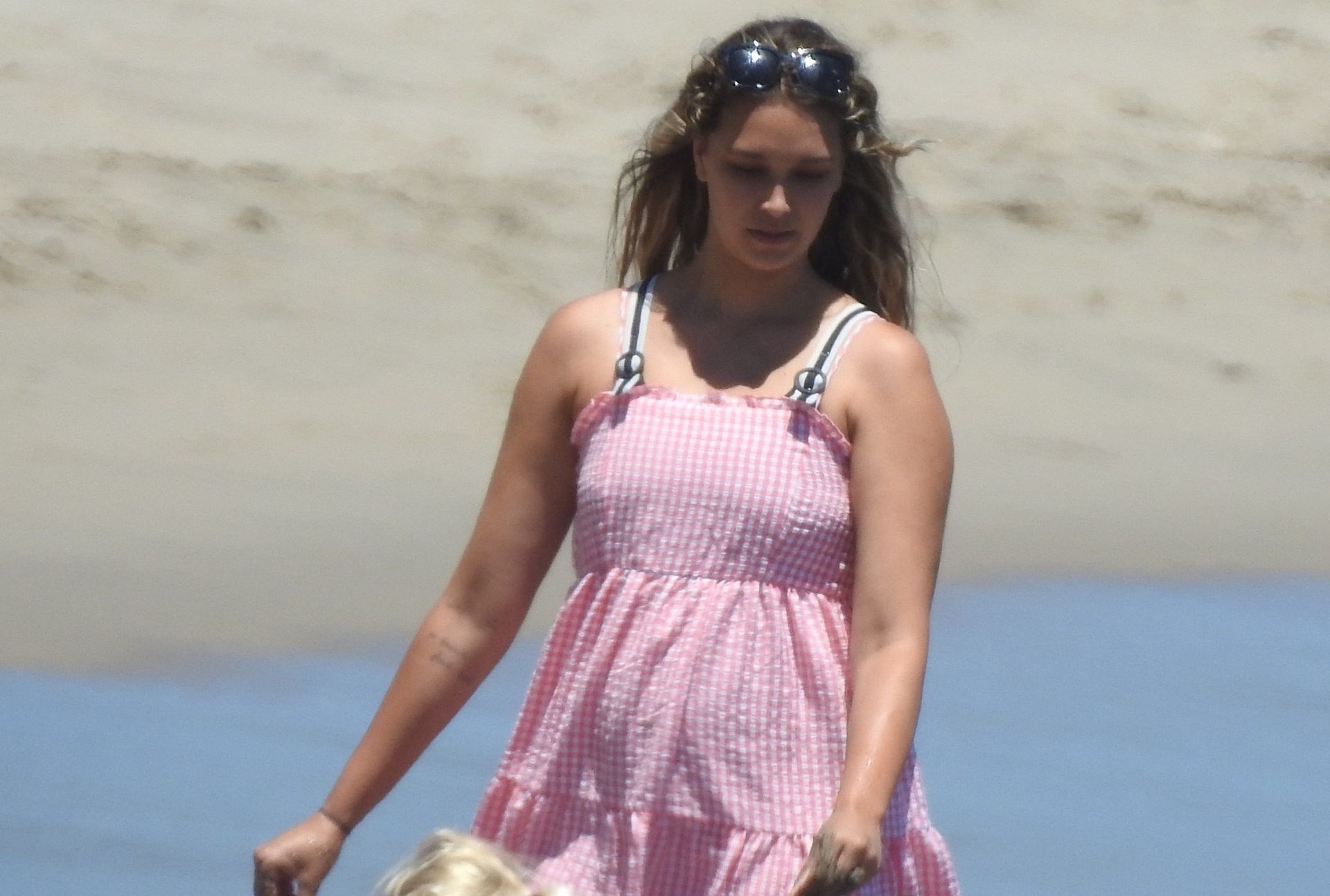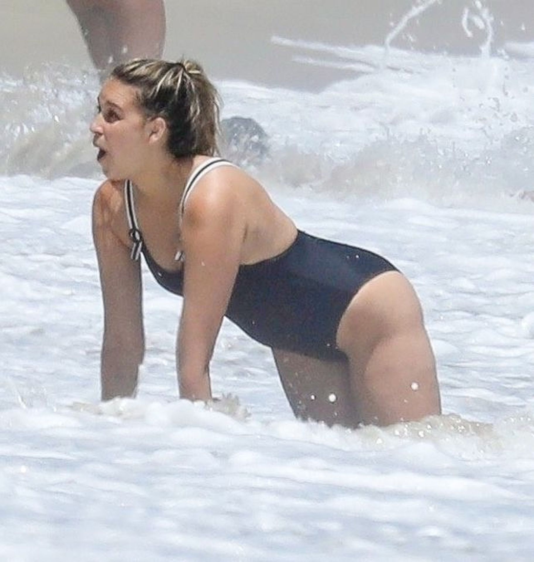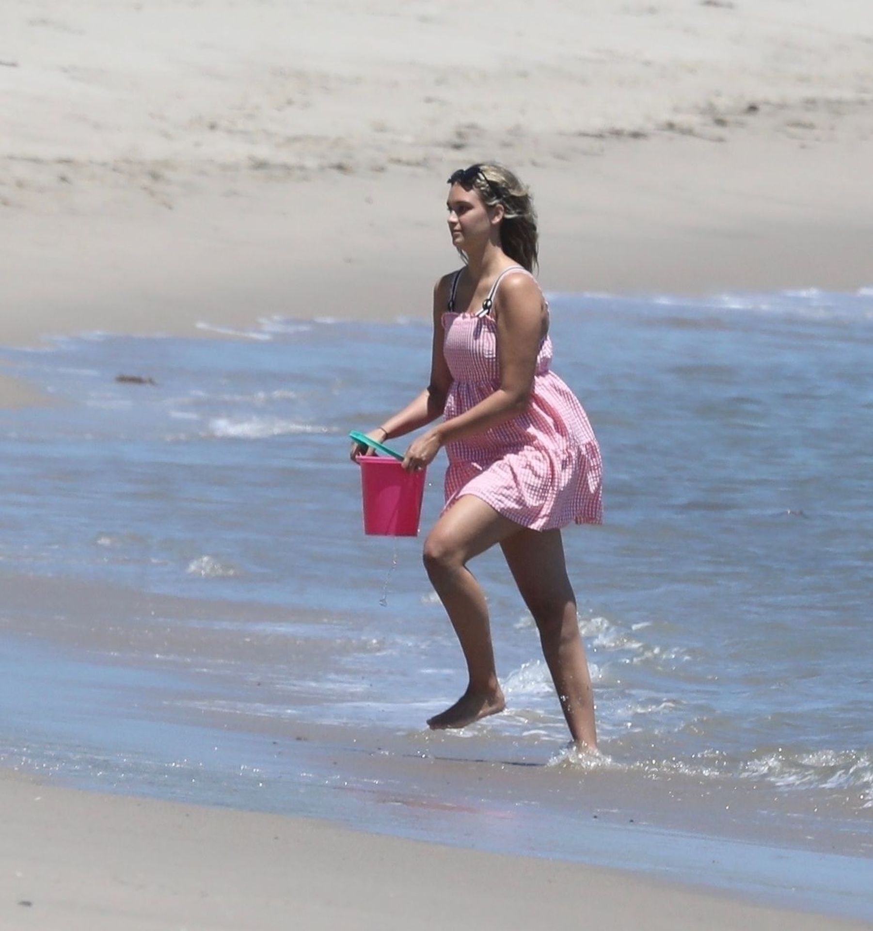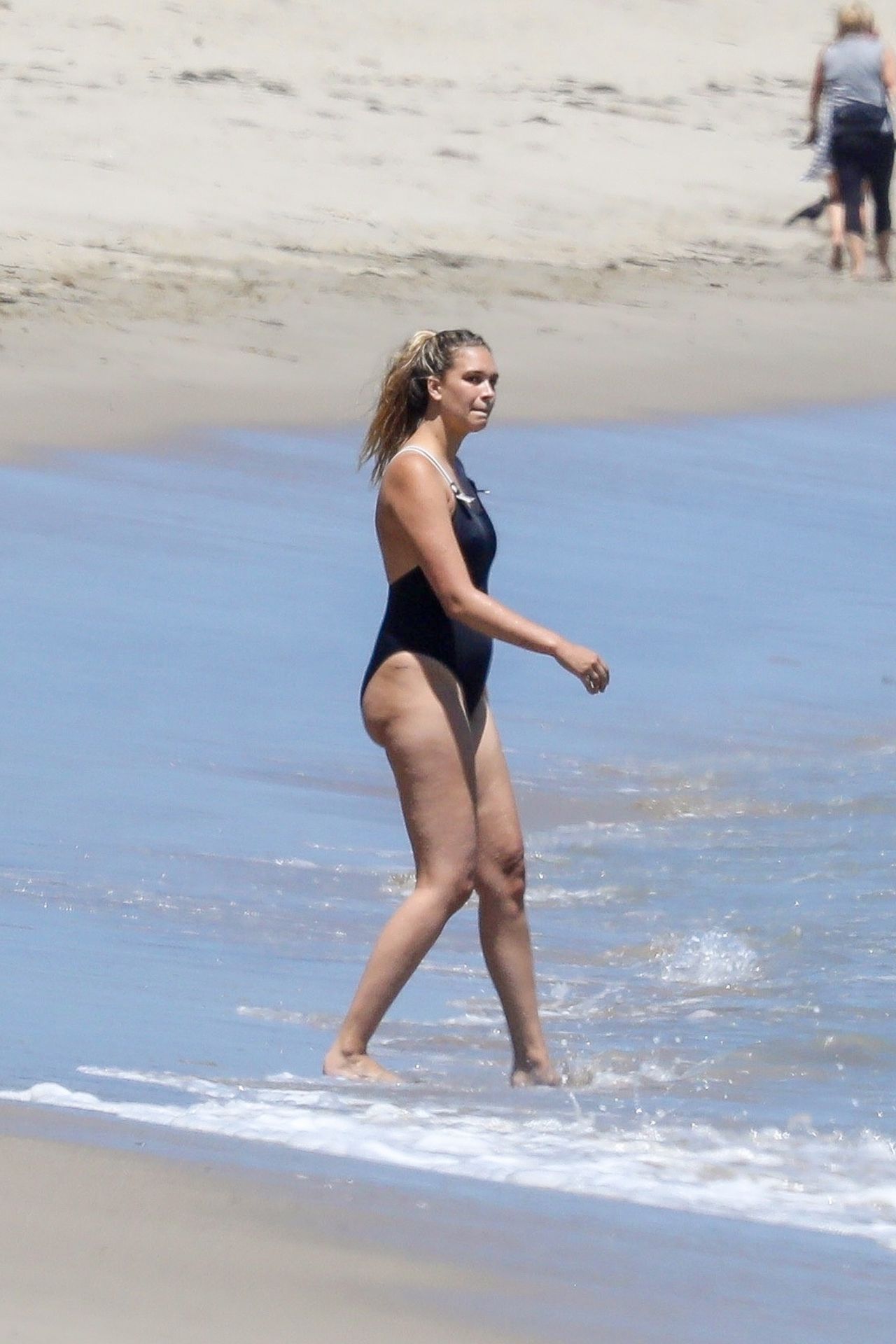 Эйприл ищет крабов вместе с дочерью, пока мальчики играют в воде и на каяке. Эйприл, которая родила дочь Лолу Ален Тик в феврале 2019 года и Мию Лав в феврале 2018 года, демонстрирует свои изгибы в простом черном цельном купальнике.