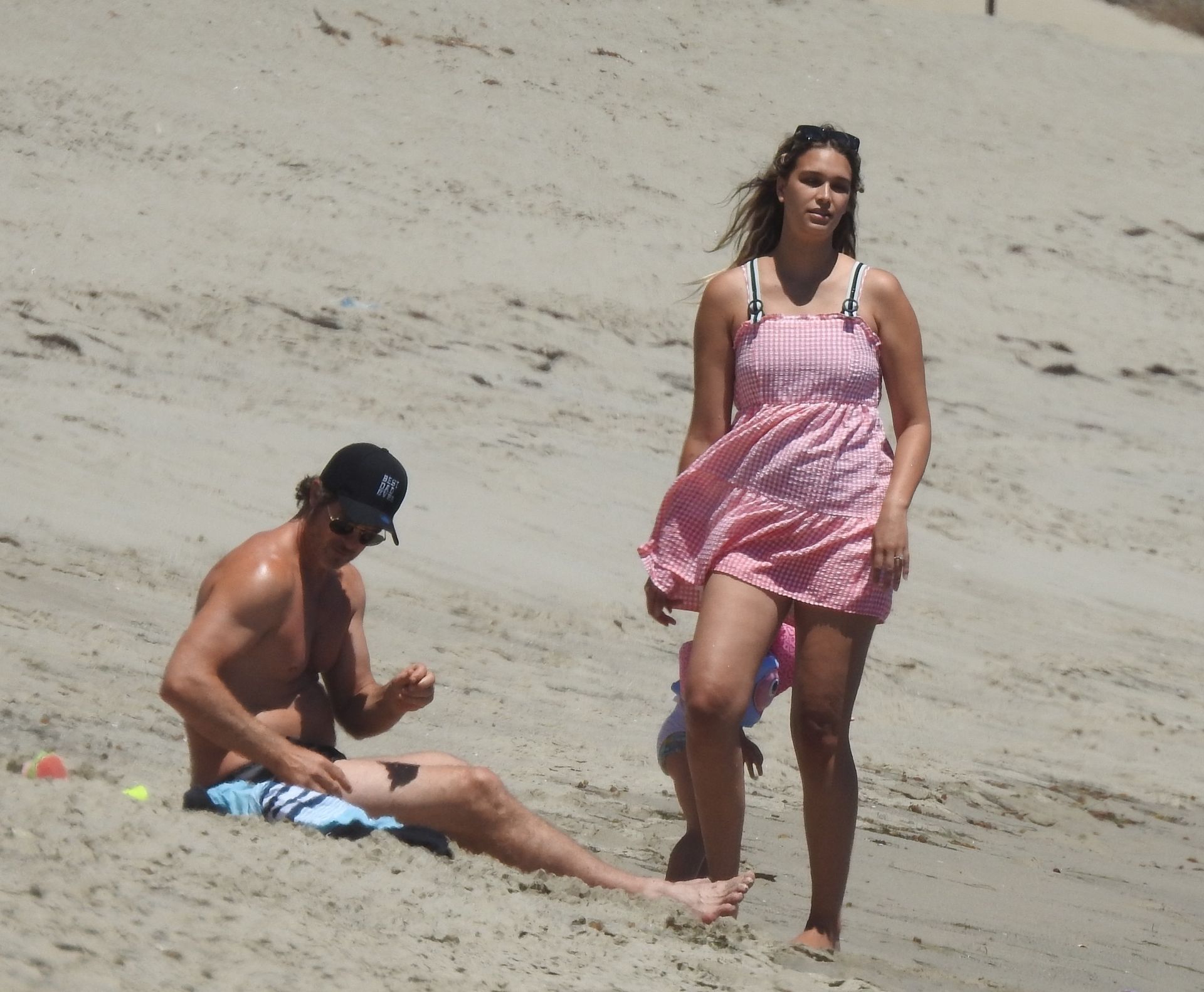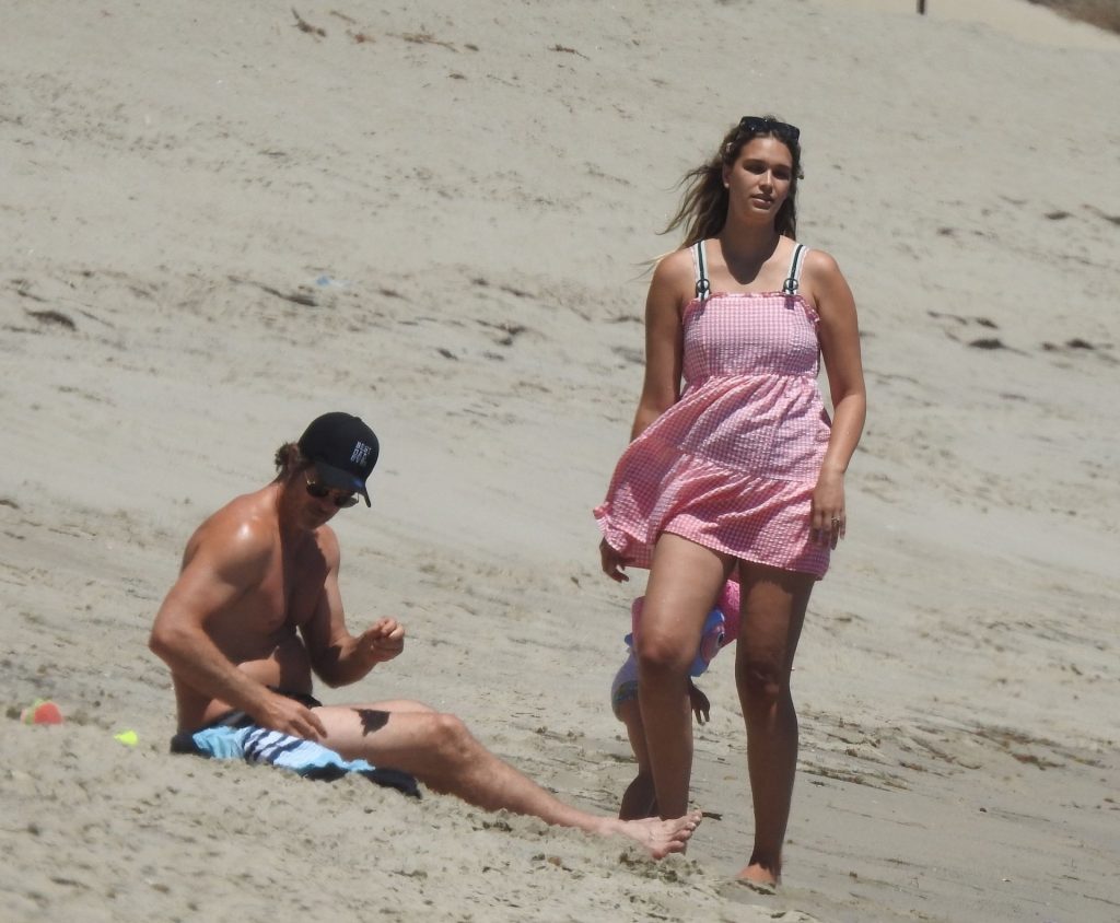 Робин Тик и его жена Эйприл Лав Гири проводят день с детьми на пляже в Малибу, 16.07.2020.