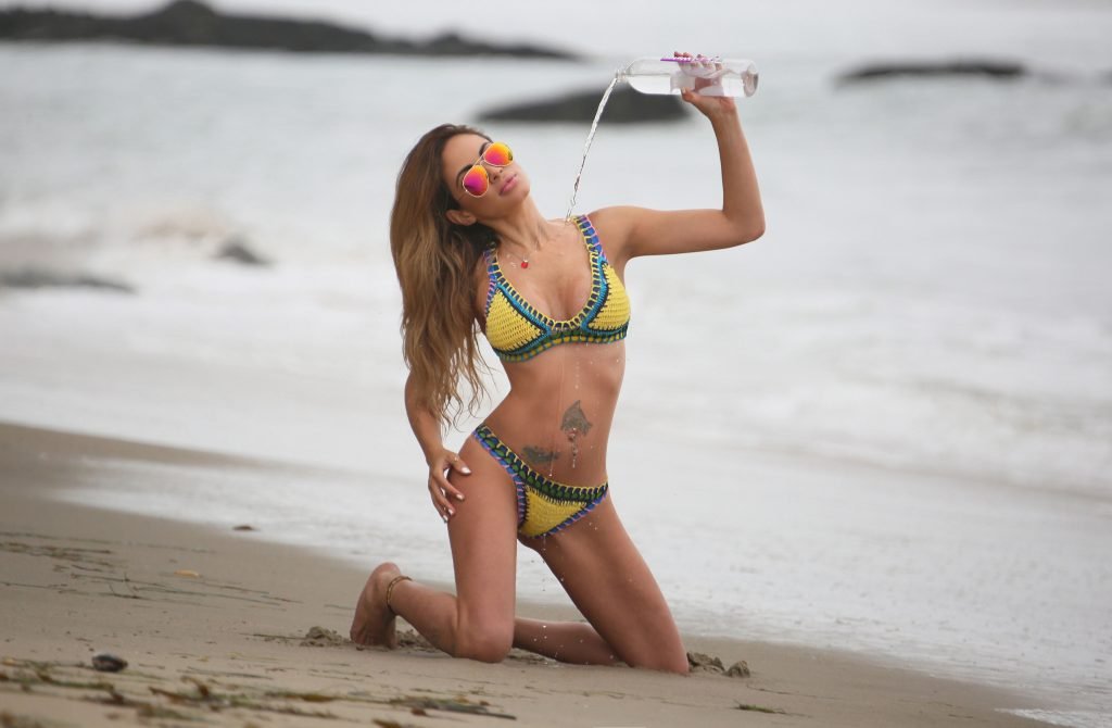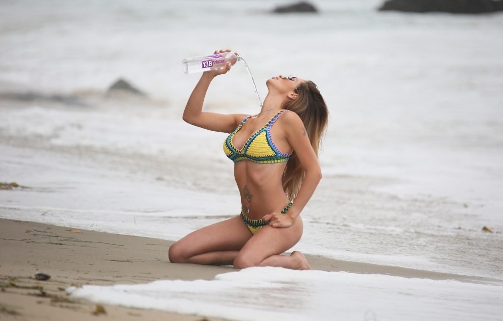 Коста-риканская модель Ари Лезама позирует во время игривой фотосессии в бикини для 138 Water на пляже в Малибу, 29.10.2018.