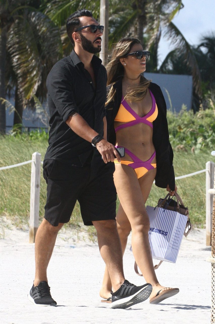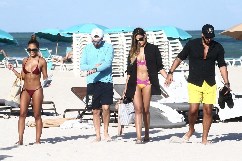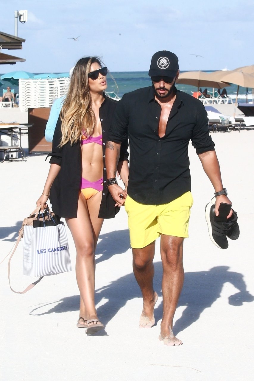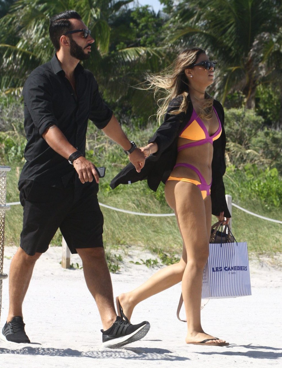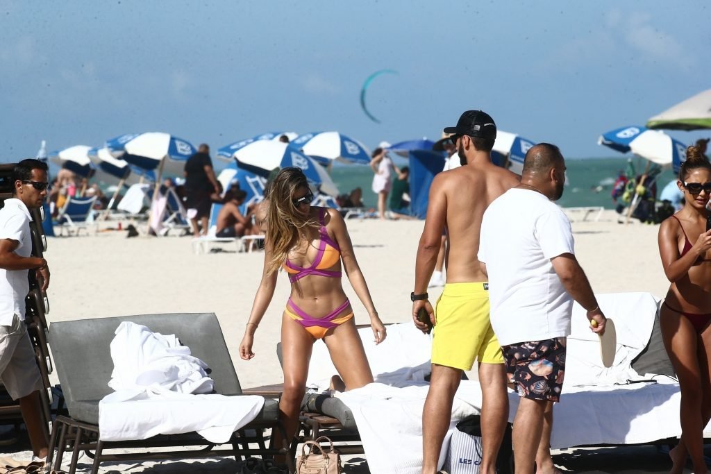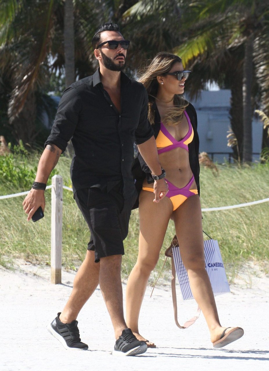 Колумбийская красавица, 24-летняя бывшая Мисс Вселенная Ариадна Гутьеррес продемонстрировала своё тело в бикини, играя с другом на пляже в Майами-Бич, 30.08.2018.