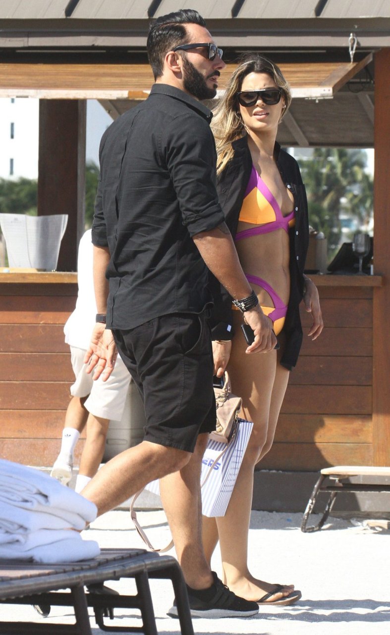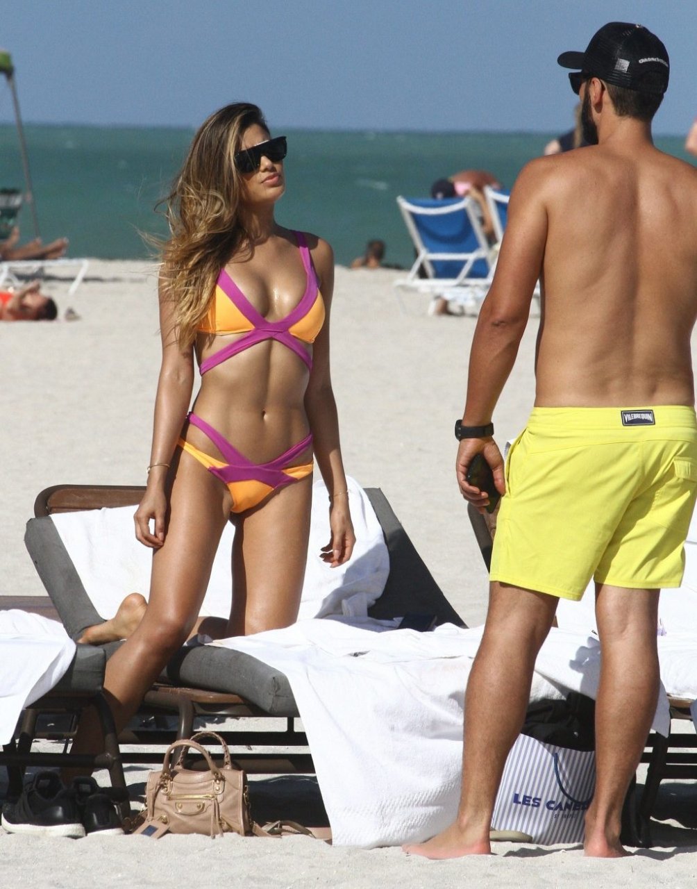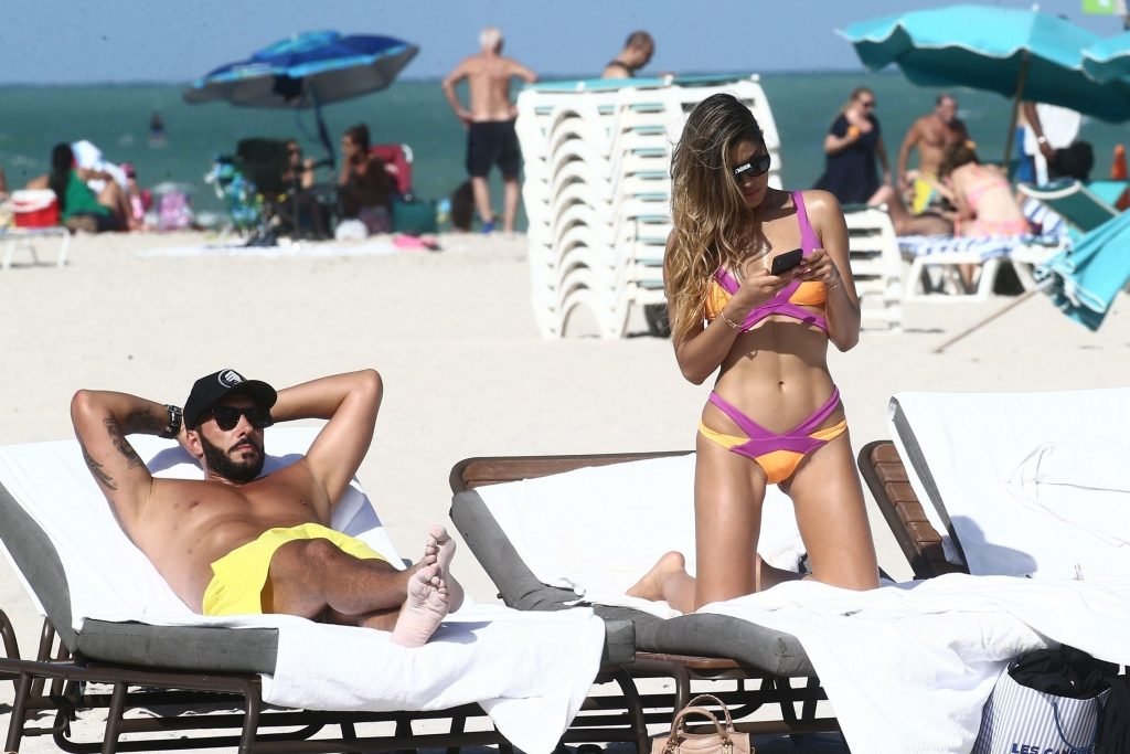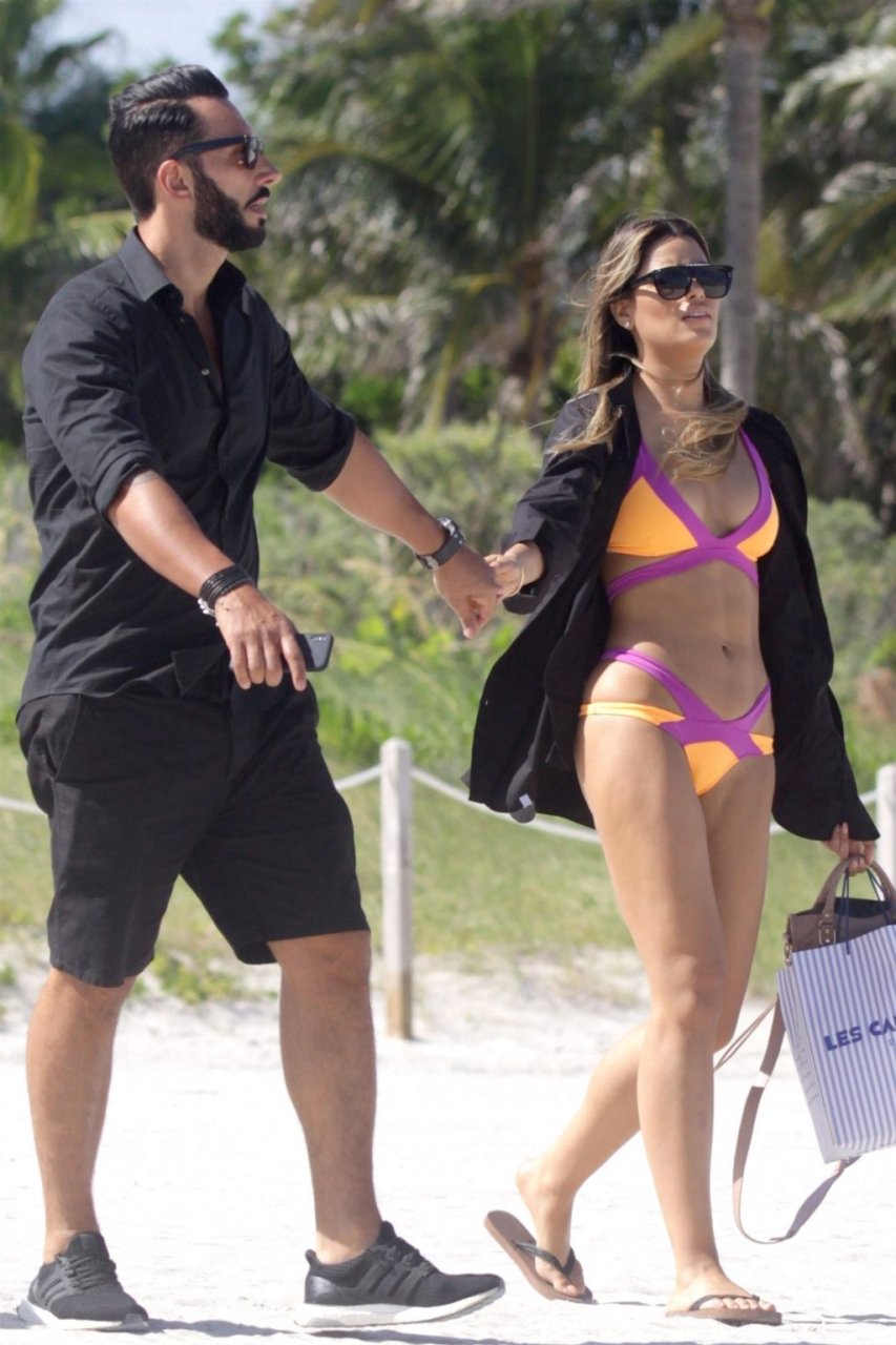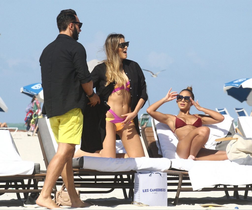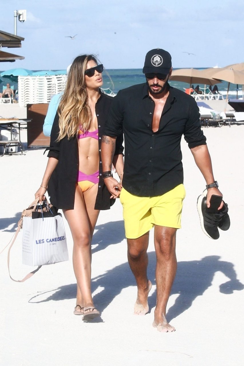 Колумбийская красавица, 24-летняя бывшая Мисс Вселенная Ариадна Гутьеррес продемонстрировала своё тело в бикини, играя с другом на пляже в Майами-Бич, 30.08.2018.