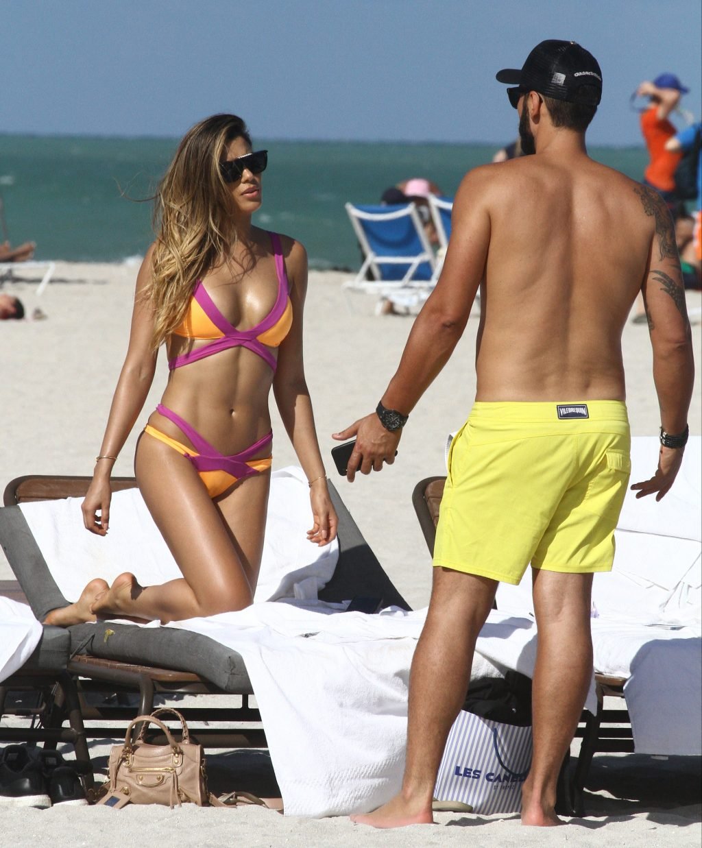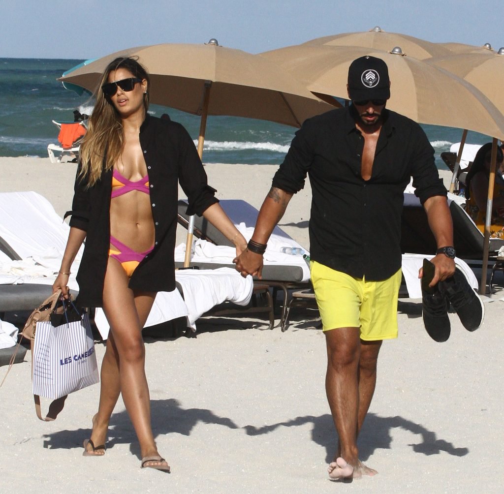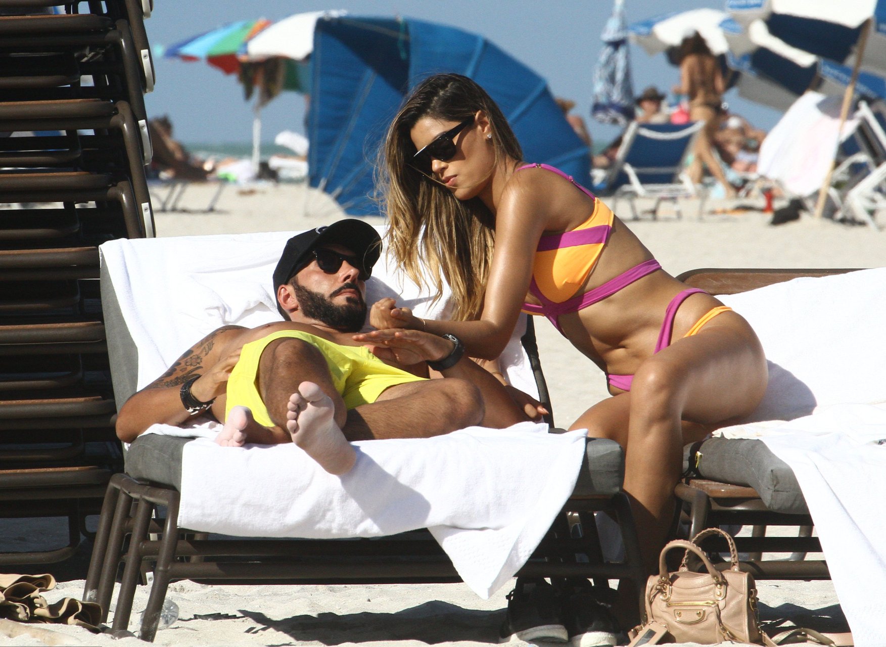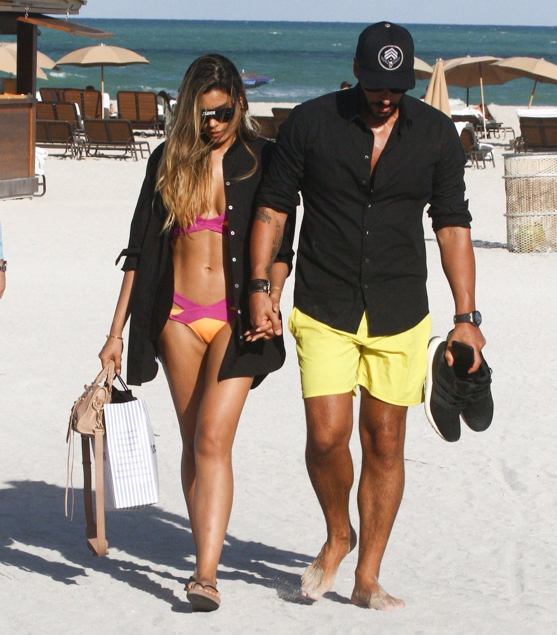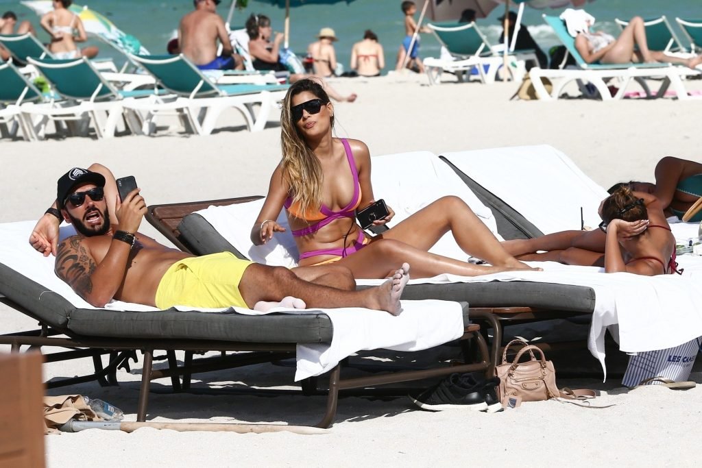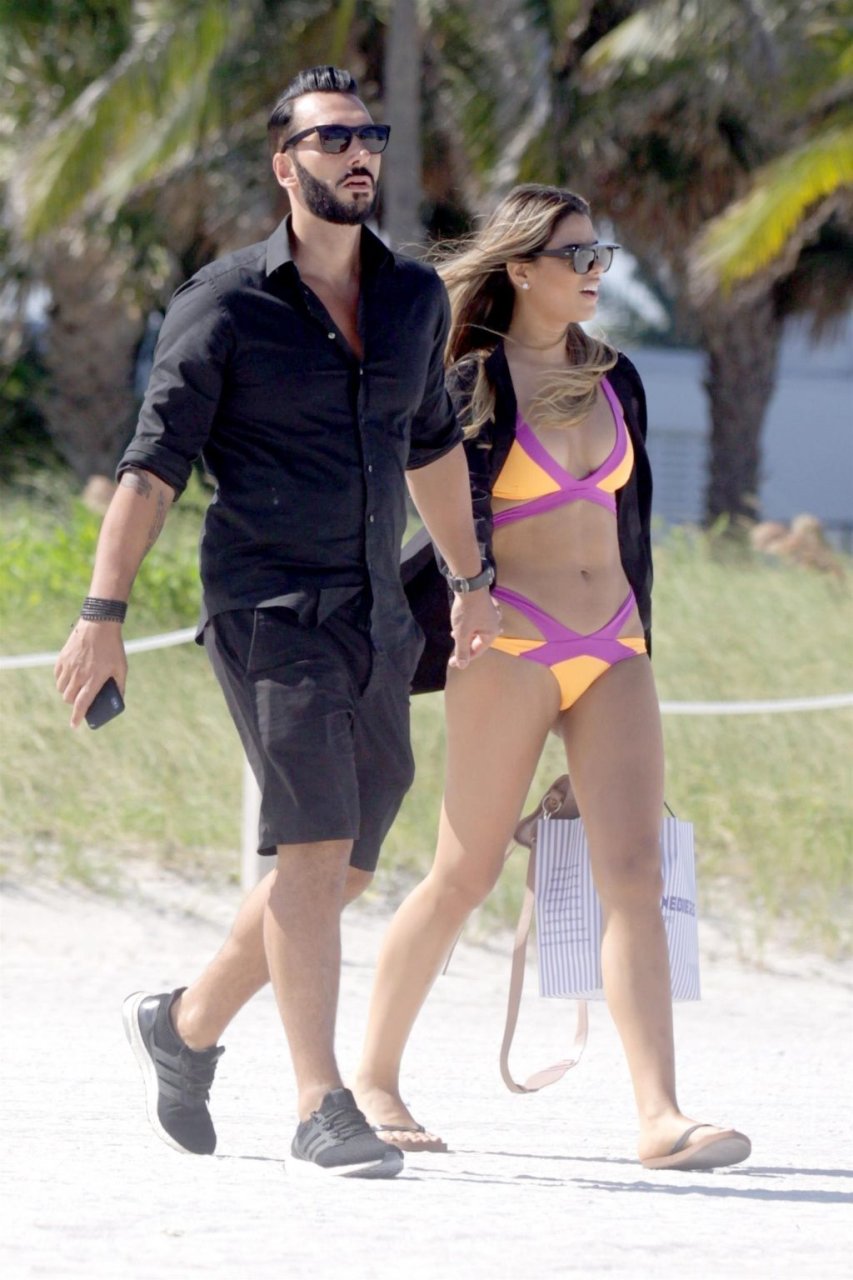 Колумбийская красавица, 24-летняя бывшая Мисс Вселенная Ариадна Гутьеррес продемонстрировала своё тело в бикини, играя с другом на пляже в Майами-Бич, 30.08.2018.