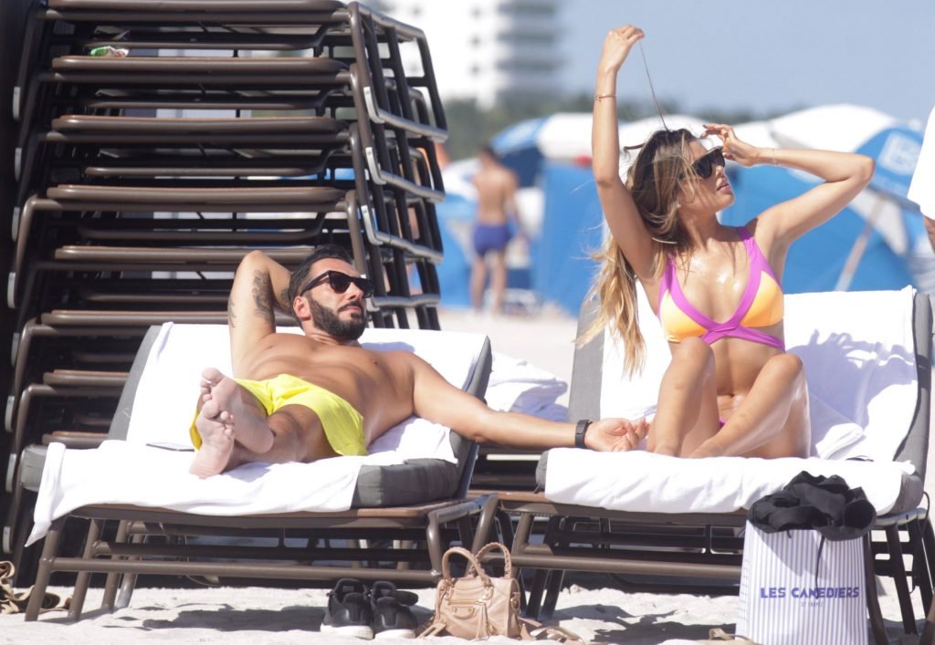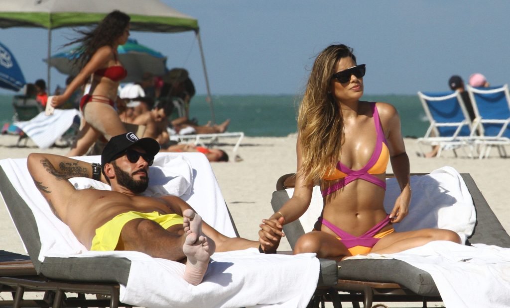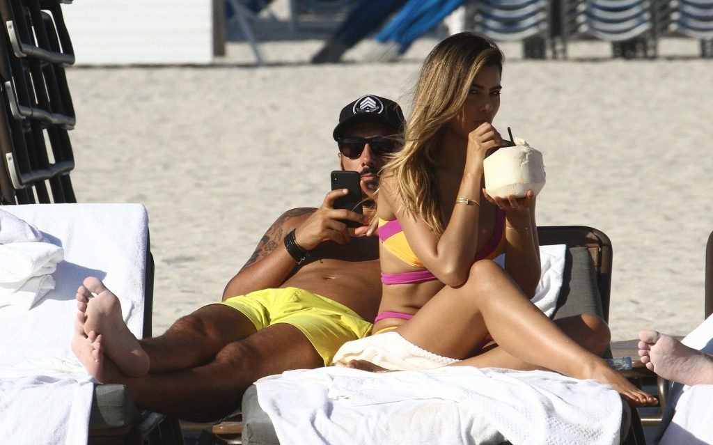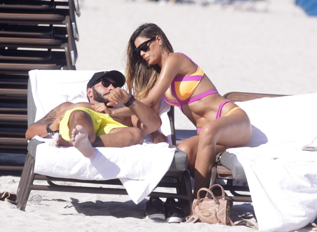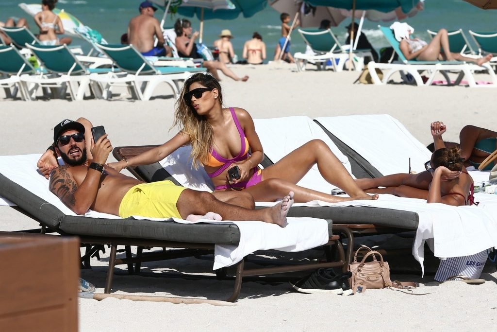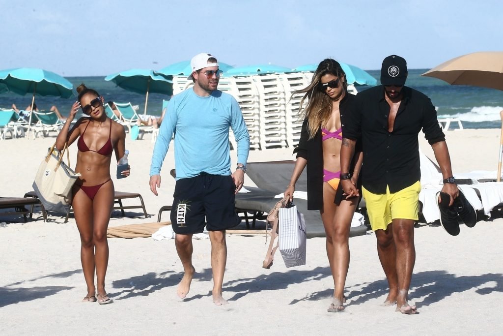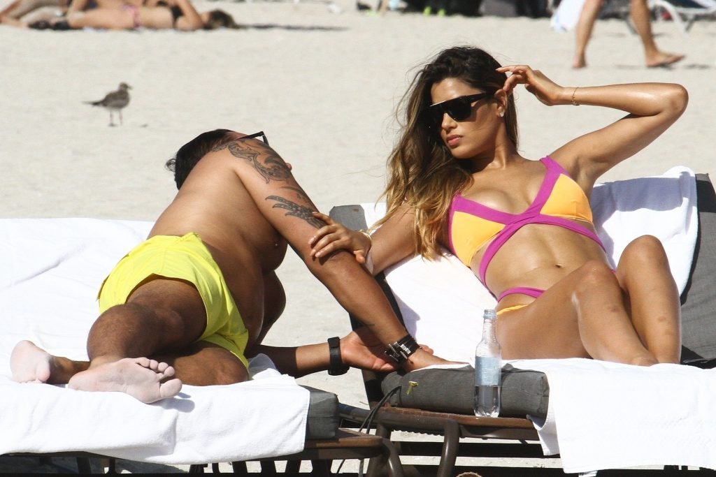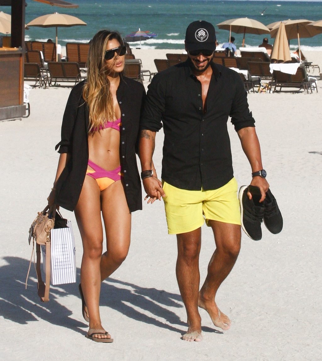 Колумбийская красавица, 24-летняя бывшая Мисс Вселенная Ариадна Гутьеррес продемонстрировала своё тело в бикини, играя с другом на пляже в Майами-Бич, 30.08.2018.