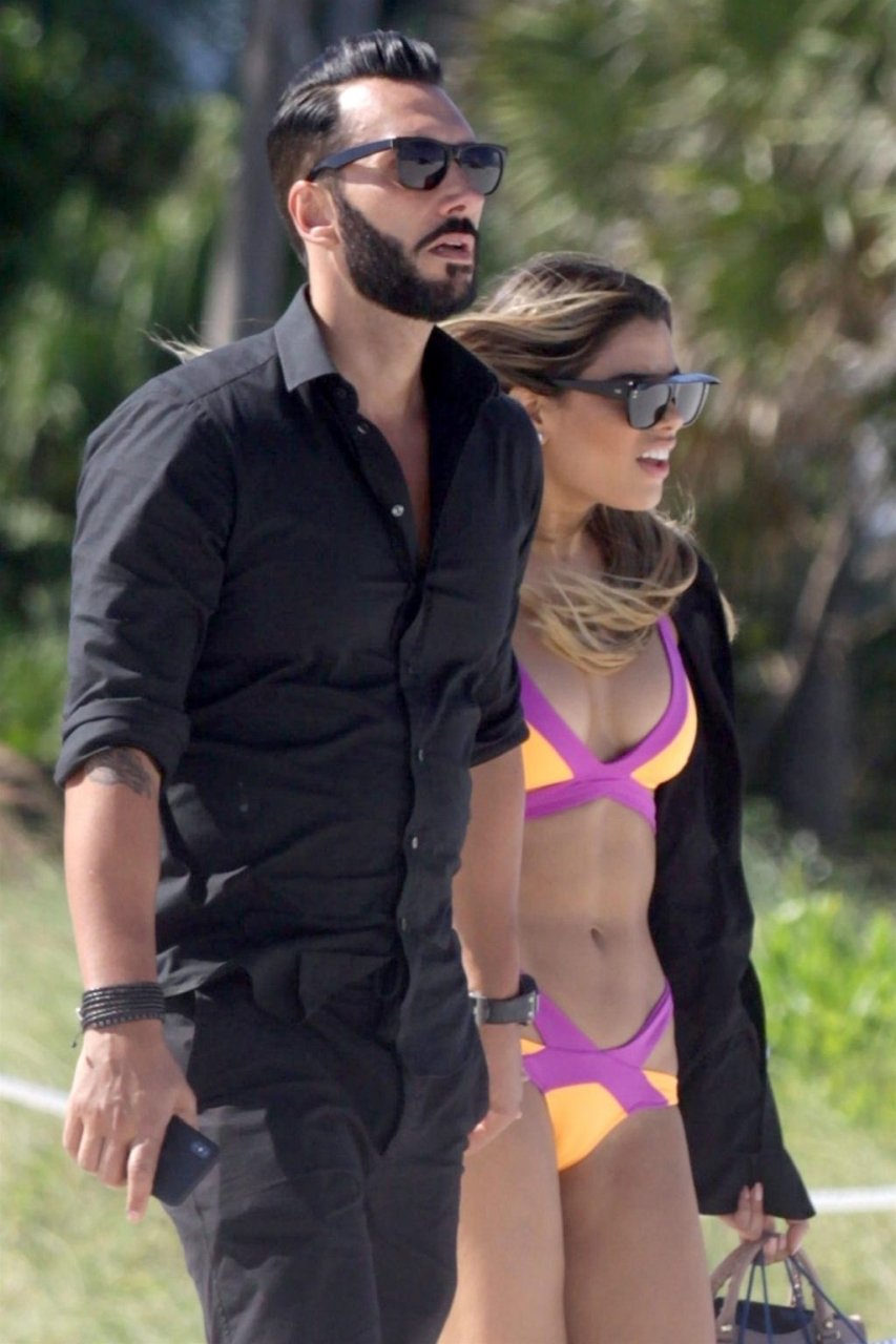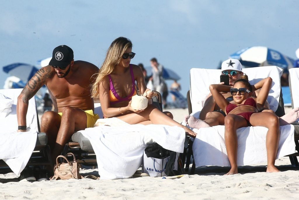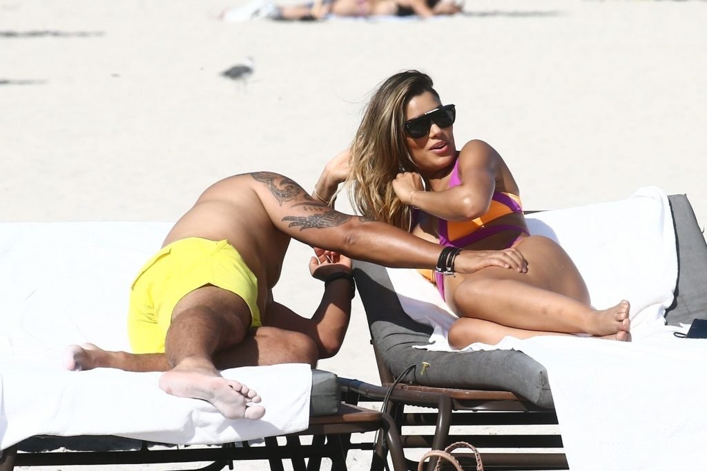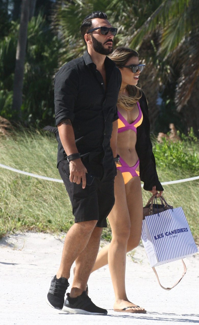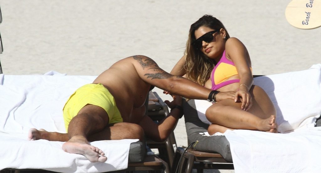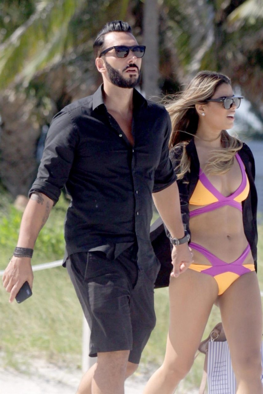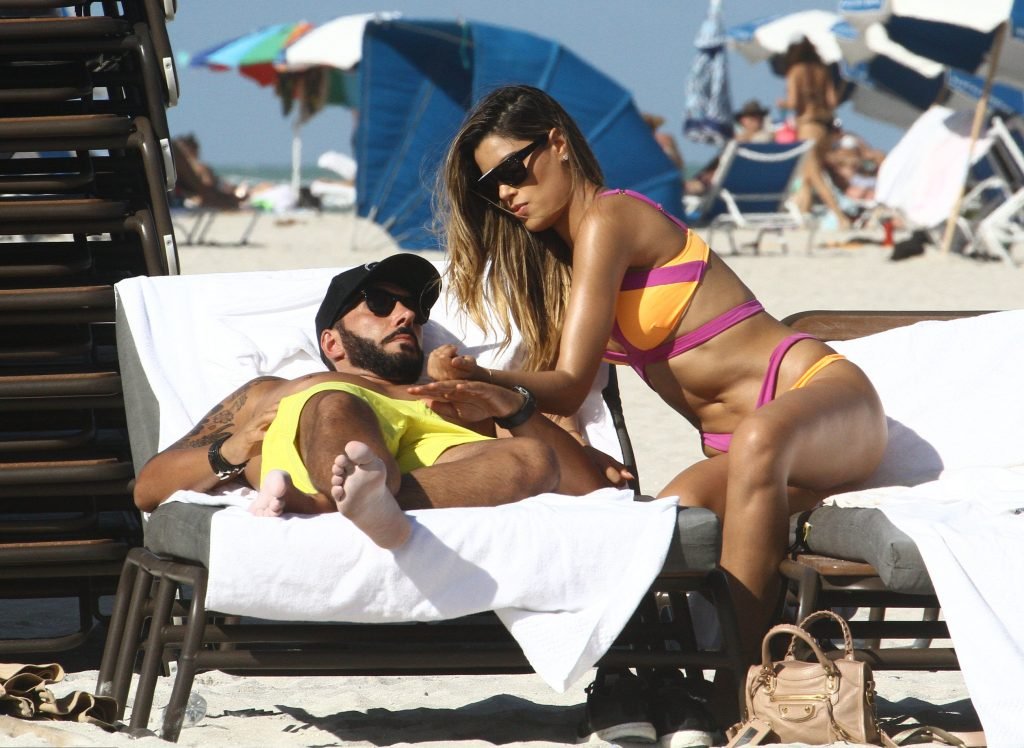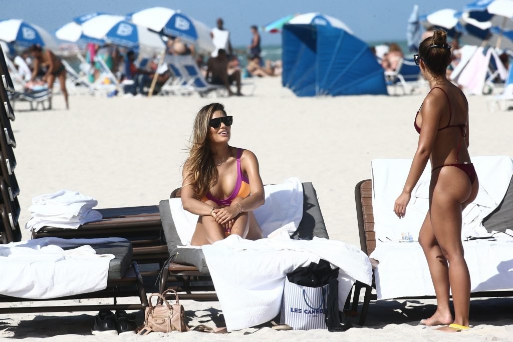 Колумбийская красавица, 24-летняя бывшая Мисс Вселенная Ариадна Гутьеррес продемонстрировала своё тело в бикини, играя с другом на пляже в Майами-Бич, 30.08.2018.