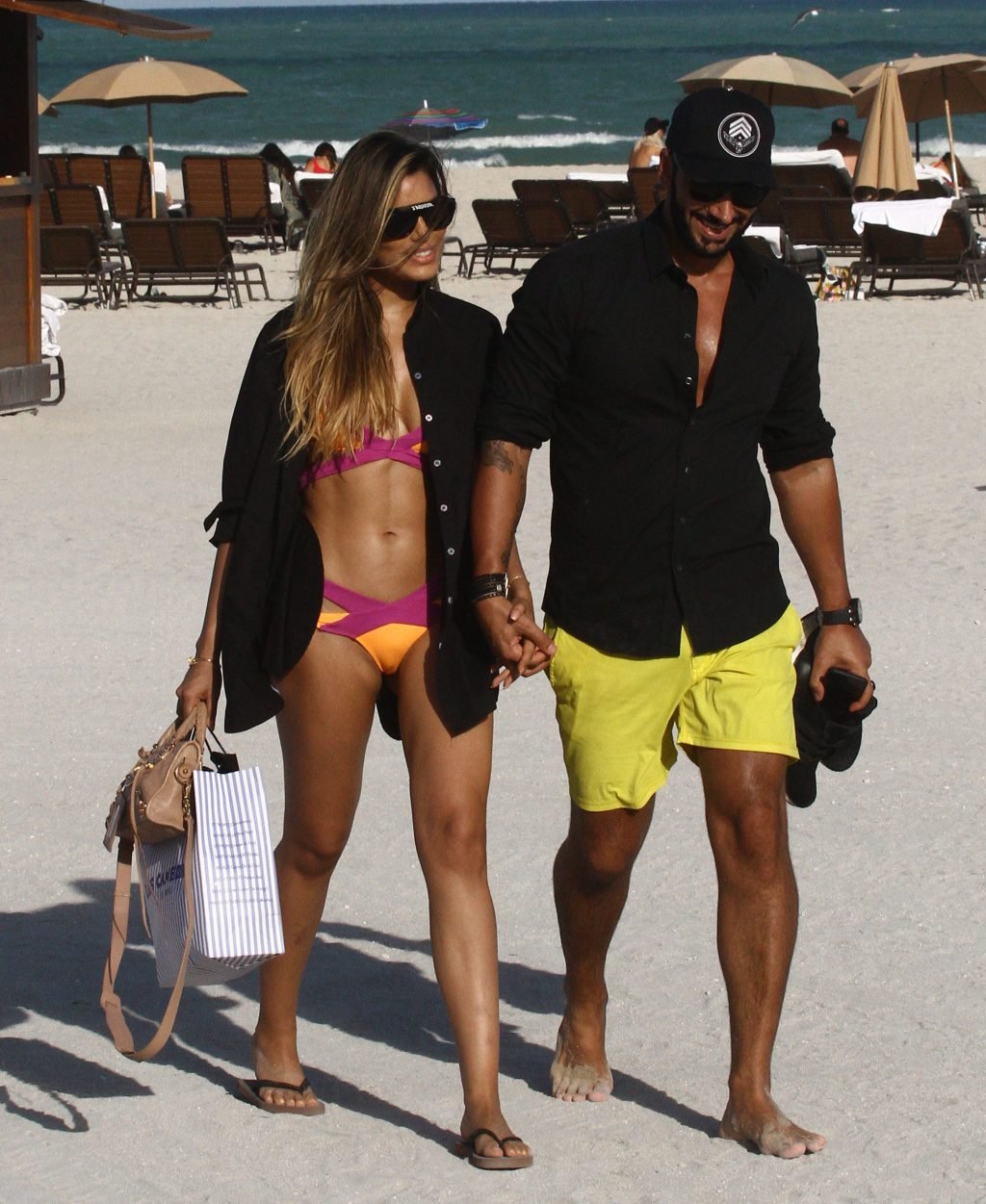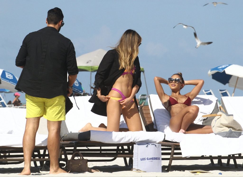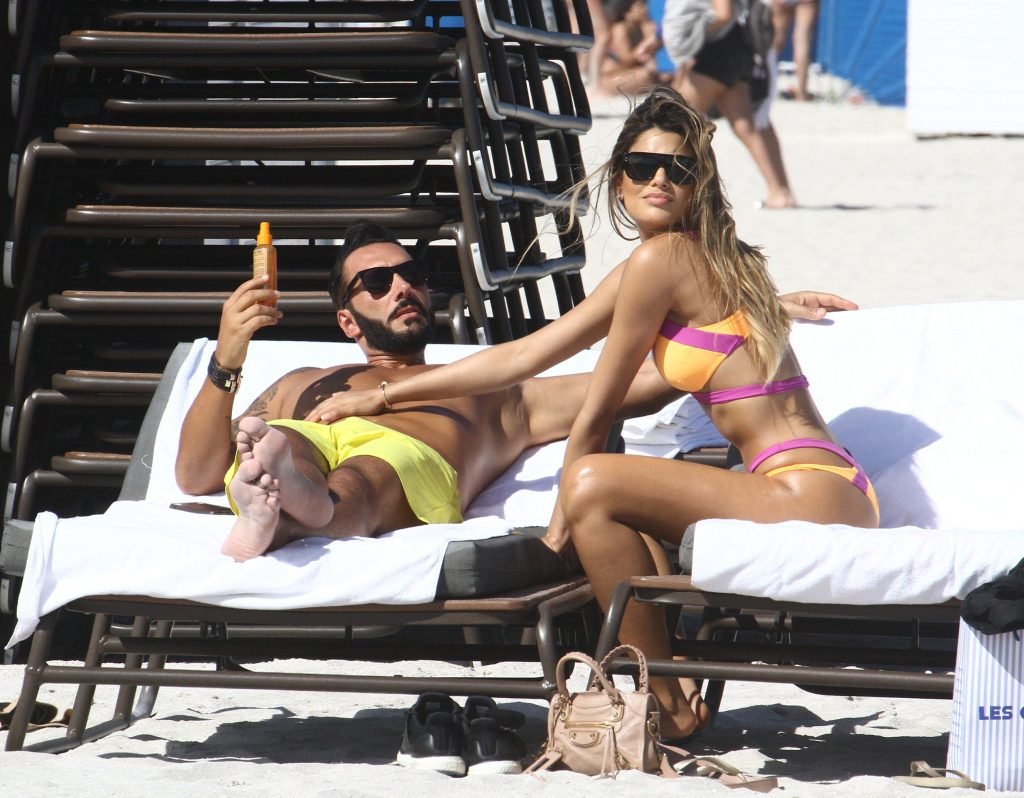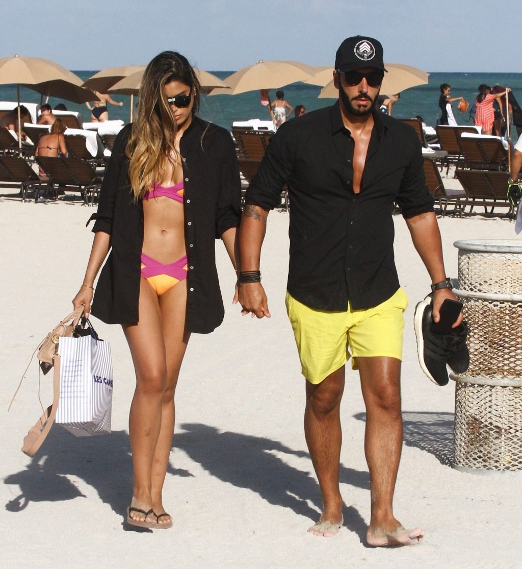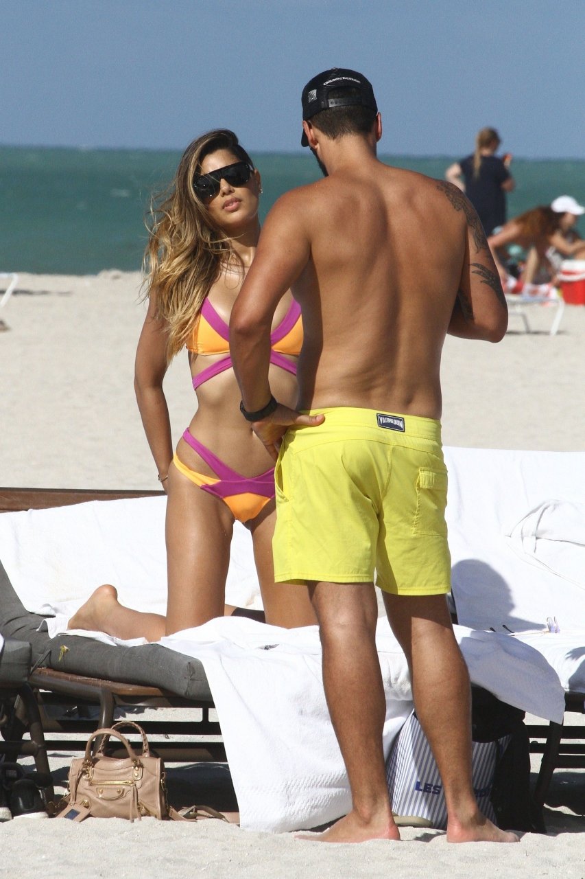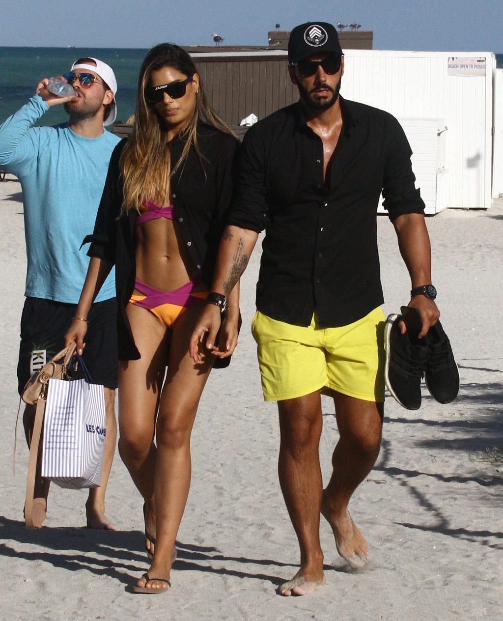 Колумбийская красавица, 24-летняя бывшая Мисс Вселенная Ариадна Гутьеррес продемонстрировала своё тело в бикини, играя с другом на пляже в Майами-Бич, 30.08.2018.