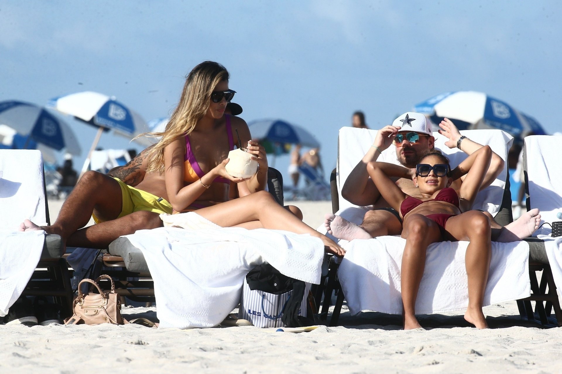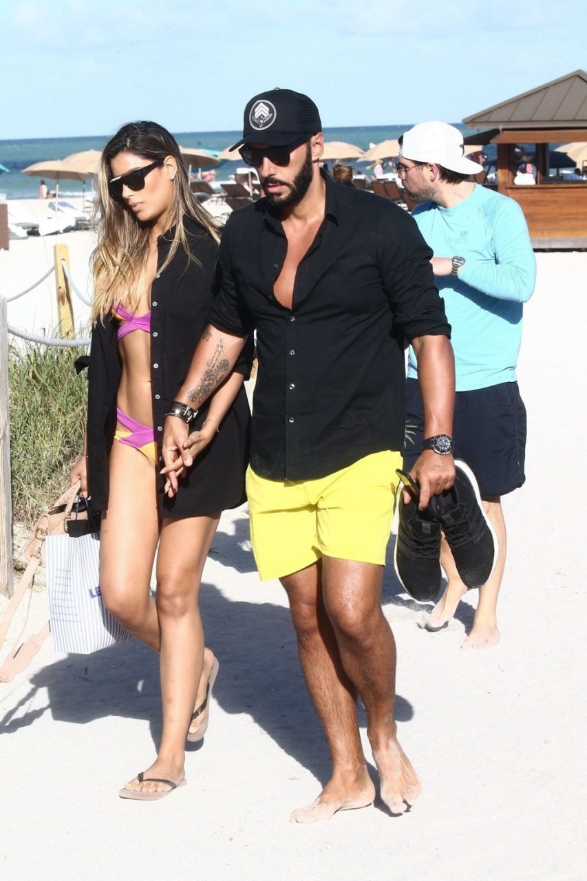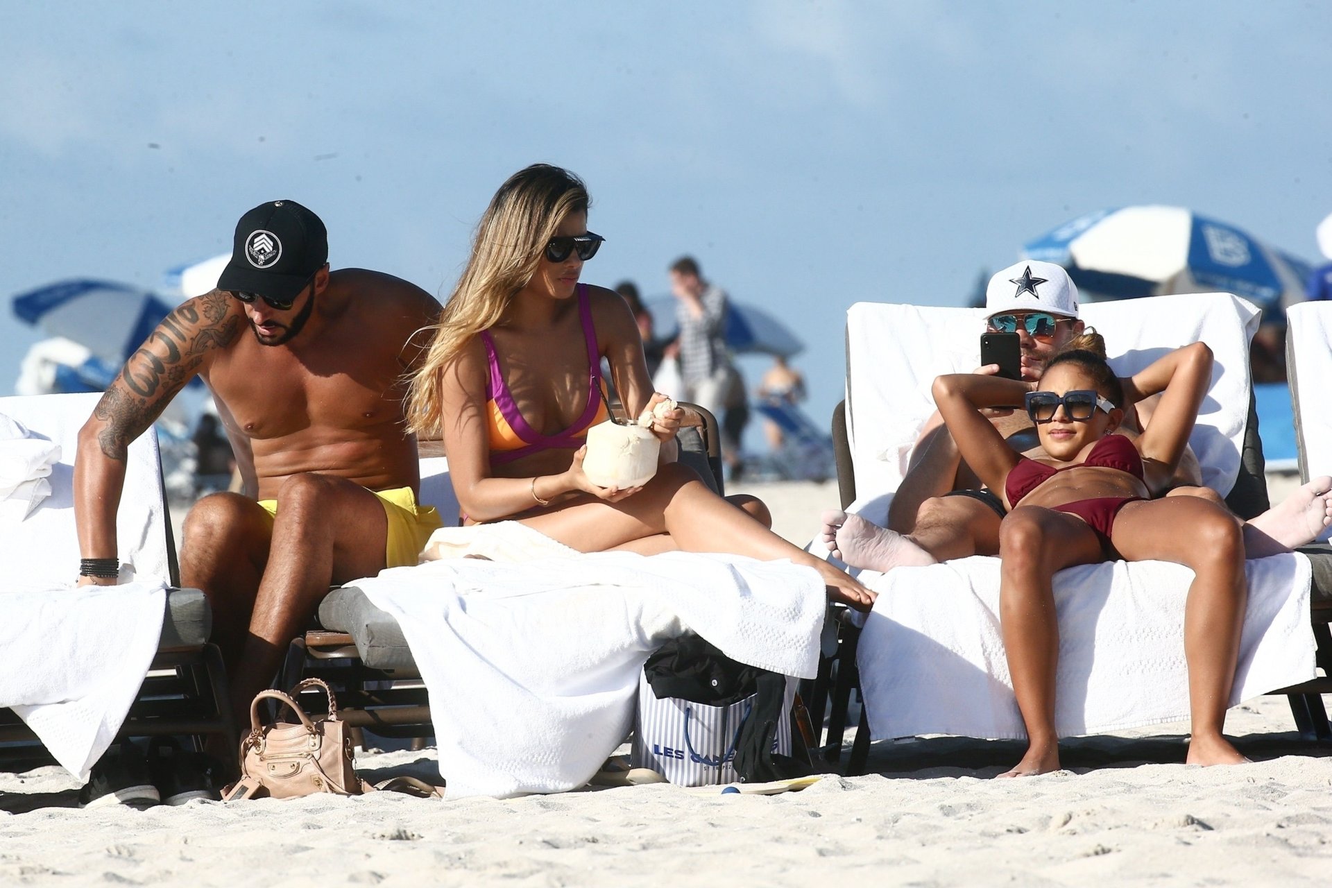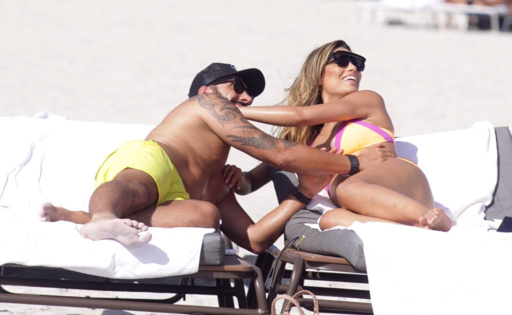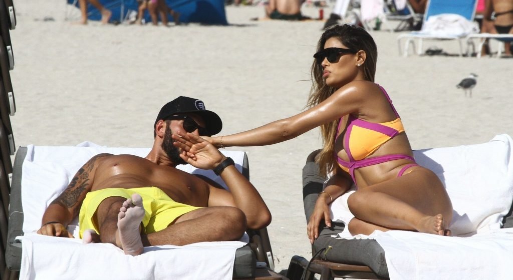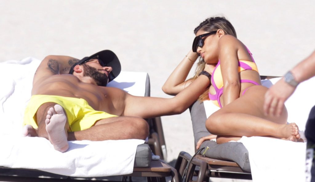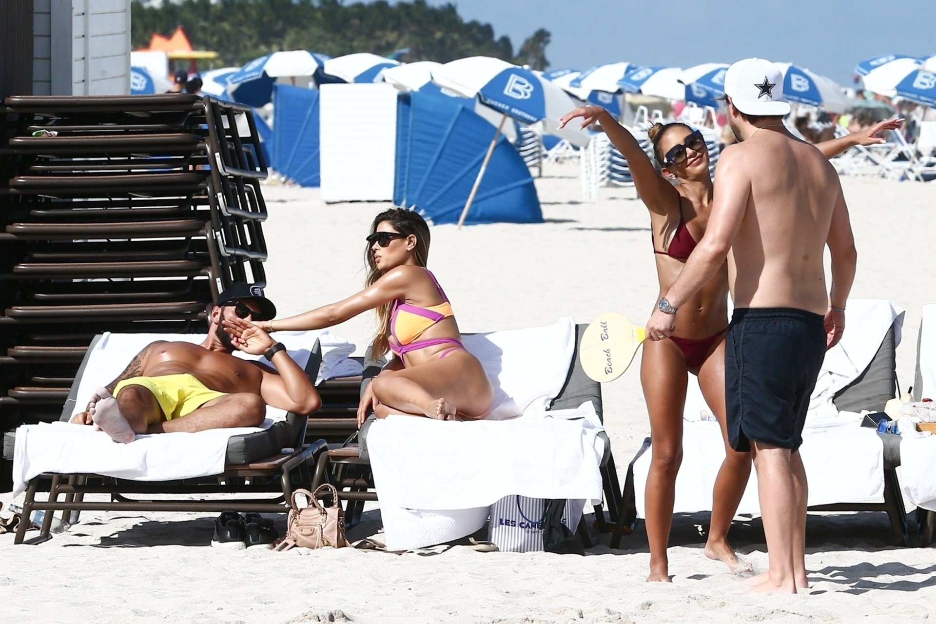 Колумбийская красавица, 24-летняя бывшая Мисс Вселенная Ариадна Гутьеррес продемонстрировала своё тело в бикини, играя с другом на пляже в Майами-Бич, 30.08.2018.