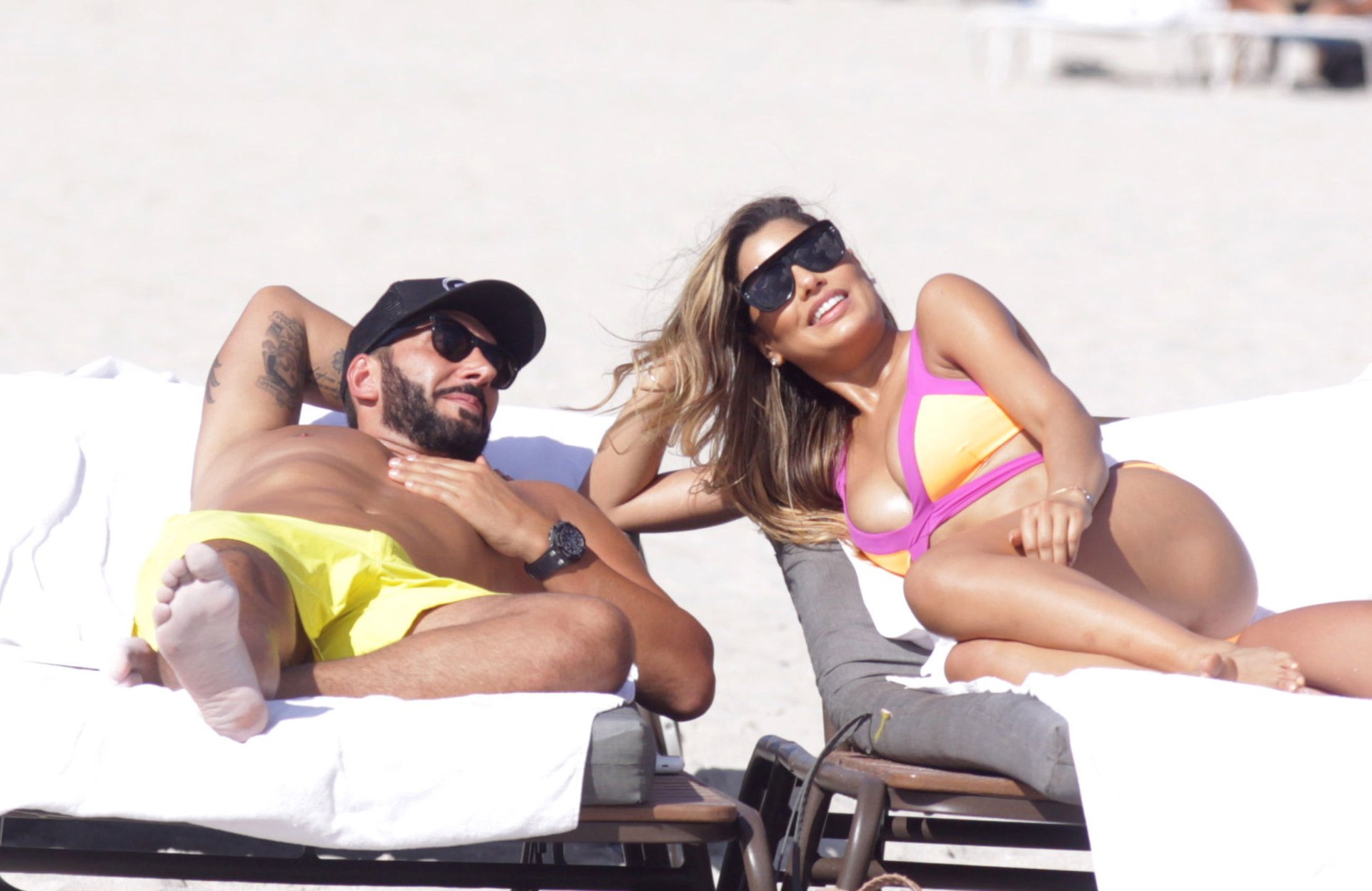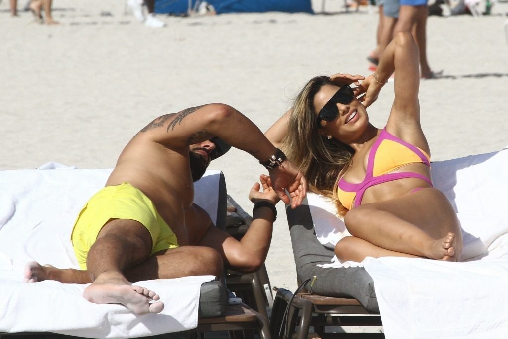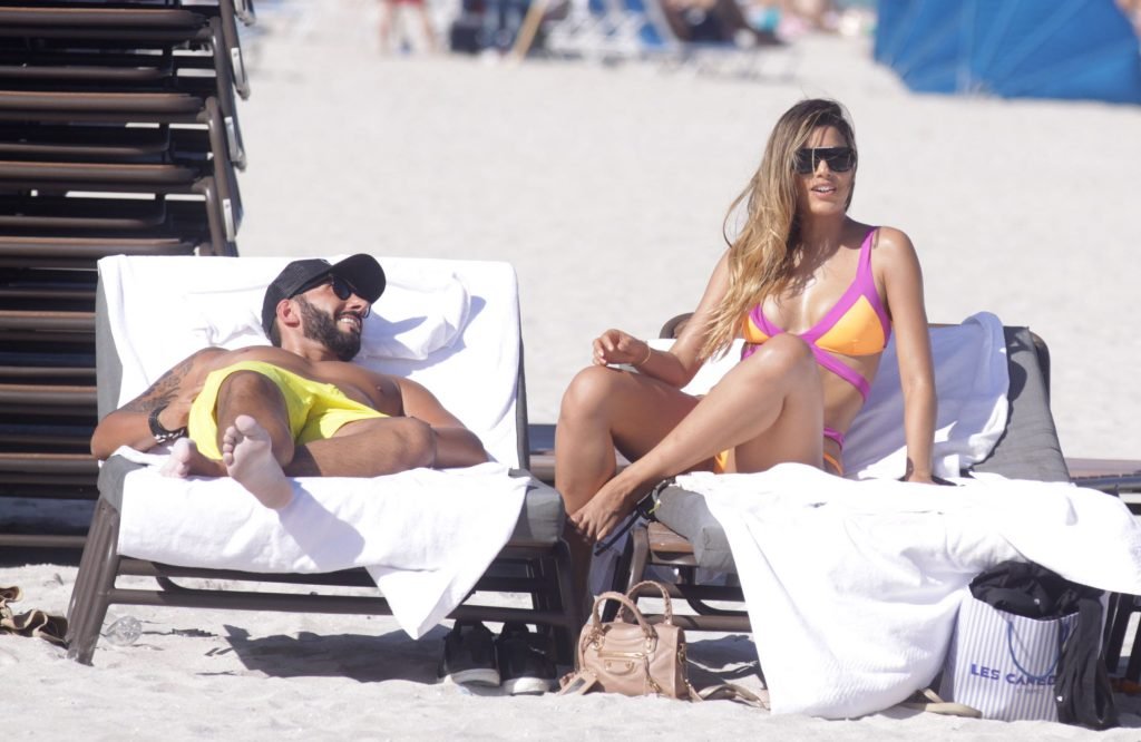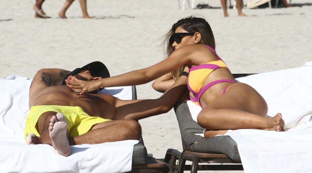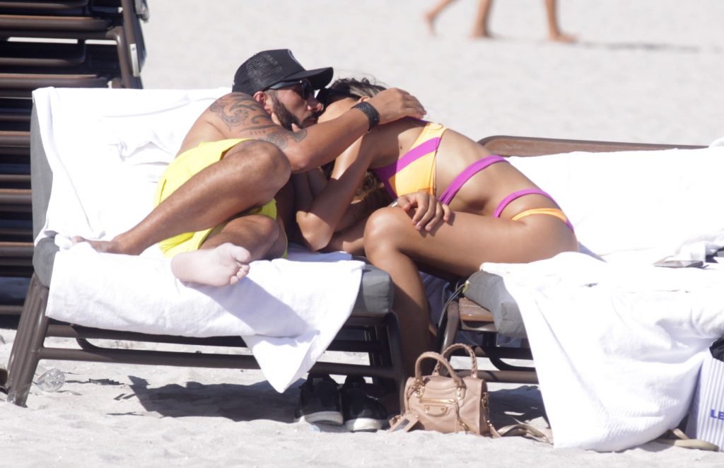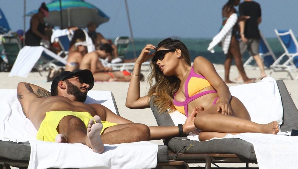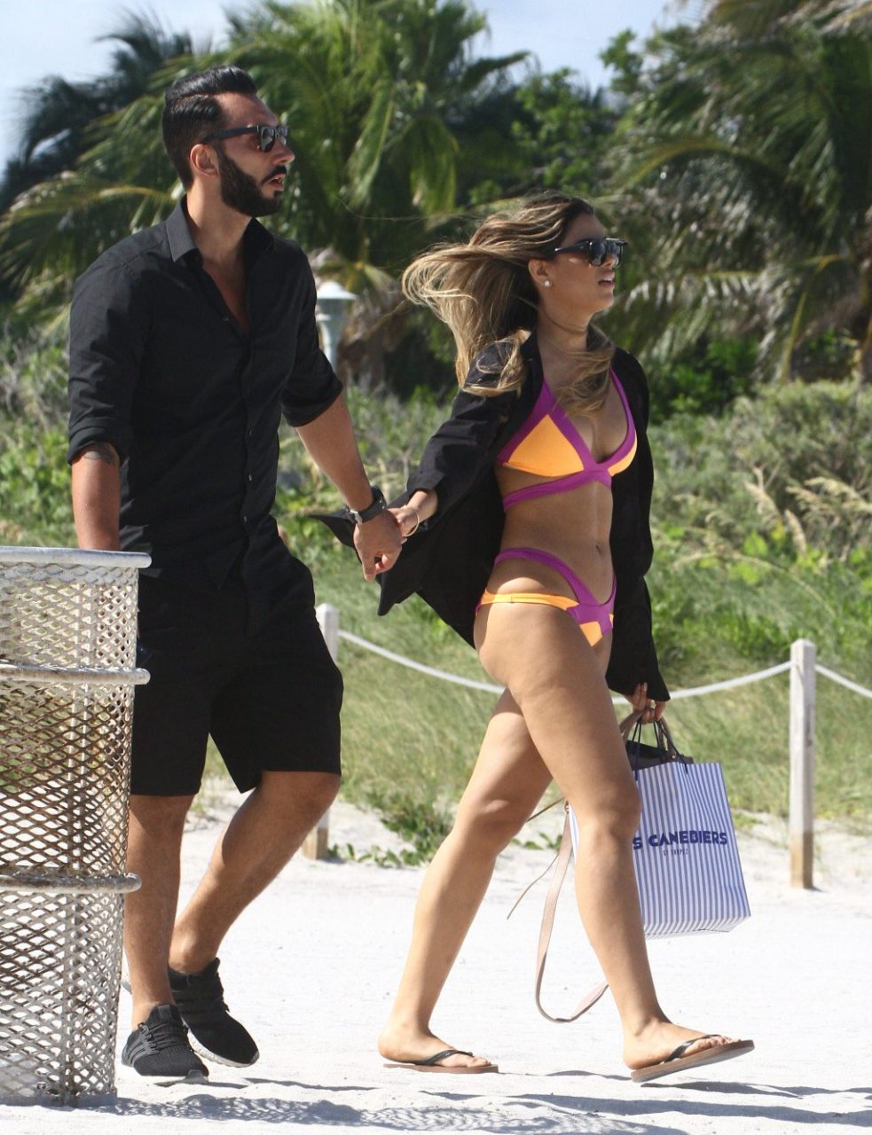 Колумбийская красавица, 24-летняя бывшая Мисс Вселенная Ариадна Гутьеррес продемонстрировала своё тело в бикини, играя с другом на пляже в Майами-Бич, 30.08.2018.