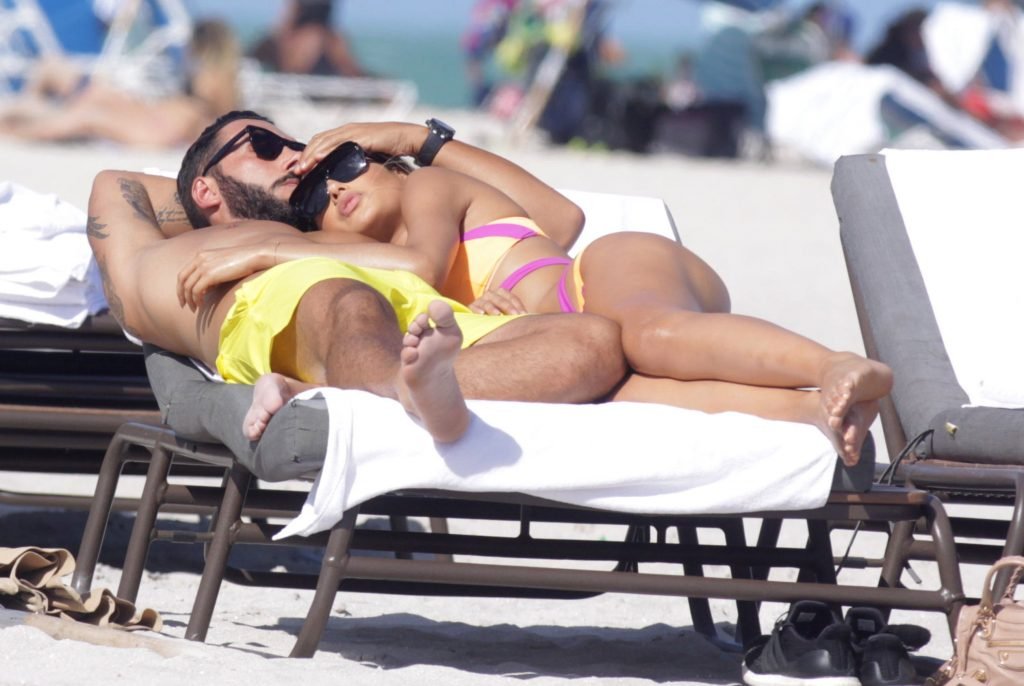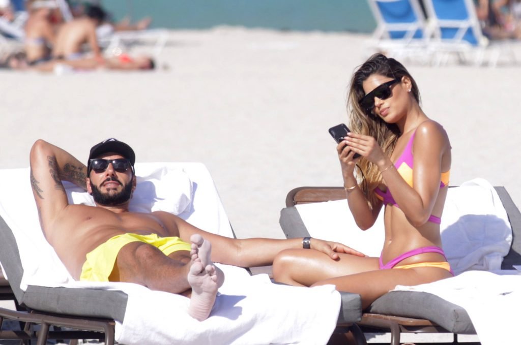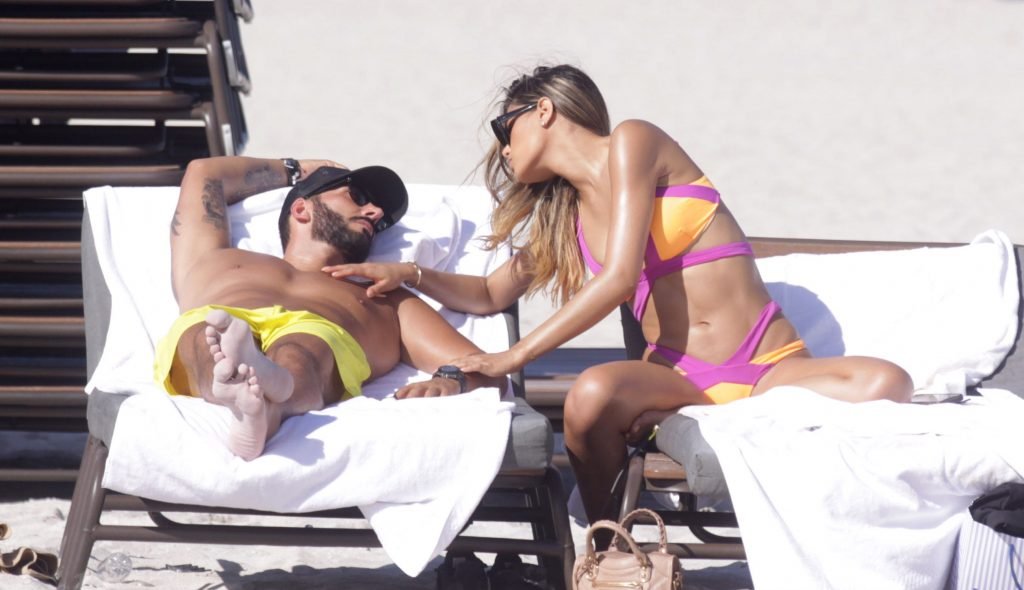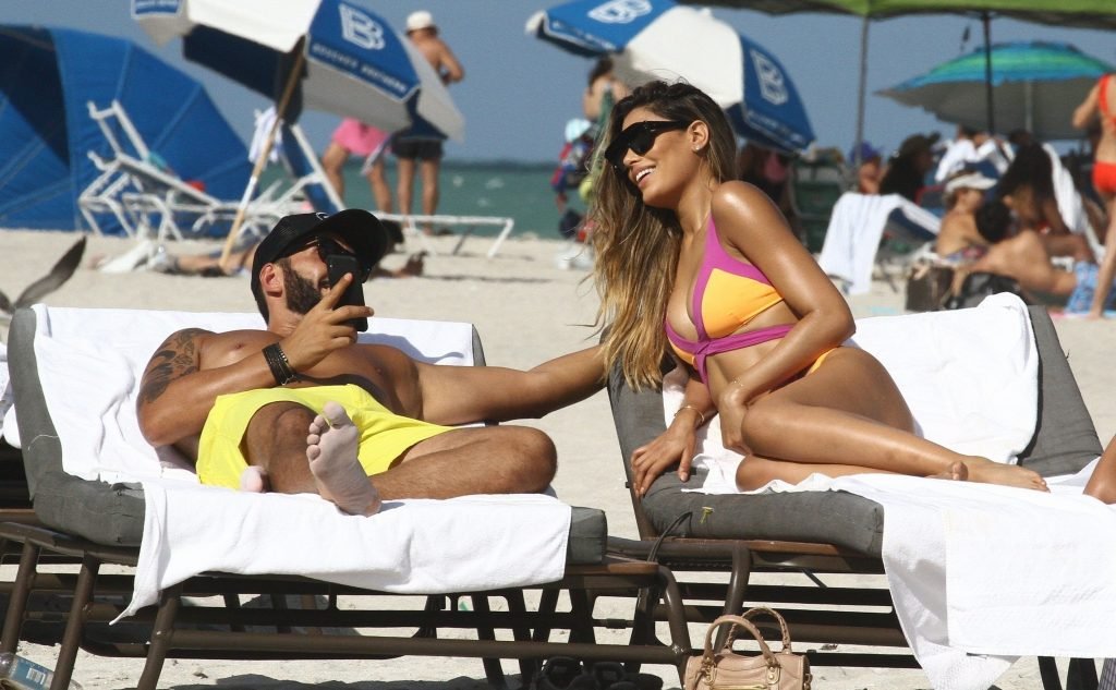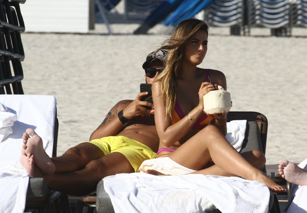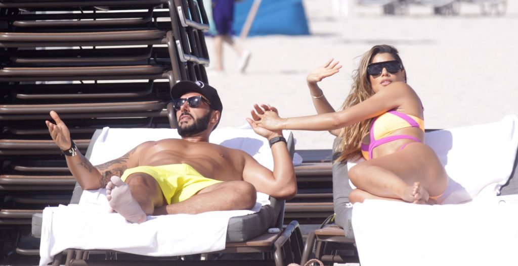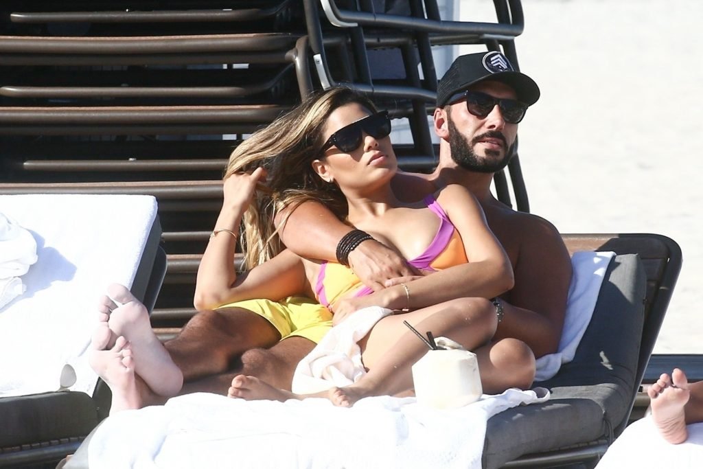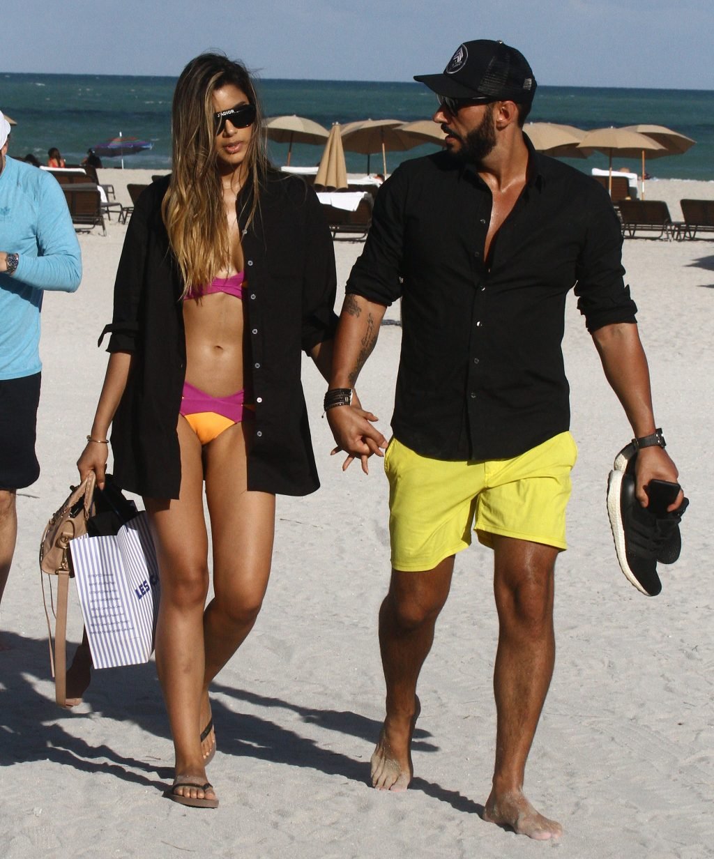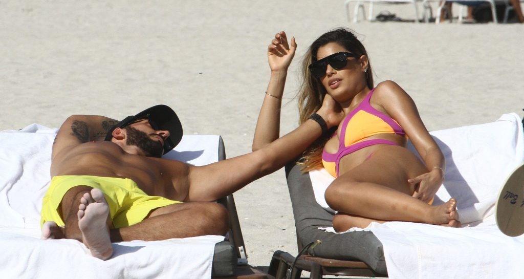 Колумбийская красавица, 24-летняя бывшая Мисс Вселенная Ариадна Гутьеррес продемонстрировала своё тело в бикини, играя с другом на пляже в Майами-Бич, 30.08.2018.