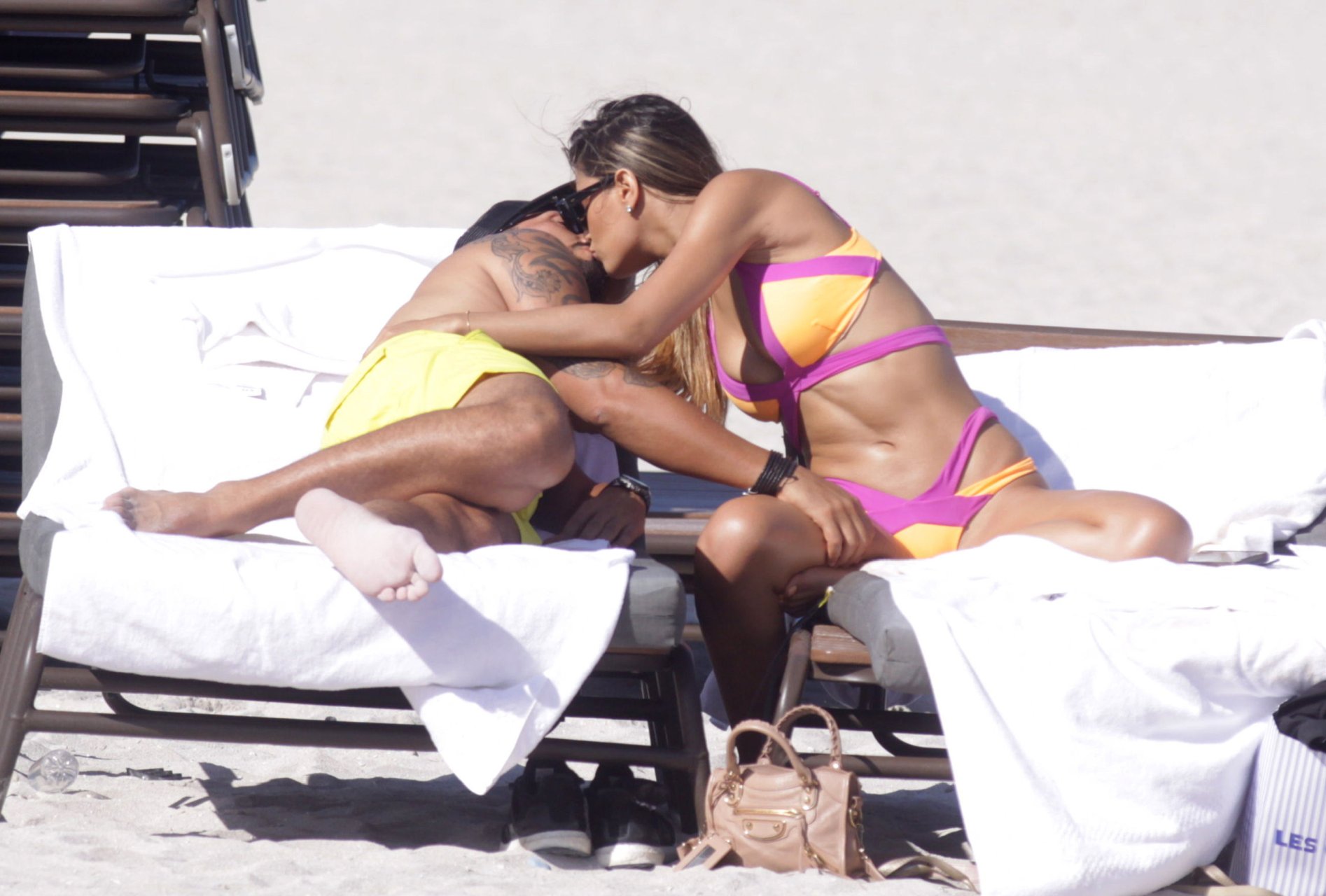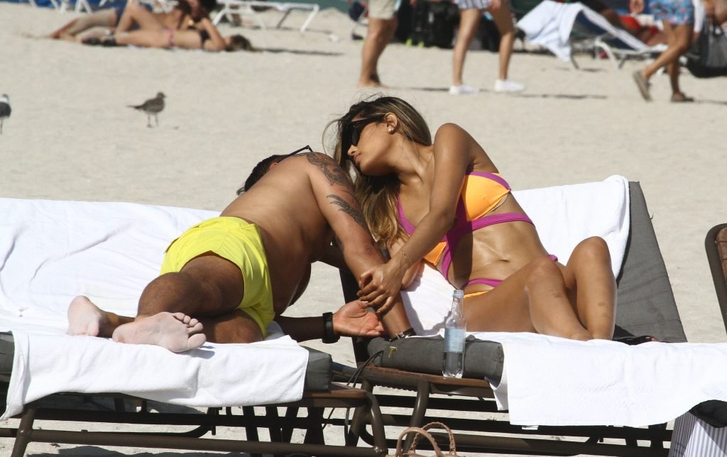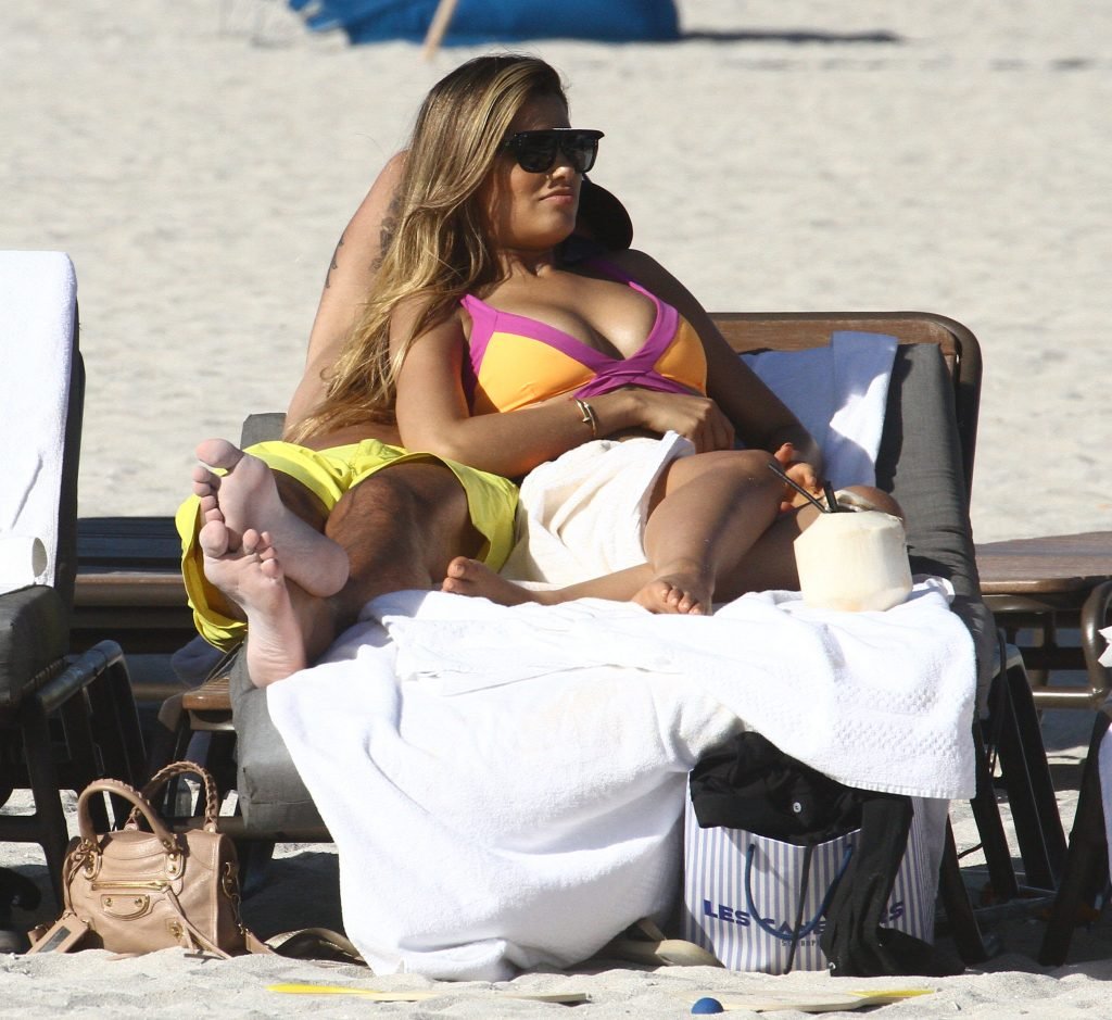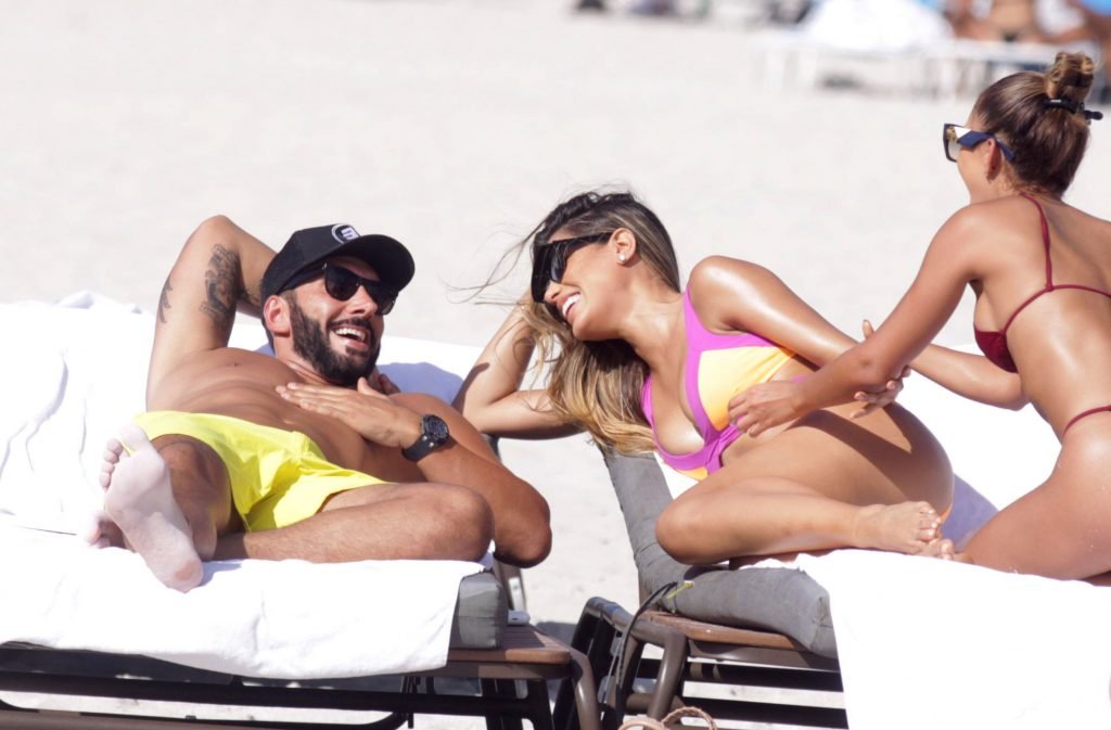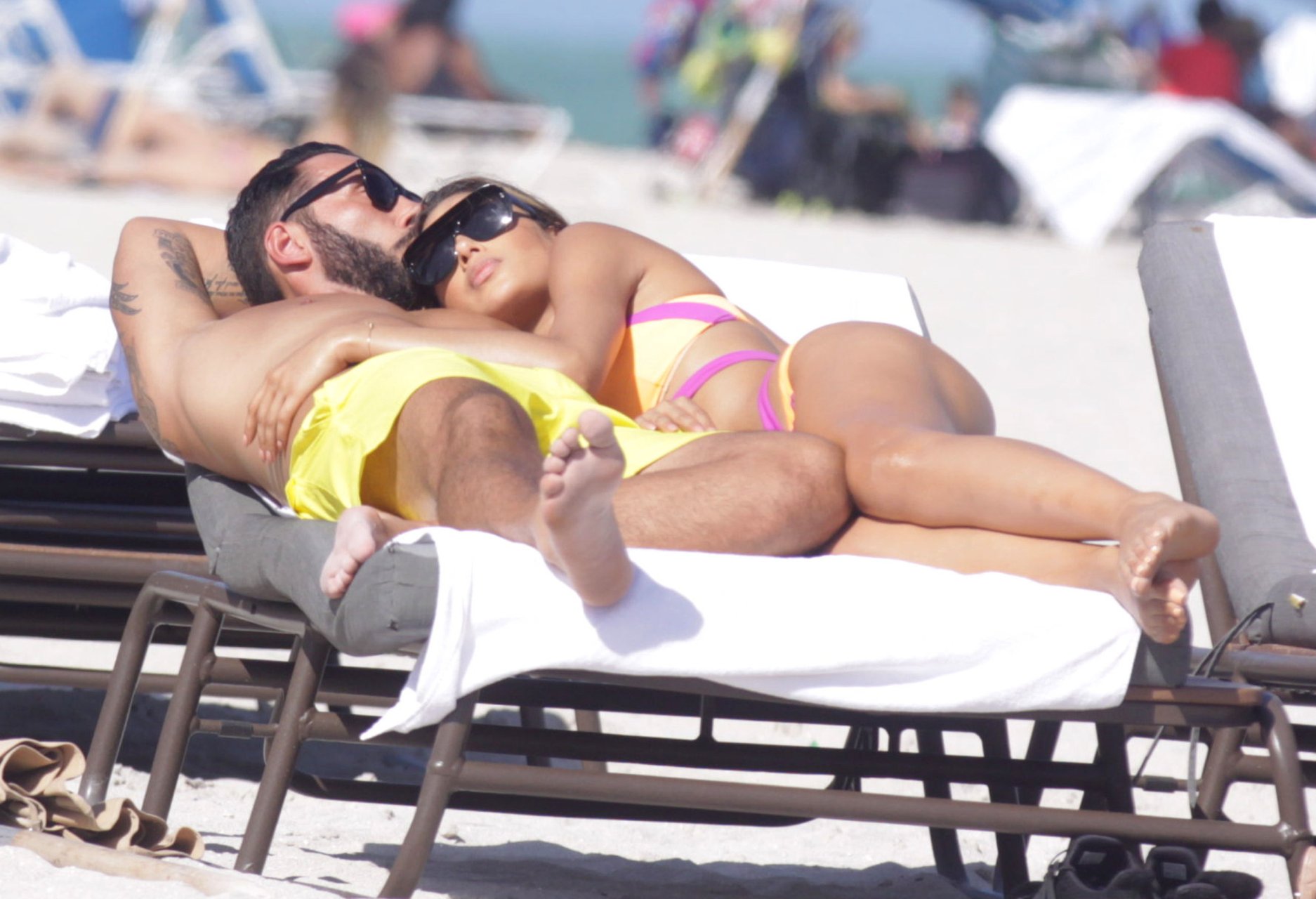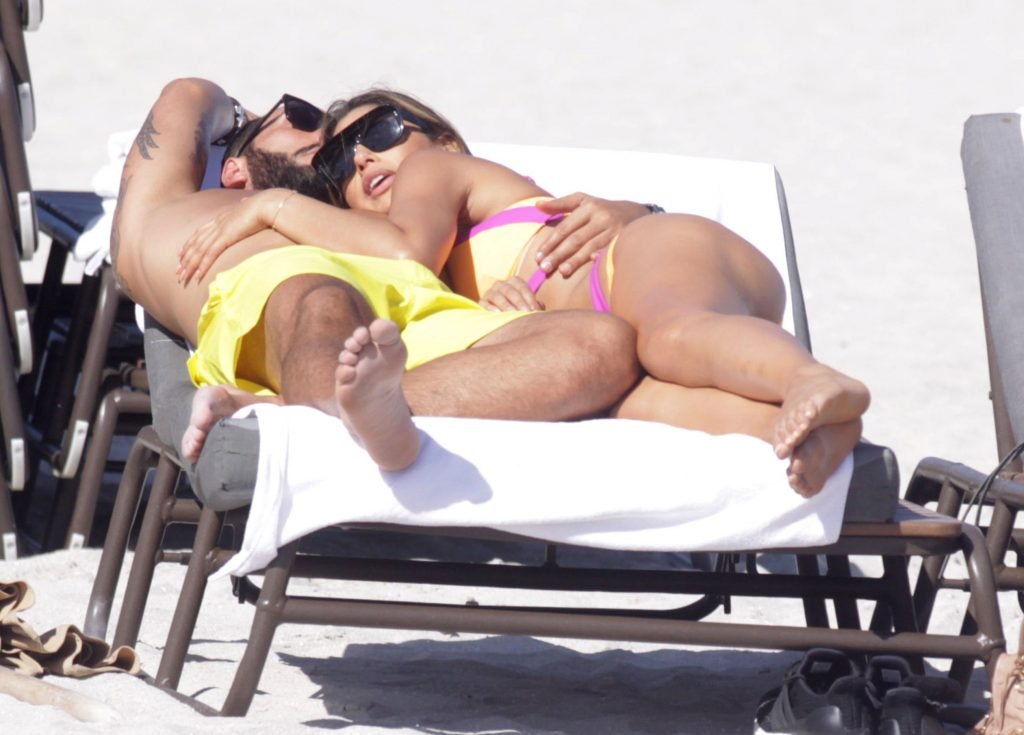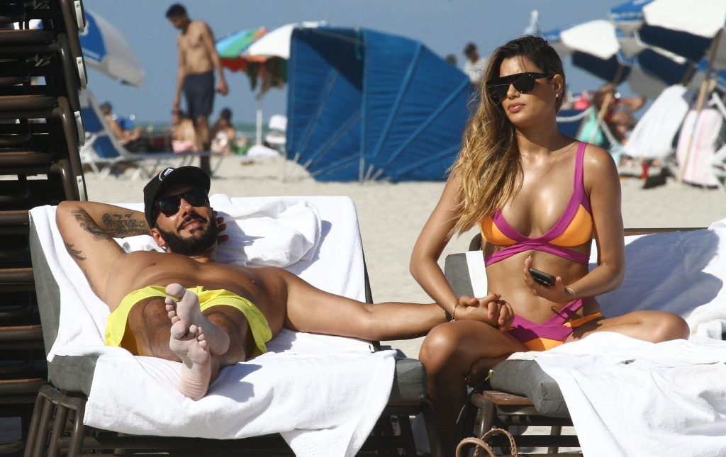 Колумбийская красавица, 24-летняя бывшая Мисс Вселенная Ариадна Гутьеррес продемонстрировала своё тело в бикини, играя с другом на пляже в Майами-Бич, 30.08.2018.