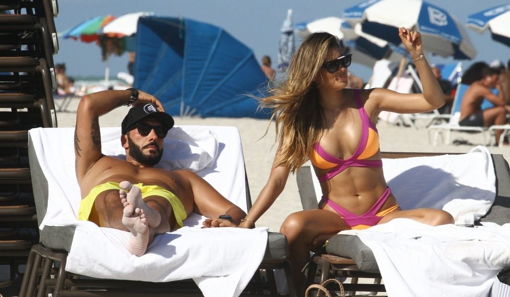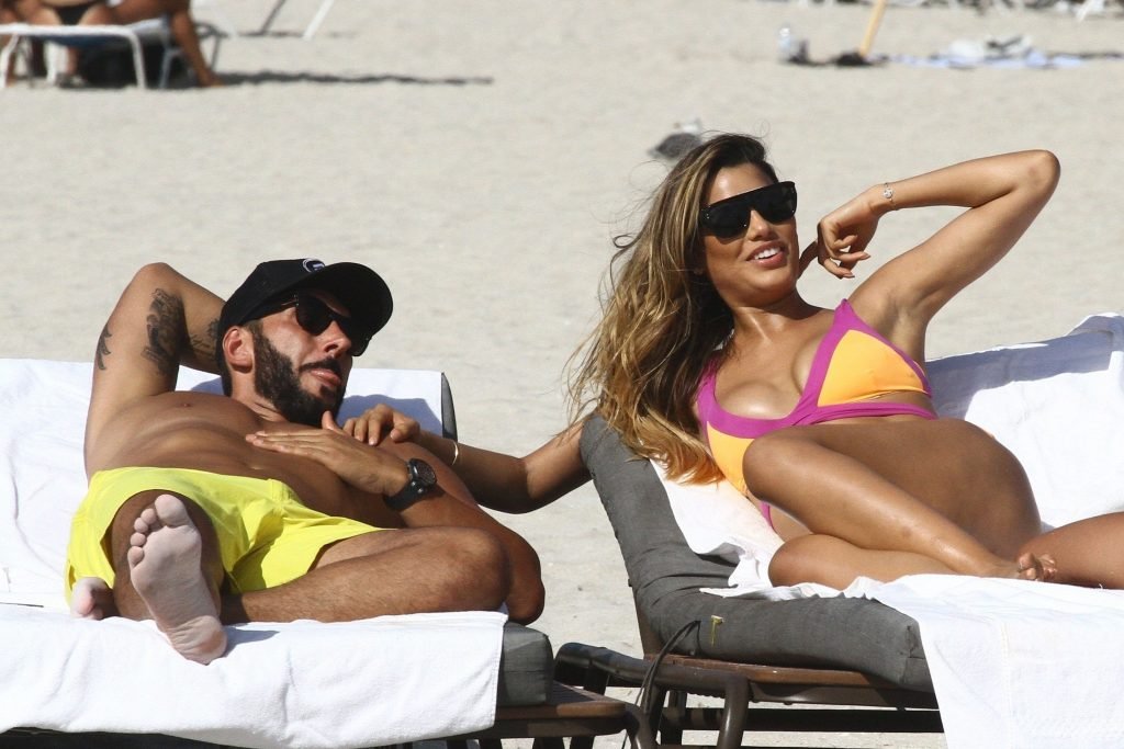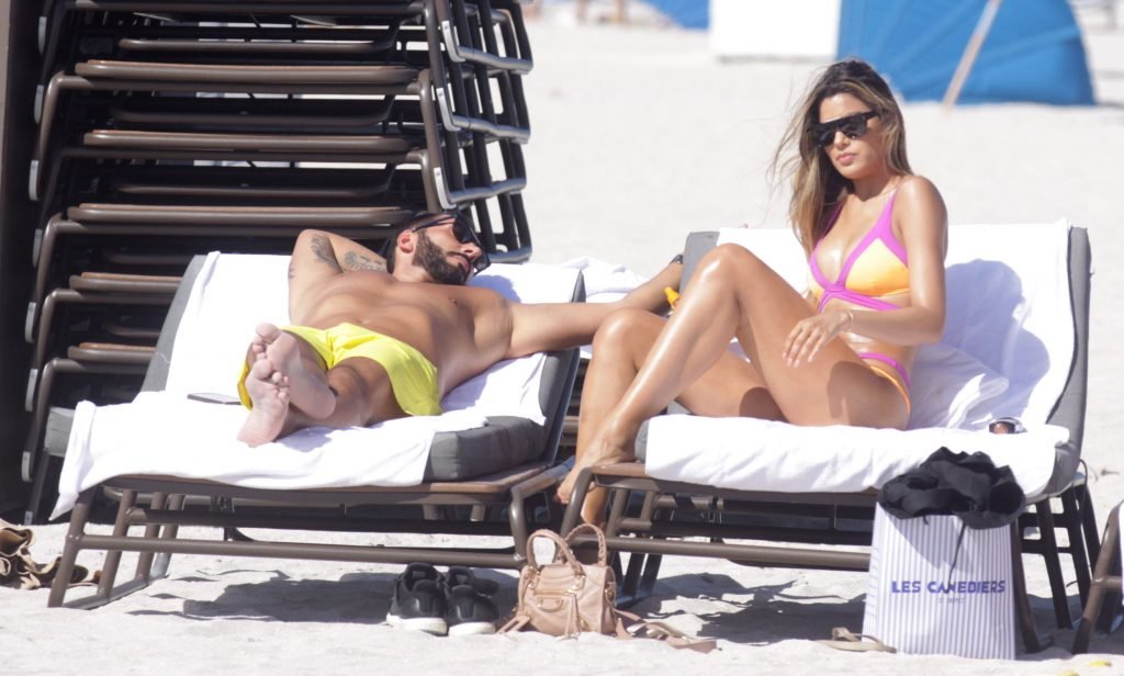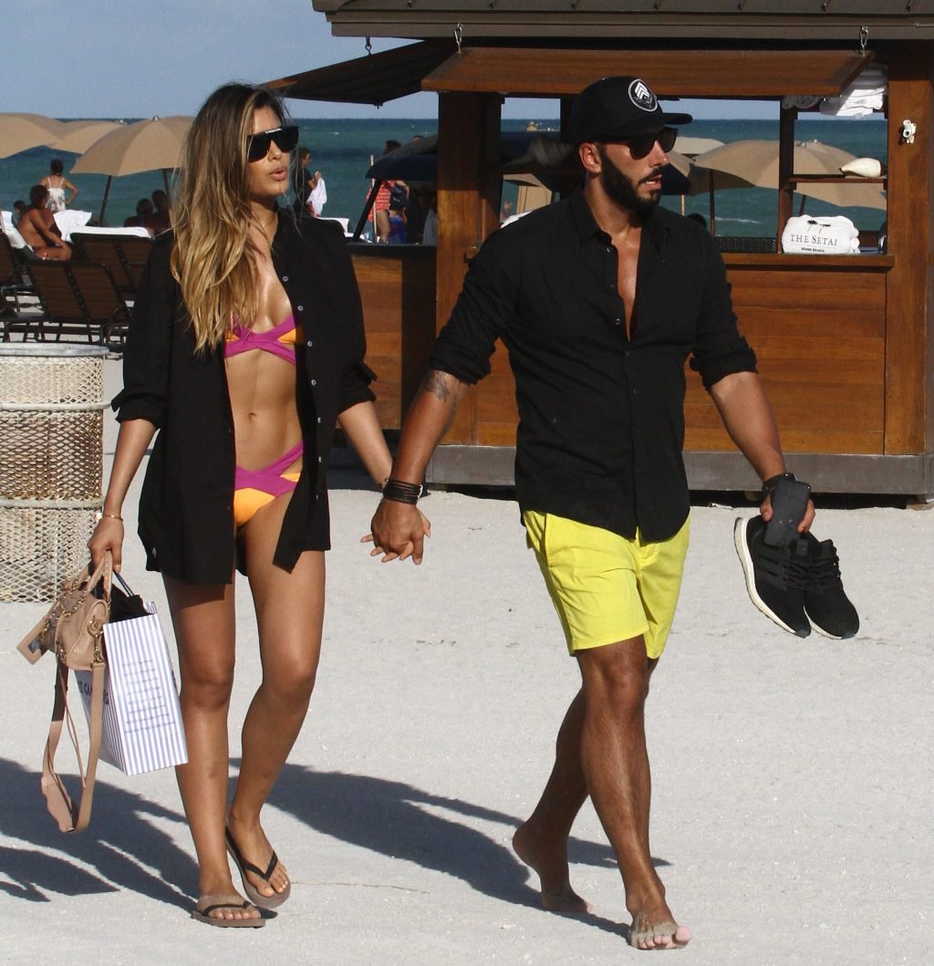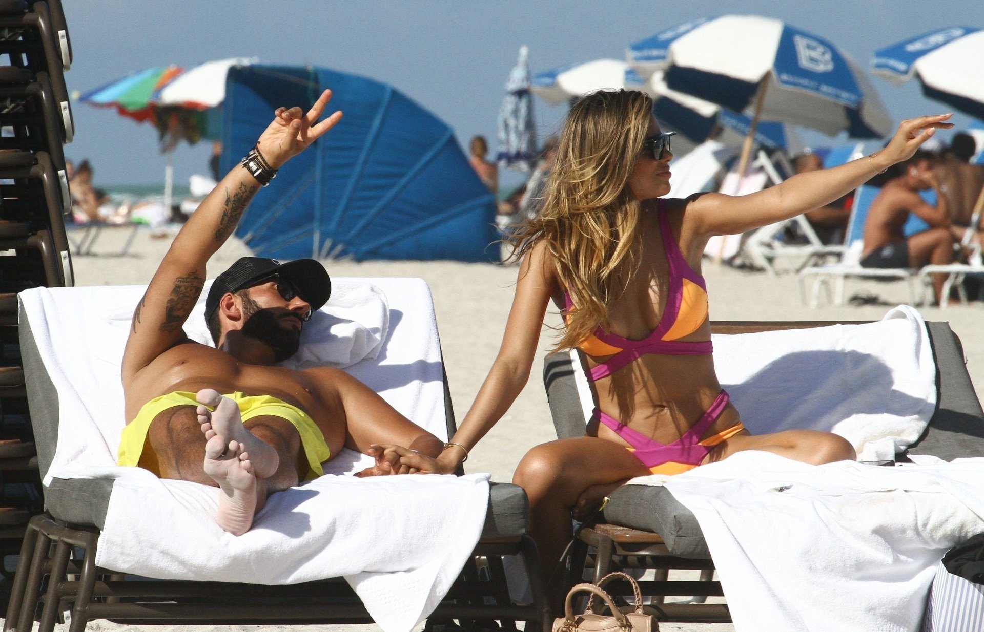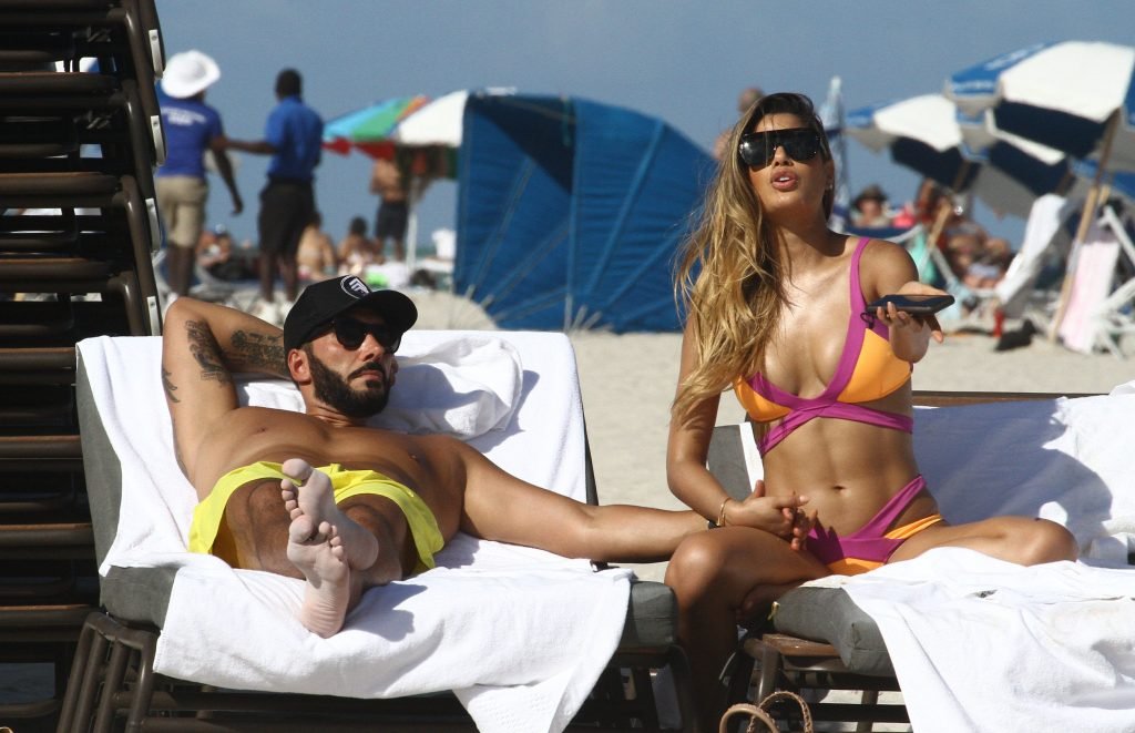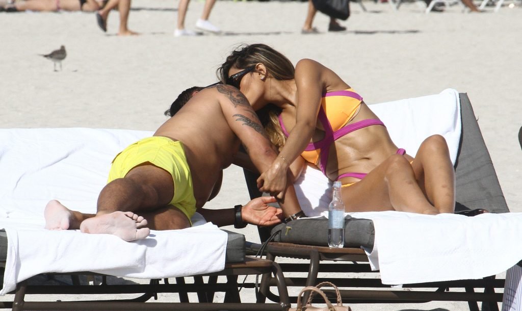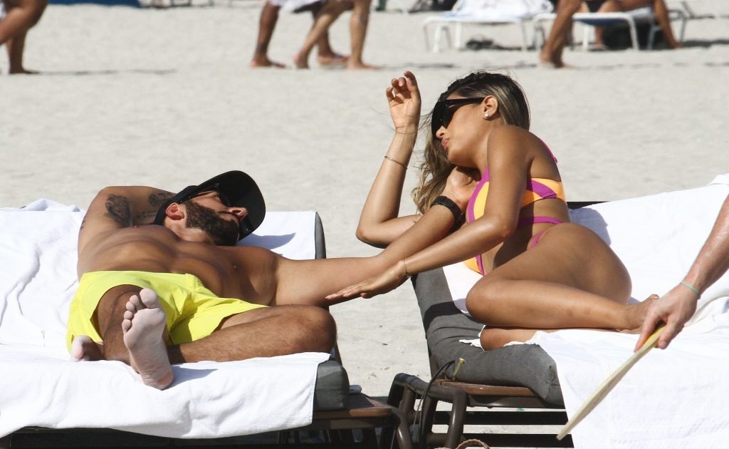 Колумбийская красавица, 24-летняя бывшая Мисс Вселенная Ариадна Гутьеррес продемонстрировала своё тело в бикини, играя с другом на пляже в Майами-Бич, 30.08.2018.