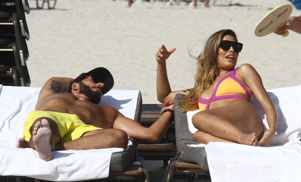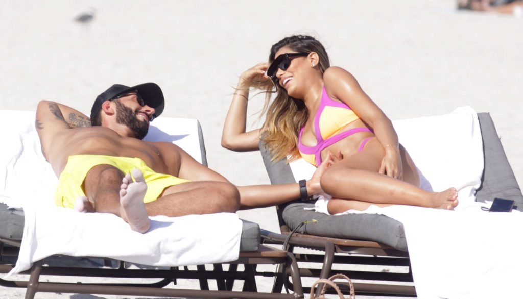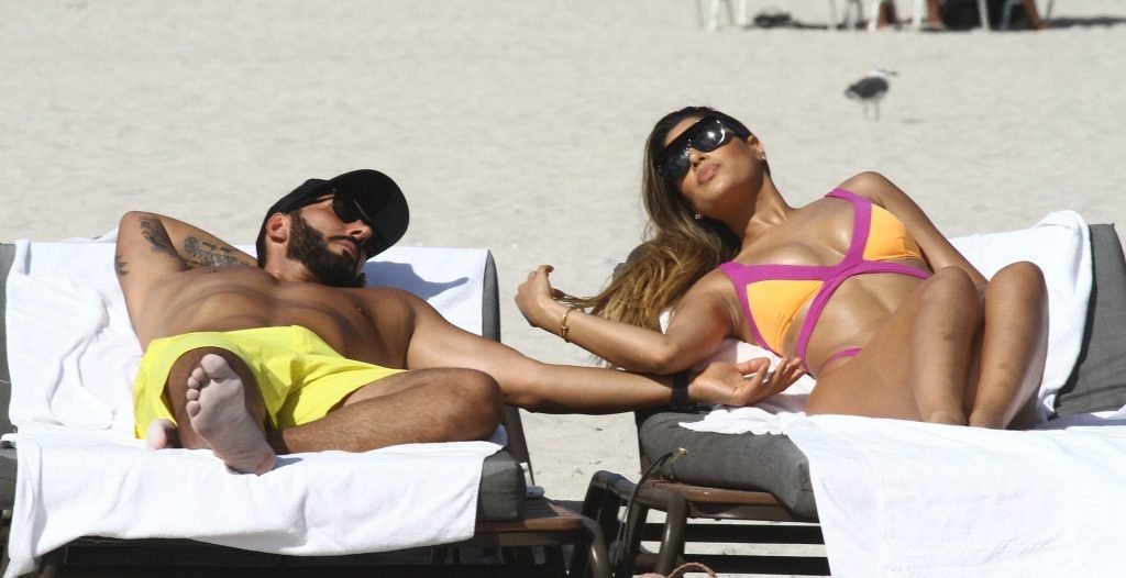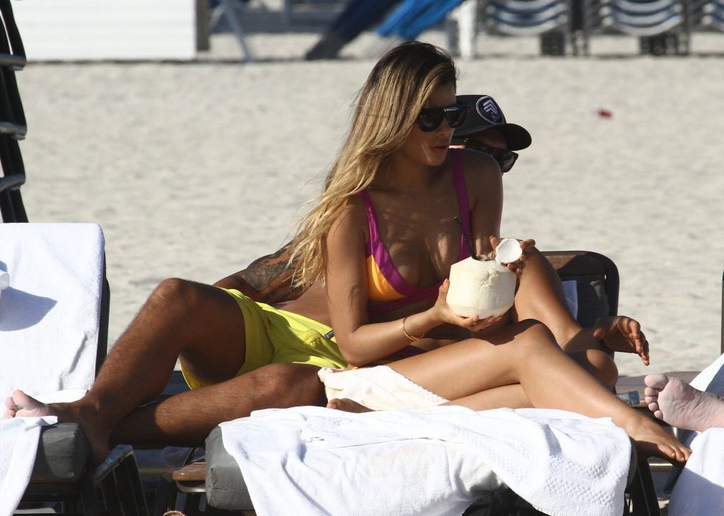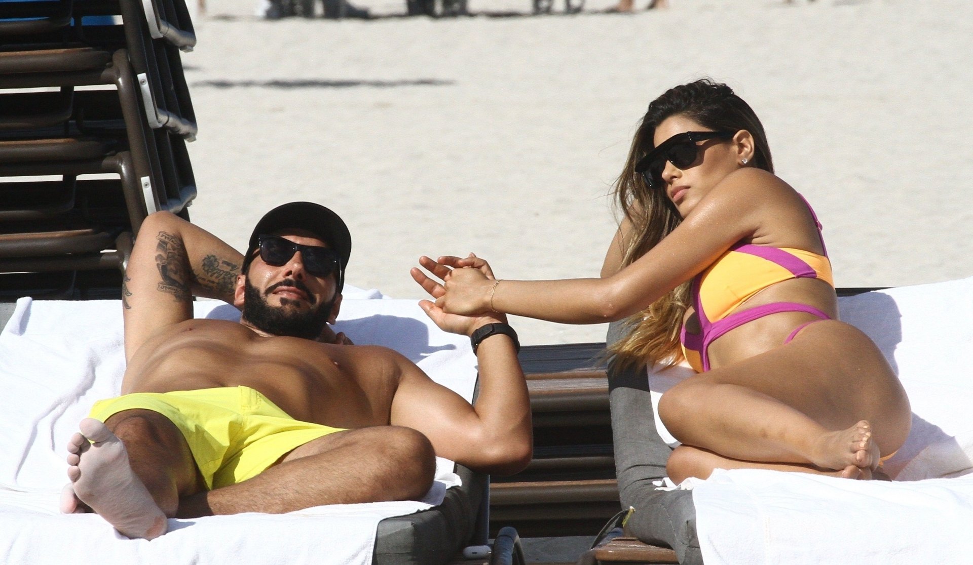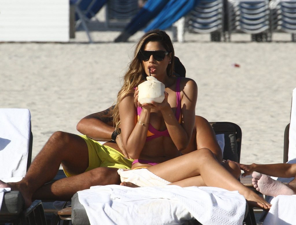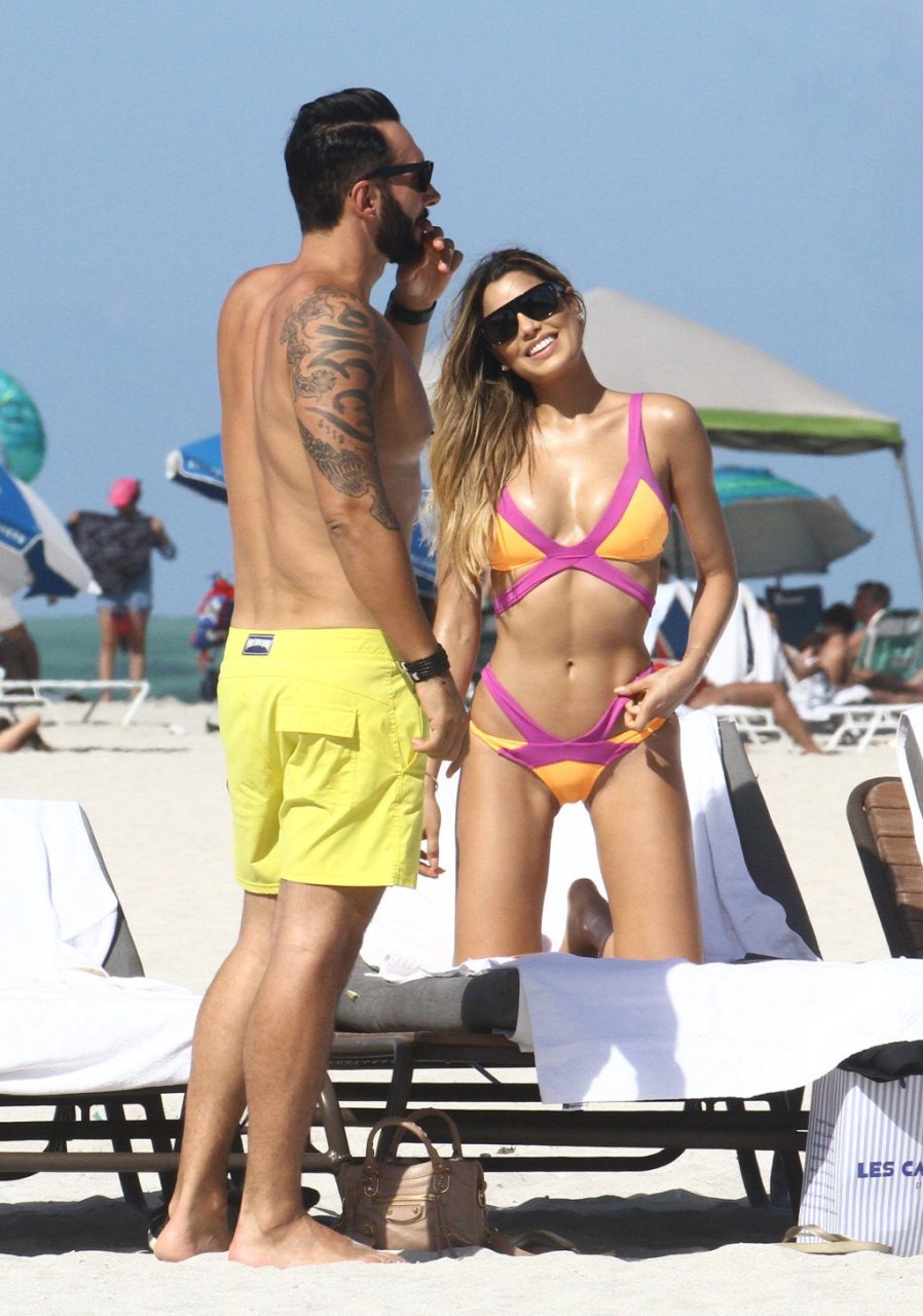 Колумбийская красавица, 24-летняя бывшая Мисс Вселенная Ариадна Гутьеррес продемонстрировала своё тело в бикини, играя с другом на пляже в Майами-Бич, 30.08.2018.