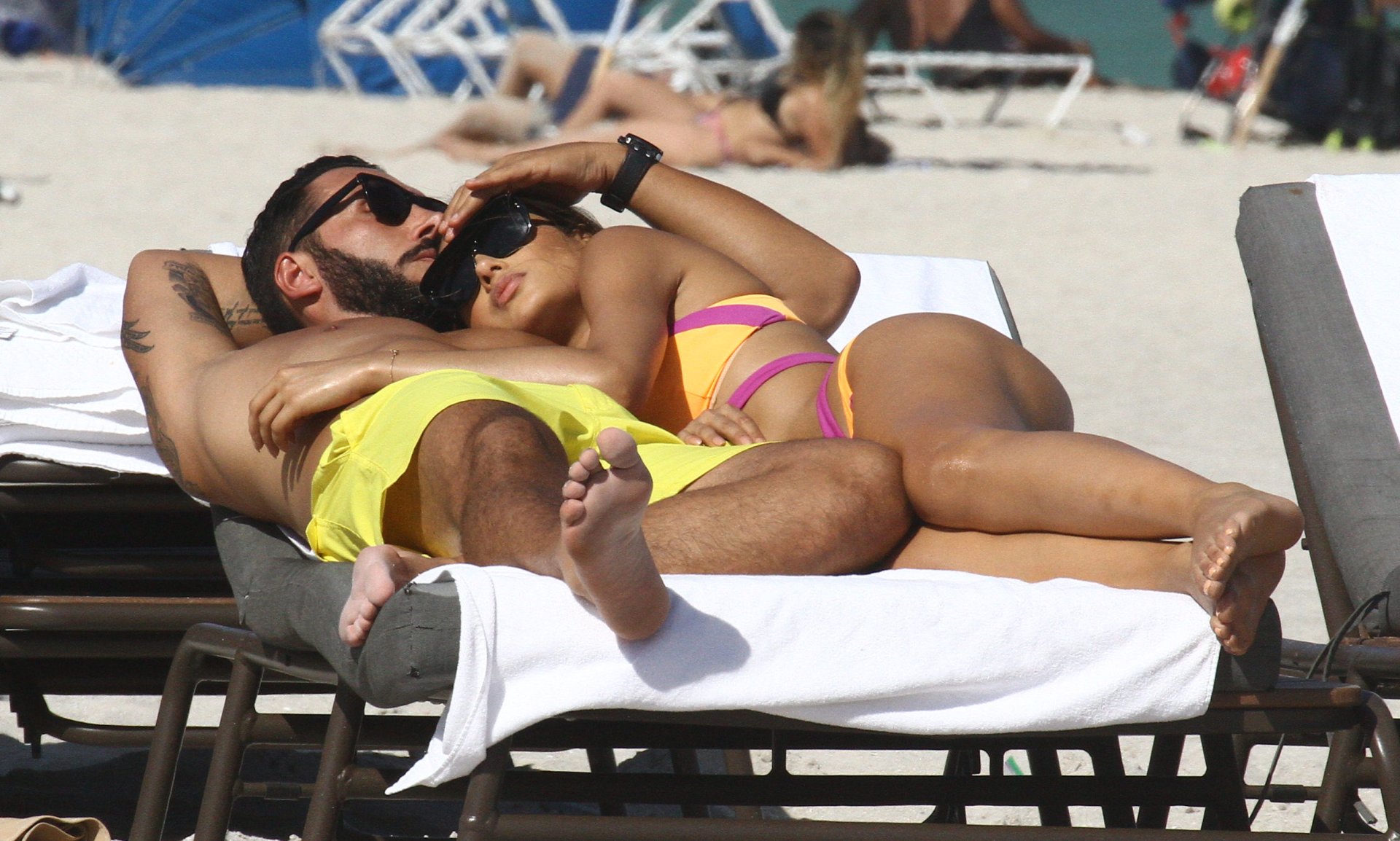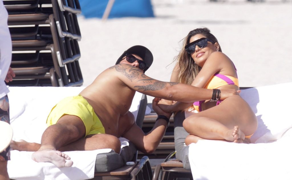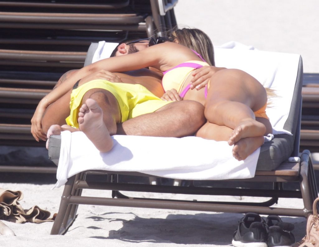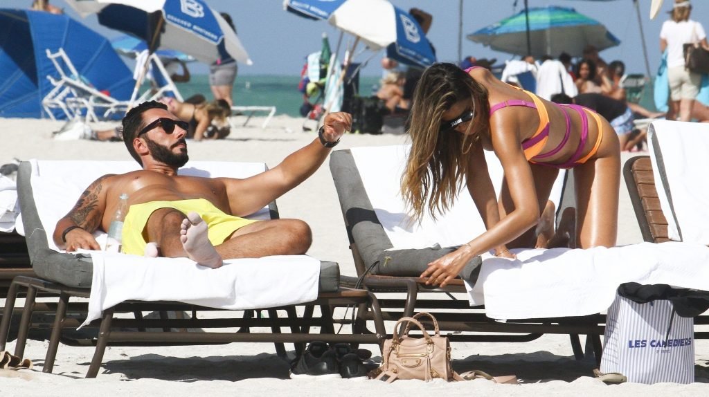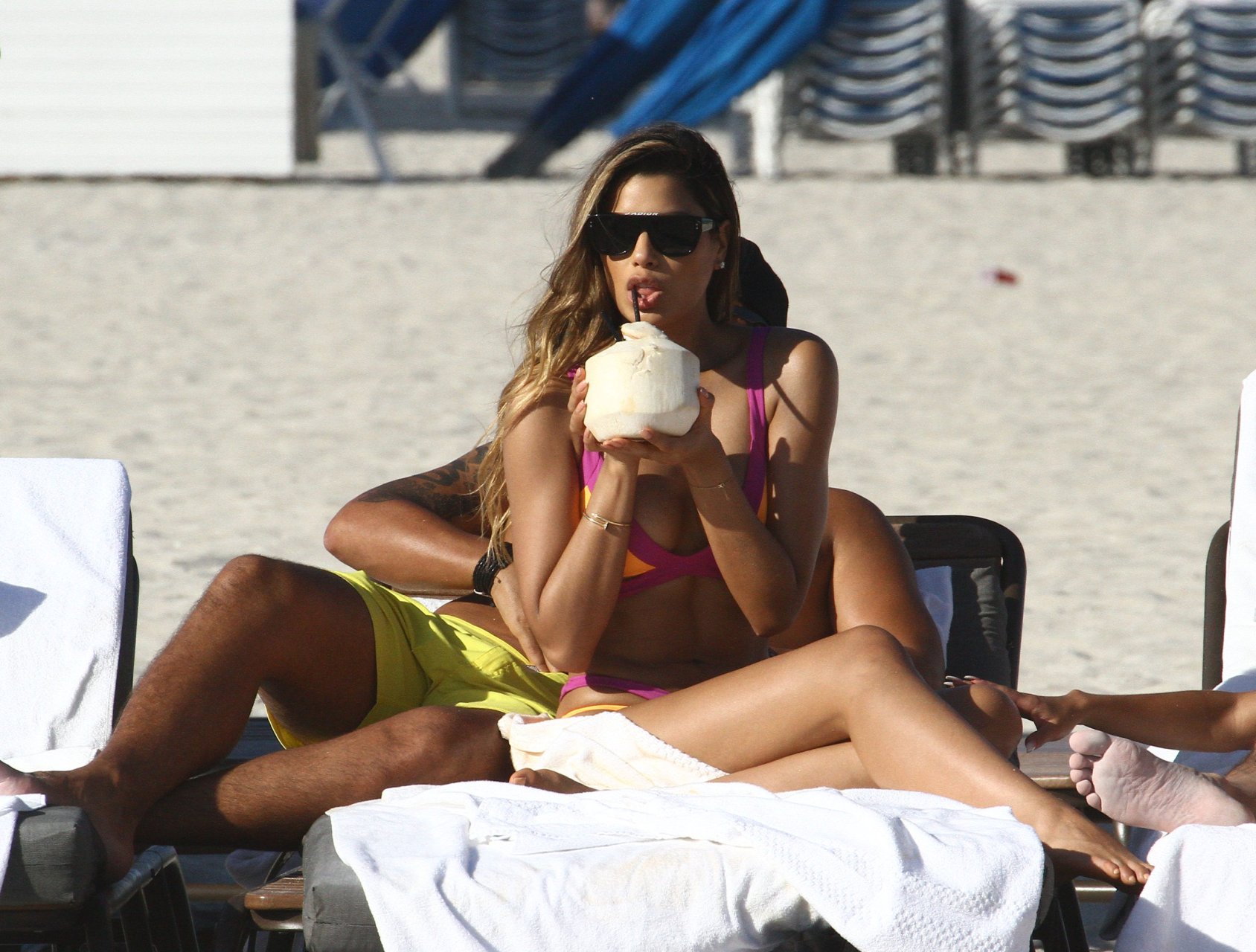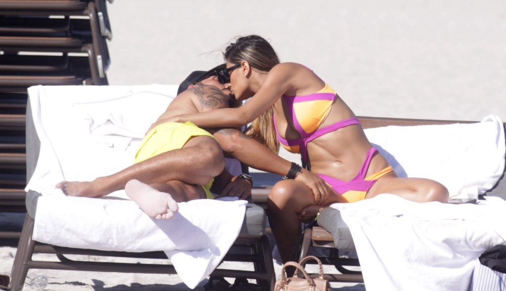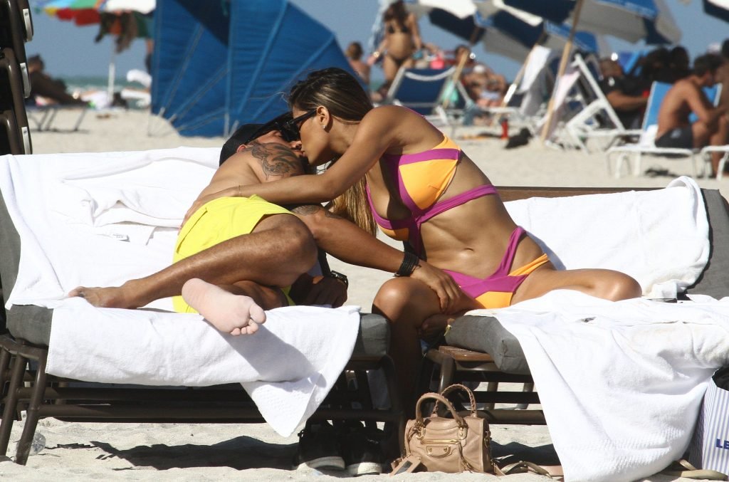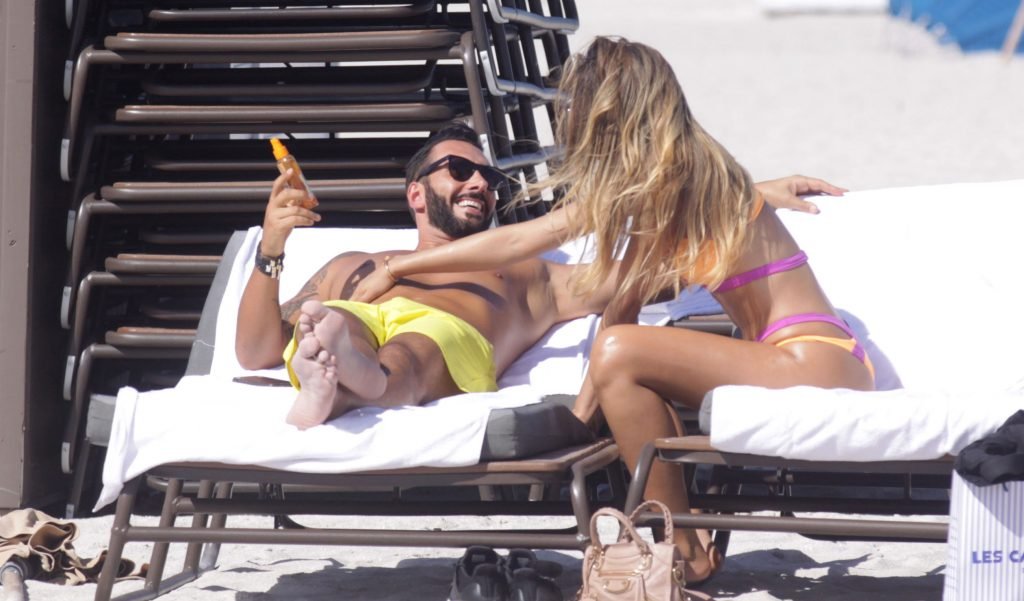 Колумбийская красавица, 24-летняя бывшая Мисс Вселенная Ариадна Гутьеррес продемонстрировала своё тело в бикини, играя с другом на пляже в Майами-Бич, 30.08.2018.
