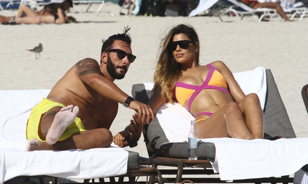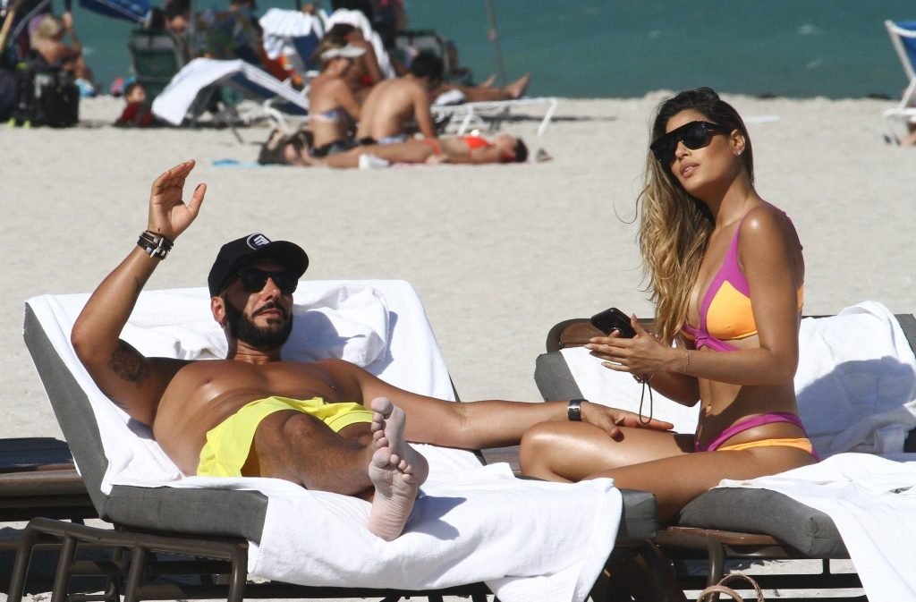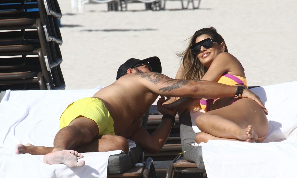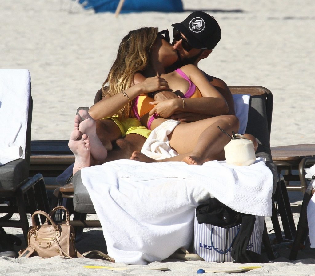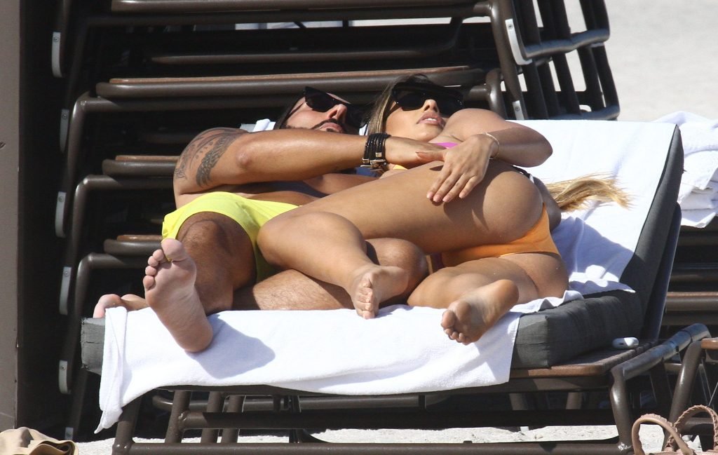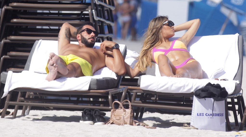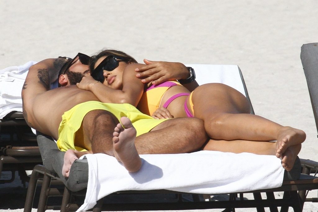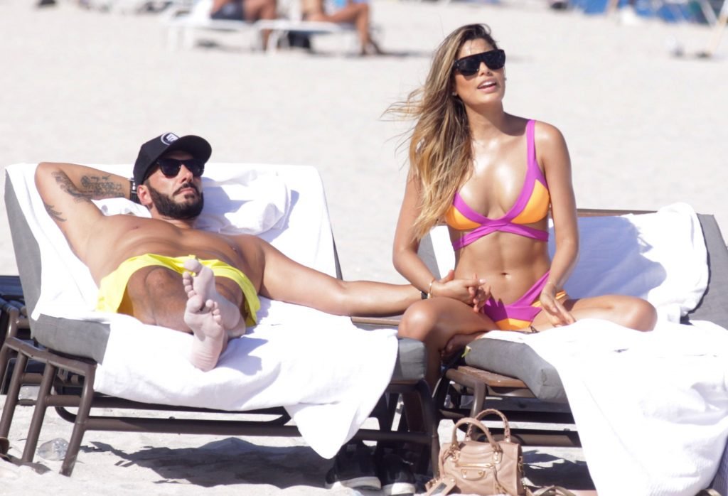 Колумбийская красавица, 24-летняя бывшая Мисс Вселенная Ариадна Гутьеррес продемонстрировала своё тело в бикини, играя с другом на пляже в Майами-Бич, 30.08.2018.