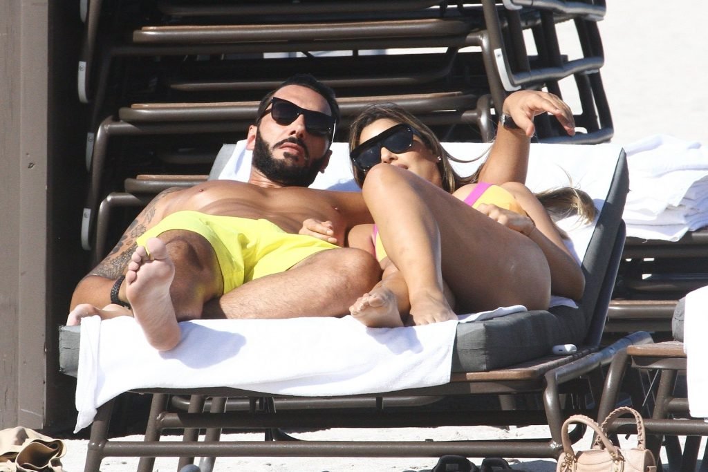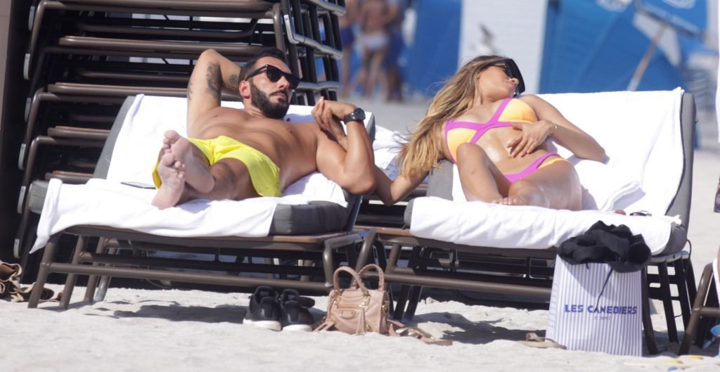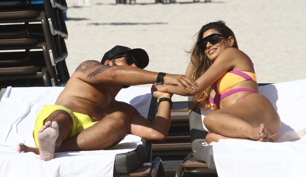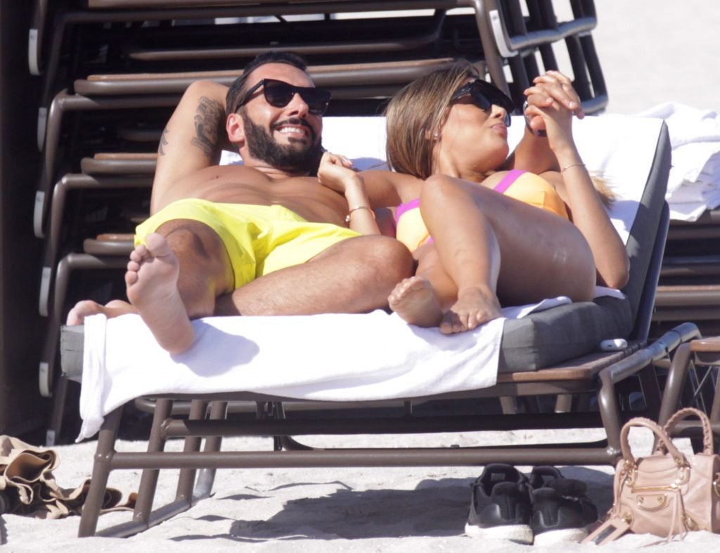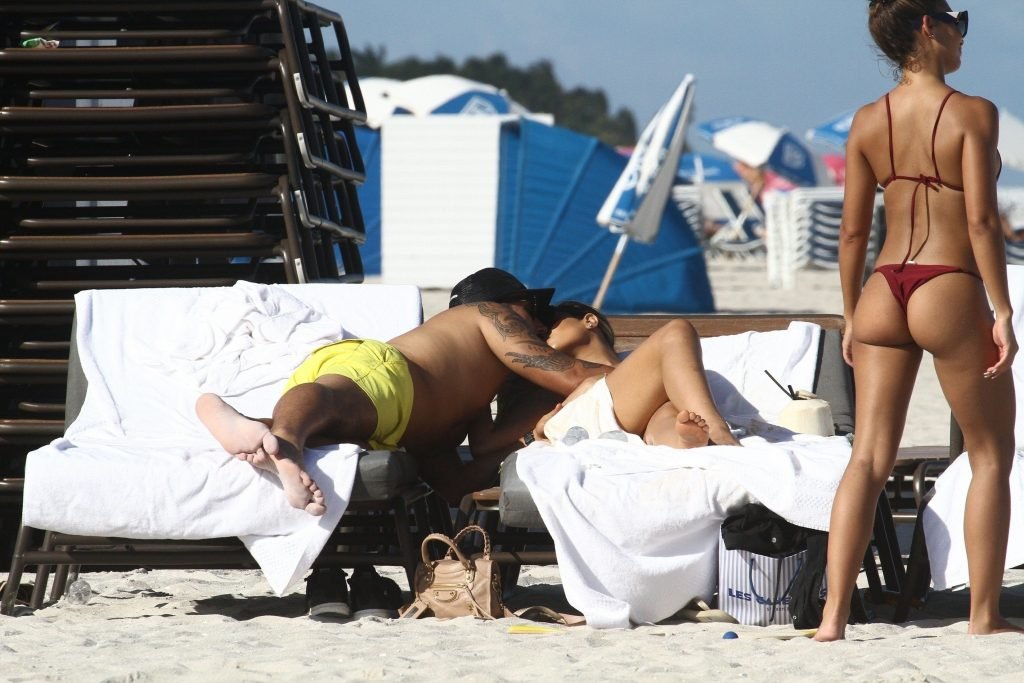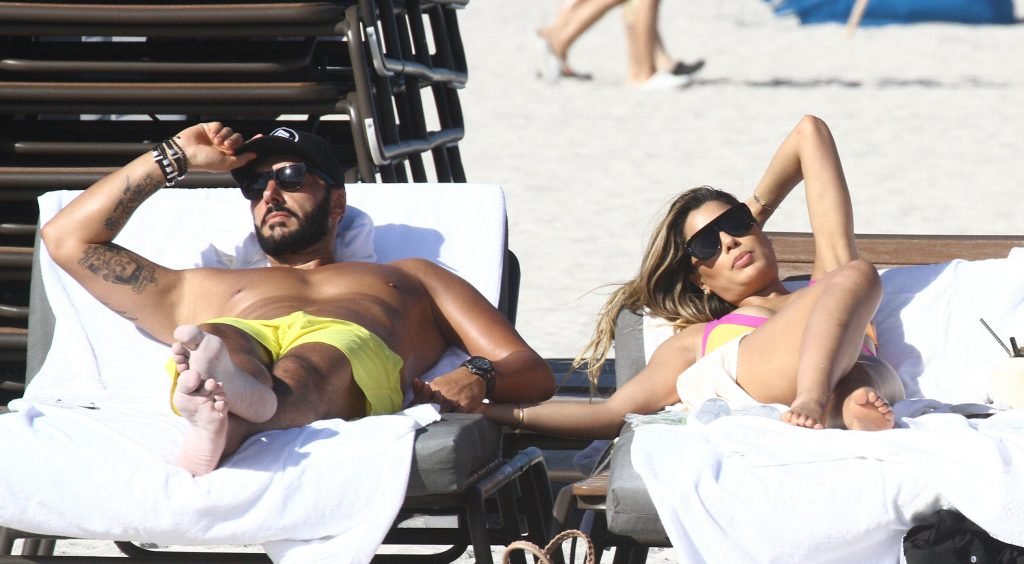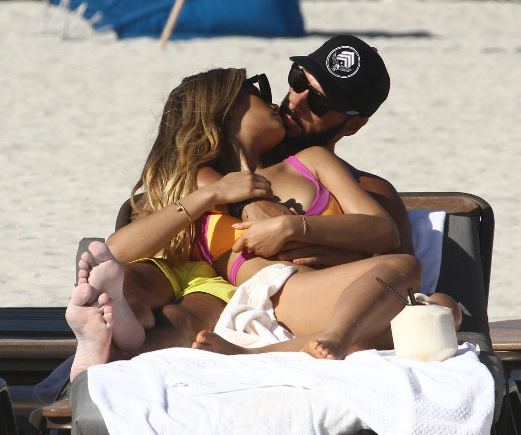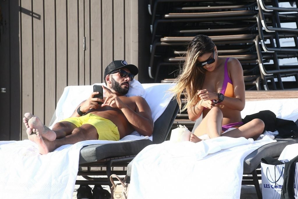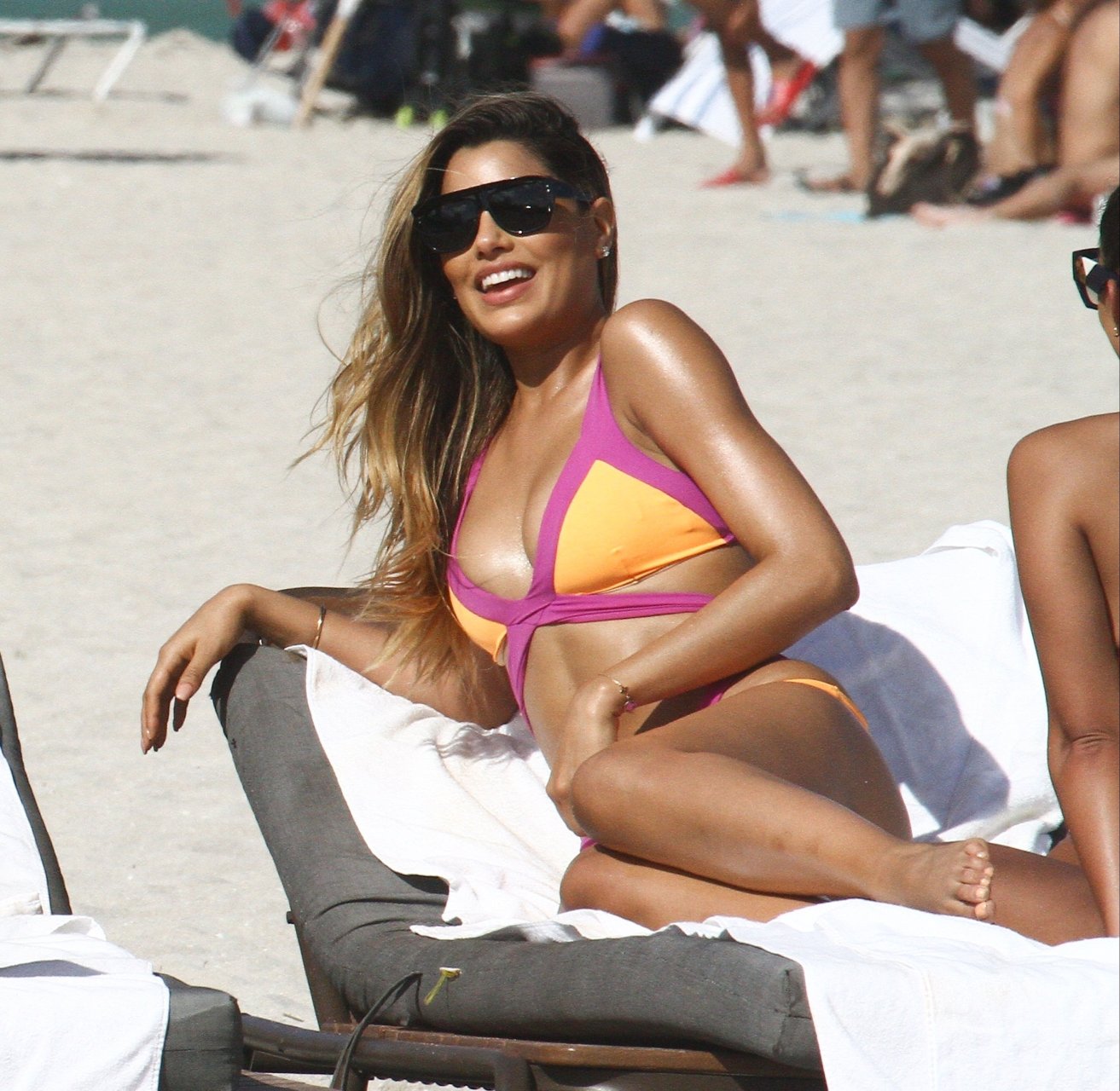 Колумбийская красавица, 24-летняя бывшая Мисс Вселенная Ариадна Гутьеррес продемонстрировала своё тело в бикини, играя с другом на пляже в Майами-Бич, 30.08.2018.