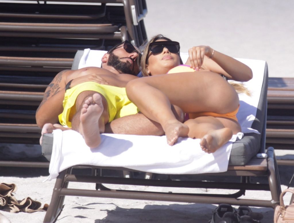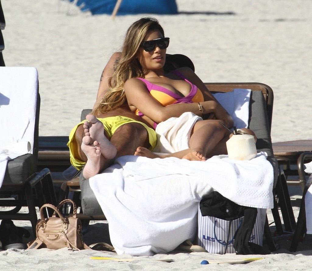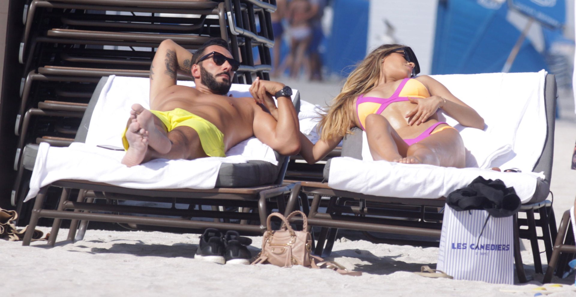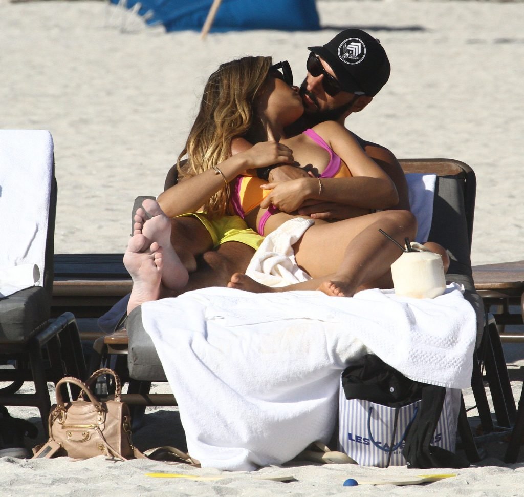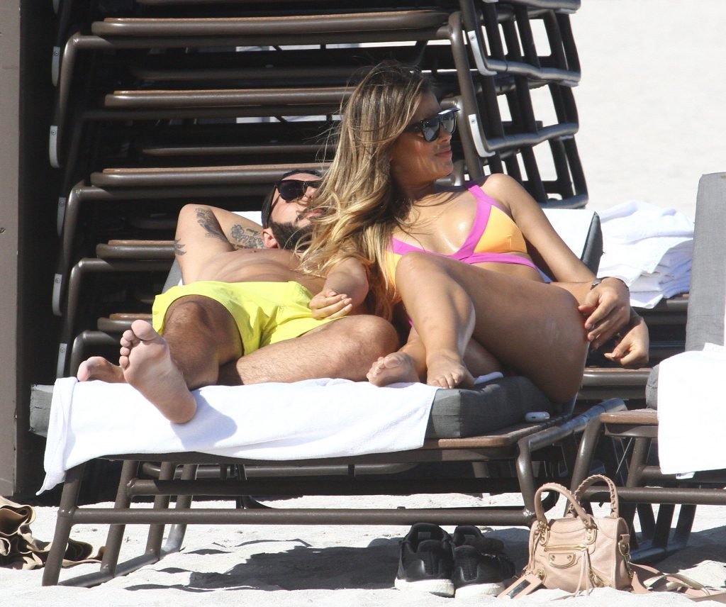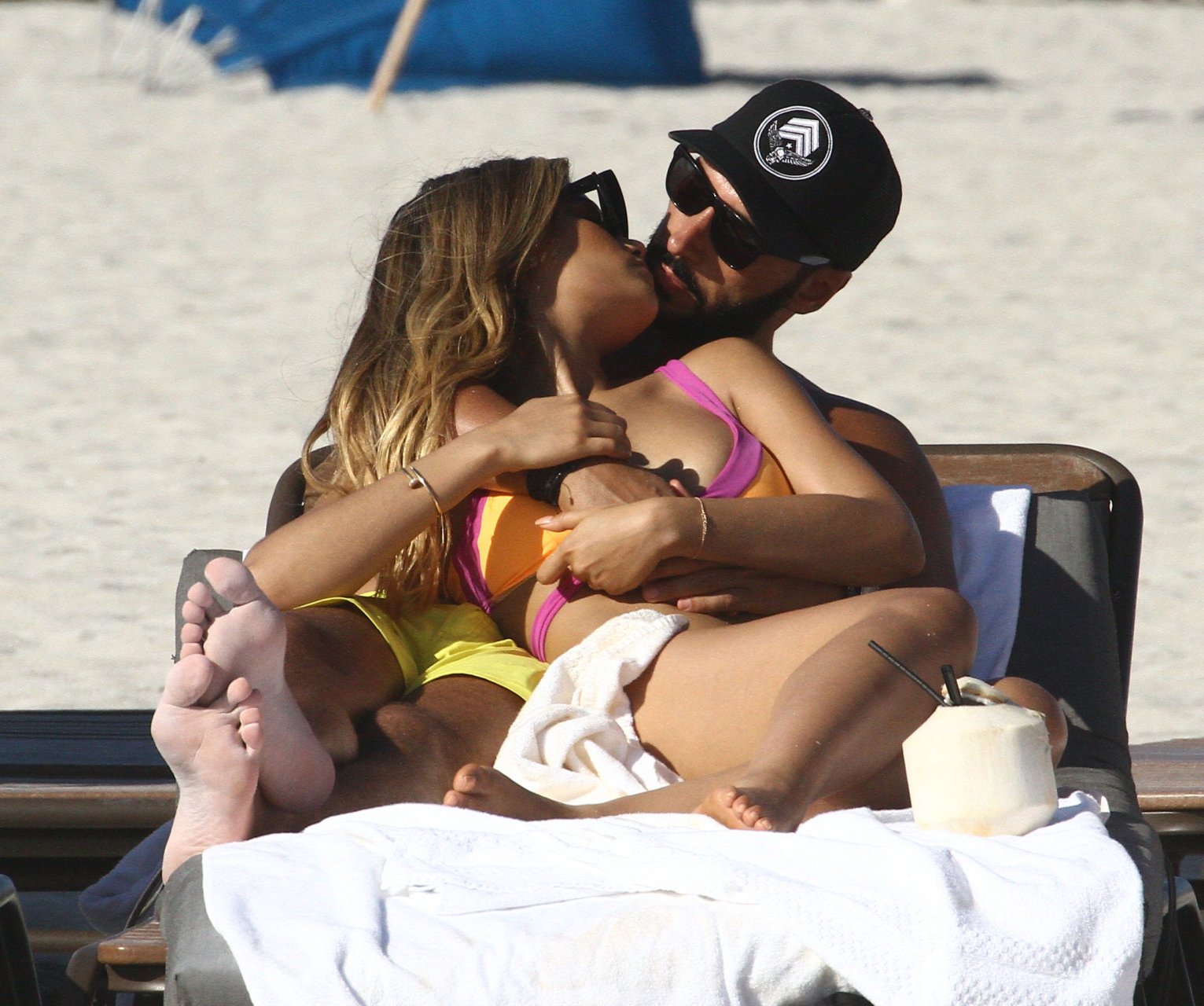 Колумбийская красавица, 24-летняя бывшая Мисс Вселенная Ариадна Гутьеррес продемонстрировала своё тело в бикини, играя с другом на пляже в Майами-Бич, 30.08.2018.