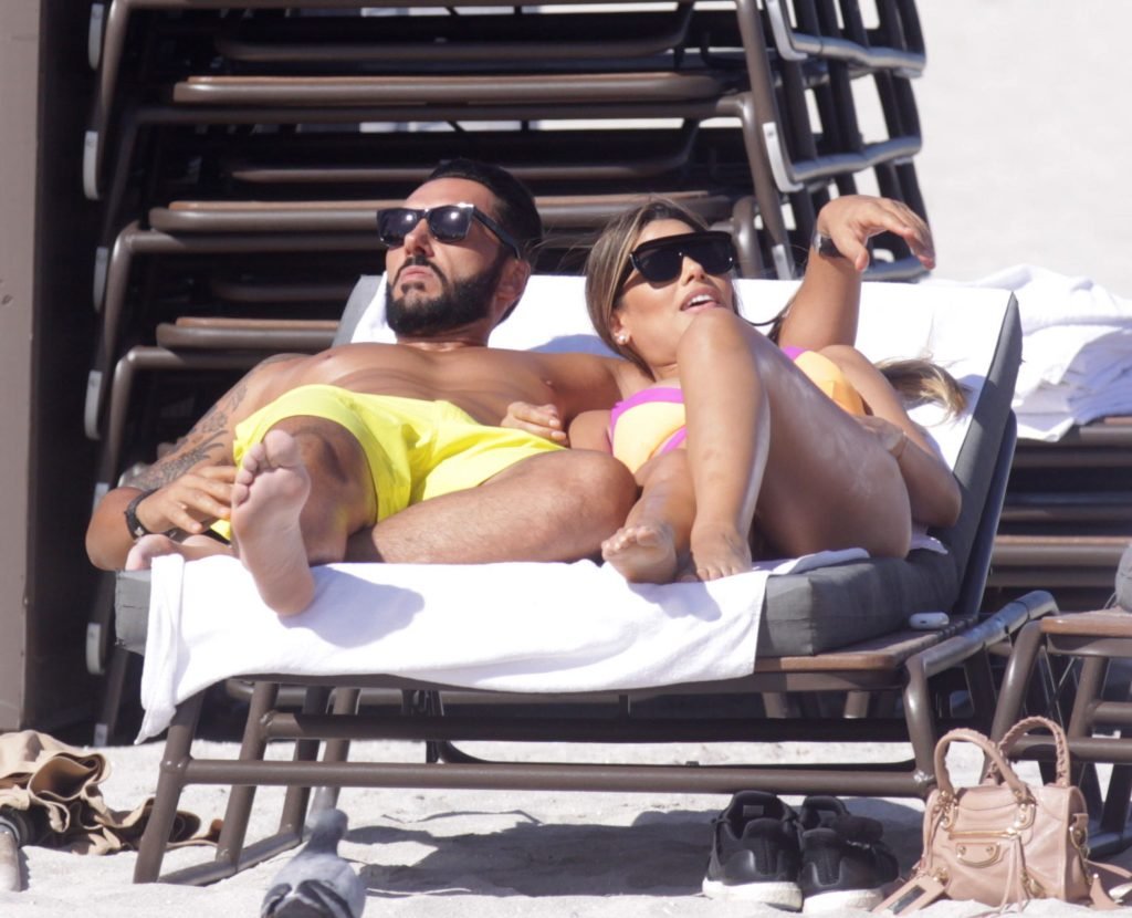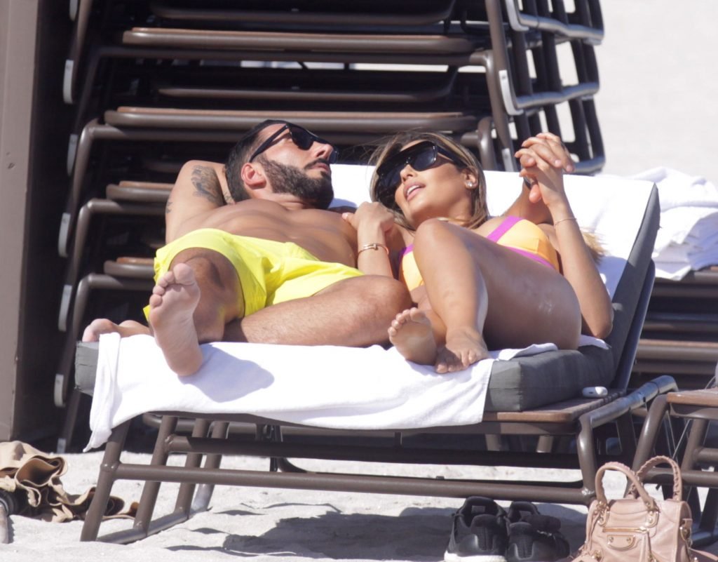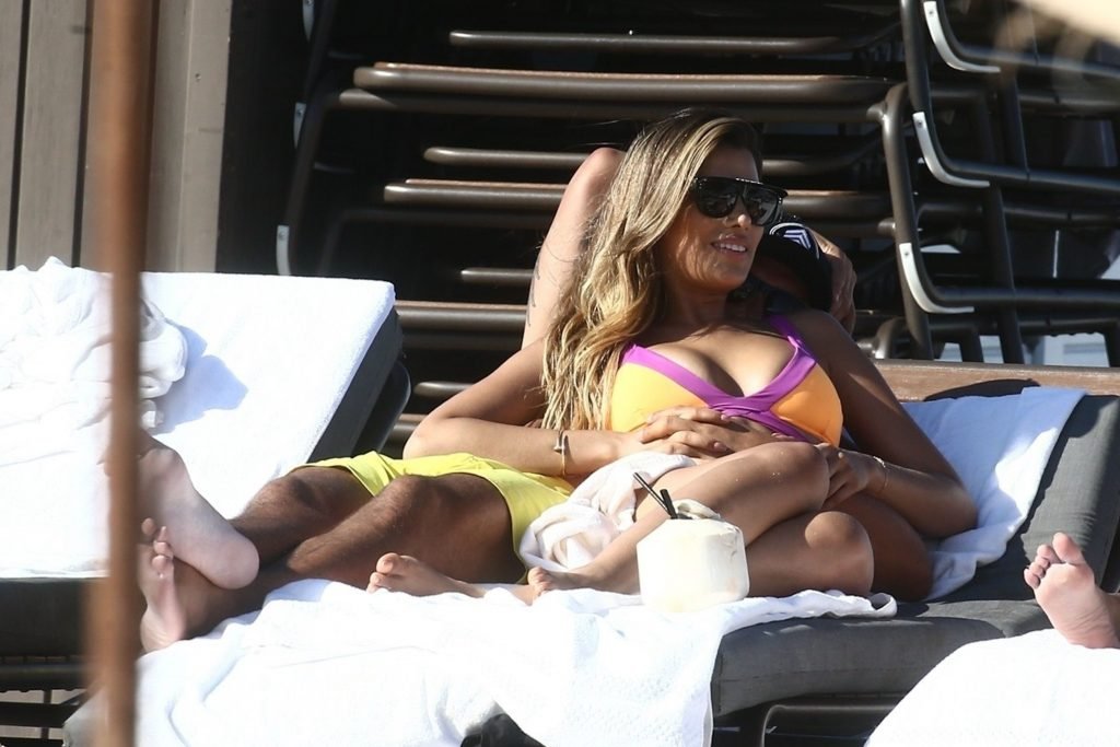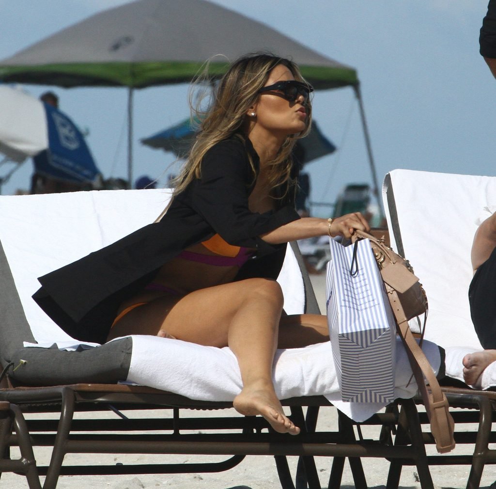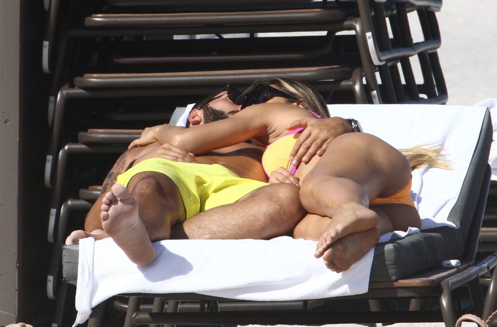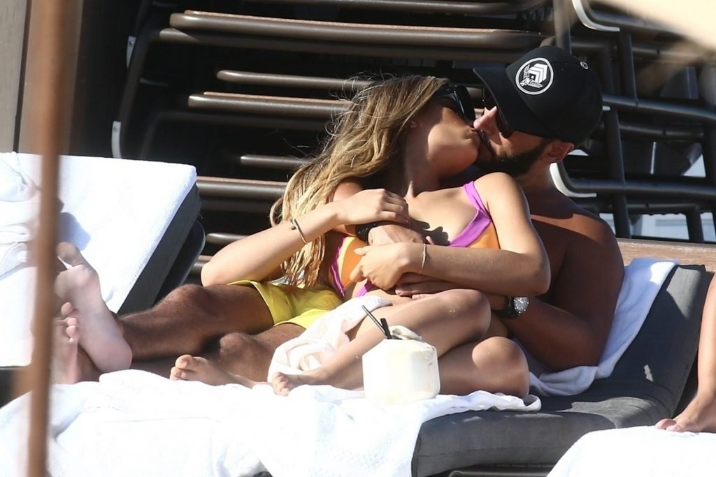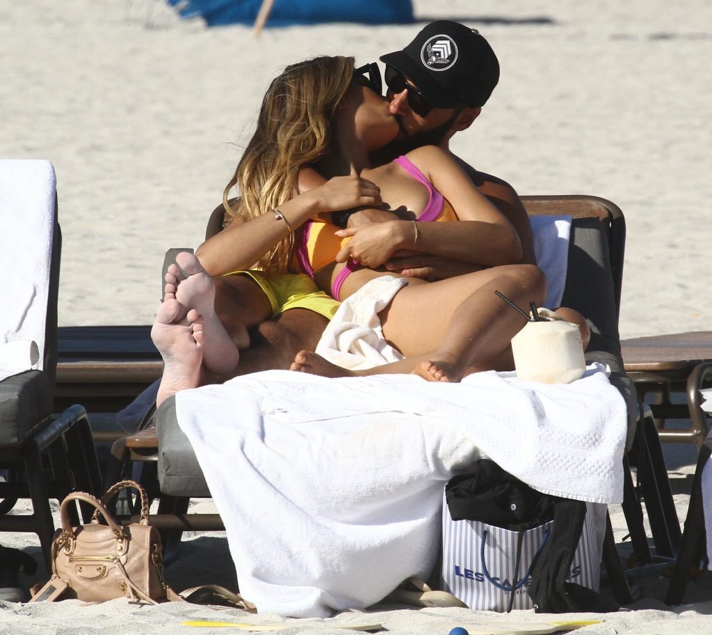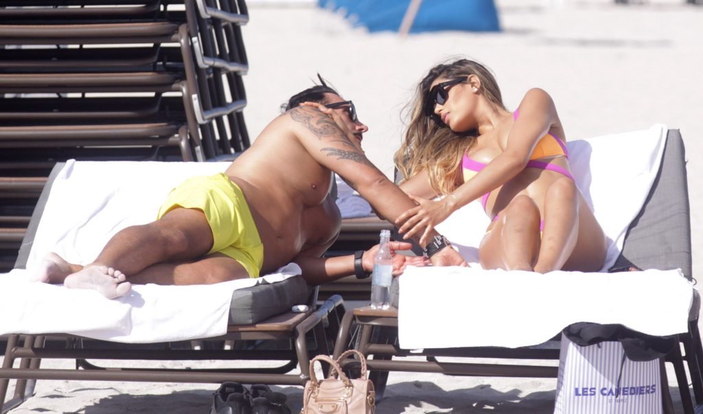 Колумбийская красавица, 24-летняя бывшая Мисс Вселенная Ариадна Гутьеррес продемонстрировала своё тело в бикини, играя с другом на пляже в Майами-Бич, 30.08.2018.