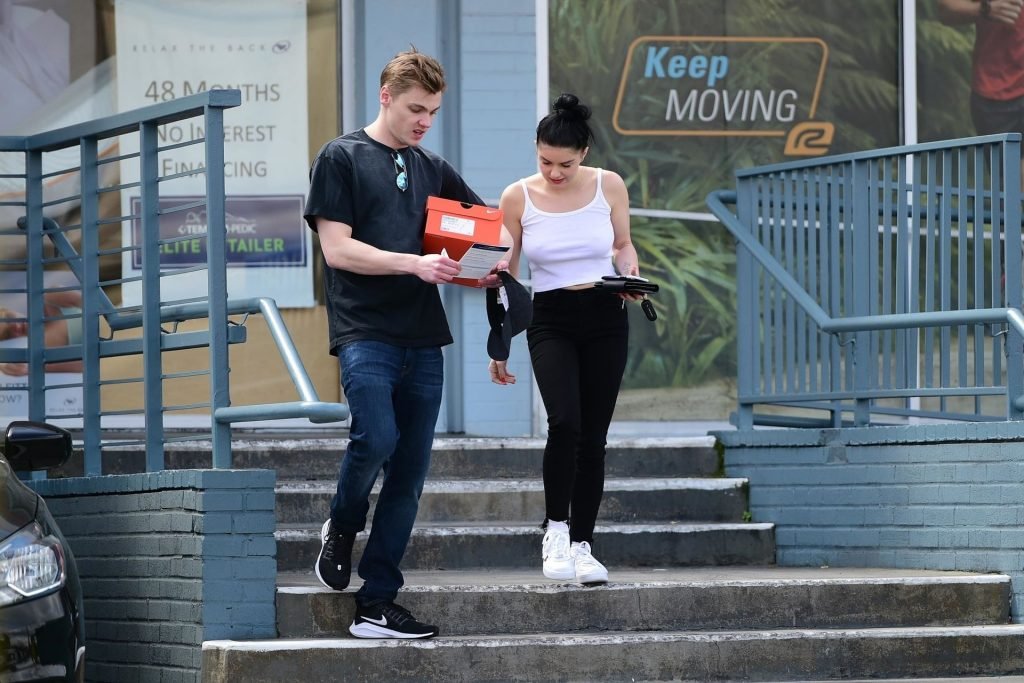 Ариэль Винтер решила не надевать бюстгальтер в пятницу вместе со своим мужчиной во время похода за обувью в Студио-Сити, Калифорния, 05.04.2019.