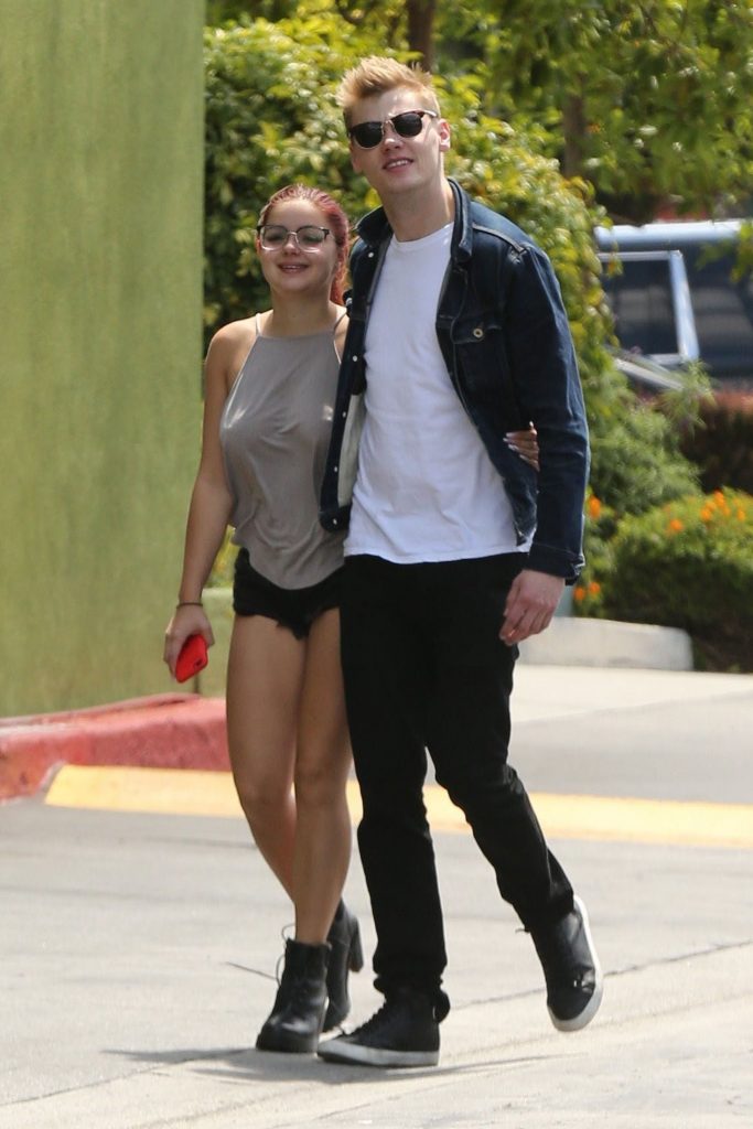 Ариэль Винтер без бюстгальтера со своим мужчиной в Шерман Оукс, 11.06.2017. Ариэль Винтер — американская актриса (София Первая, ТВ – 2017), певица, модель из Лос-Анджелеса. Возраст – 19.