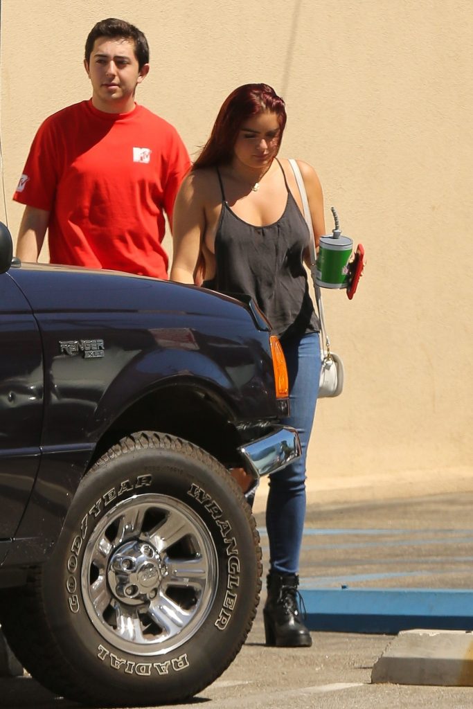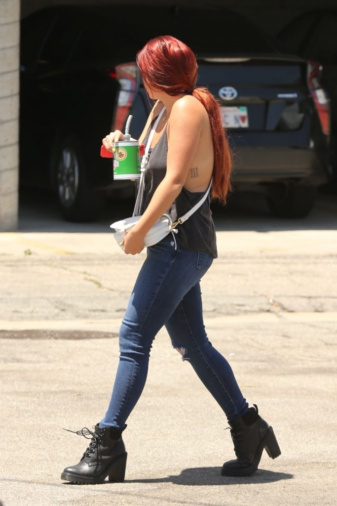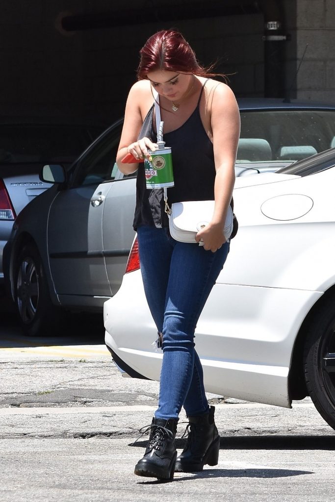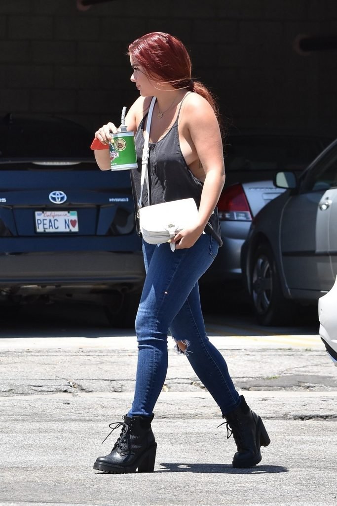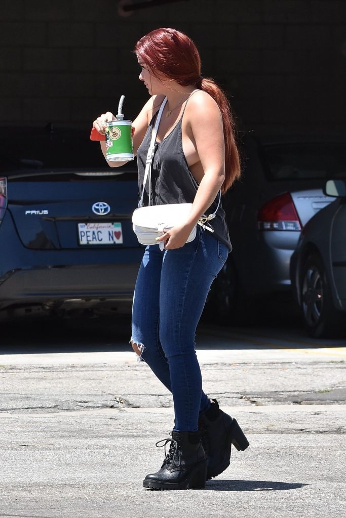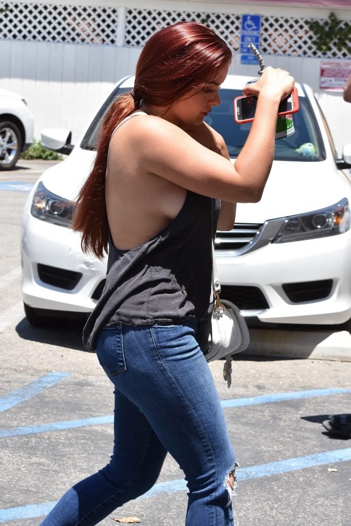 Ariel Winter выбирает отсутствие бюстгальтера, демонстрируя значительную боковую часть груди, направляясь в студию в Лос-Анджелесе, 20.07.2017. Ариэль Винтер — актриса телевидения, певица и модель из Лос-Анджелеса. Возраст – 19.