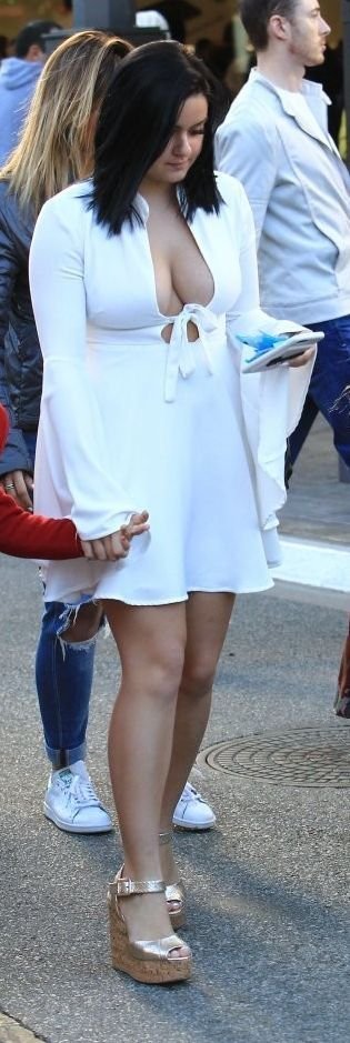 Ariel Winter носит сексуальное белое платье с глубоким декольте Санте в The Grove в Лос-Анджелесе, 18.12.16. Ариэль Уинтер Уоркман — актриса (Dog Years (2017)), певица, модель из Лос-Анджелеса (США). Возраст: 18 (28 января 1998).