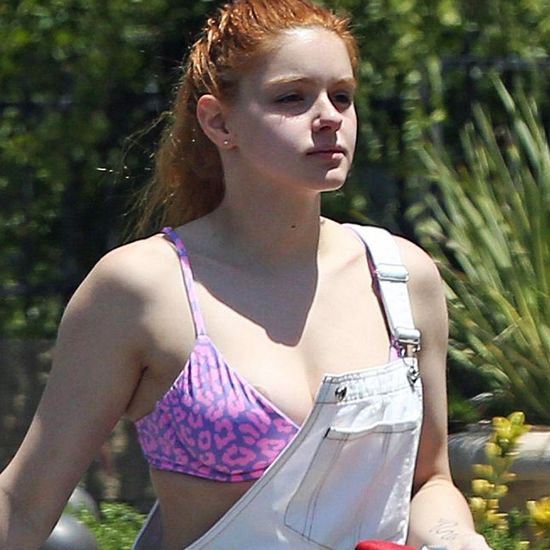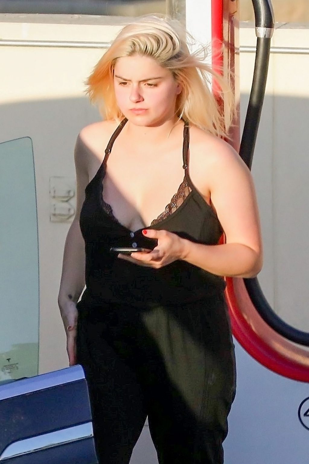 We’re sure you’ll be interested in Ariel Winter areola peek that happened while she was shopping! This hoe loves to visit supermarkets, or these are only public places where she’s going with no bodyguards! Today we have Ariel wearing one strap overalls and a pink bikini bra, from which we saw her nipple peeking to say hi to paparazzi! Winter was buying alcohol for Independence Day; she was with her bae Levi Meaden!