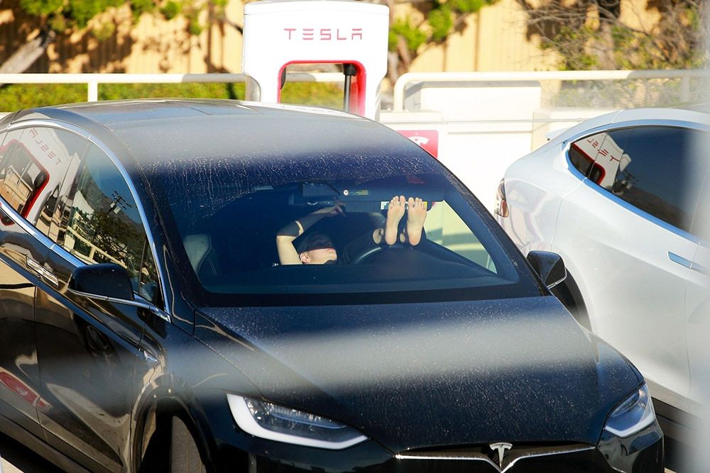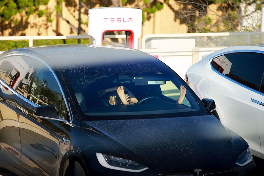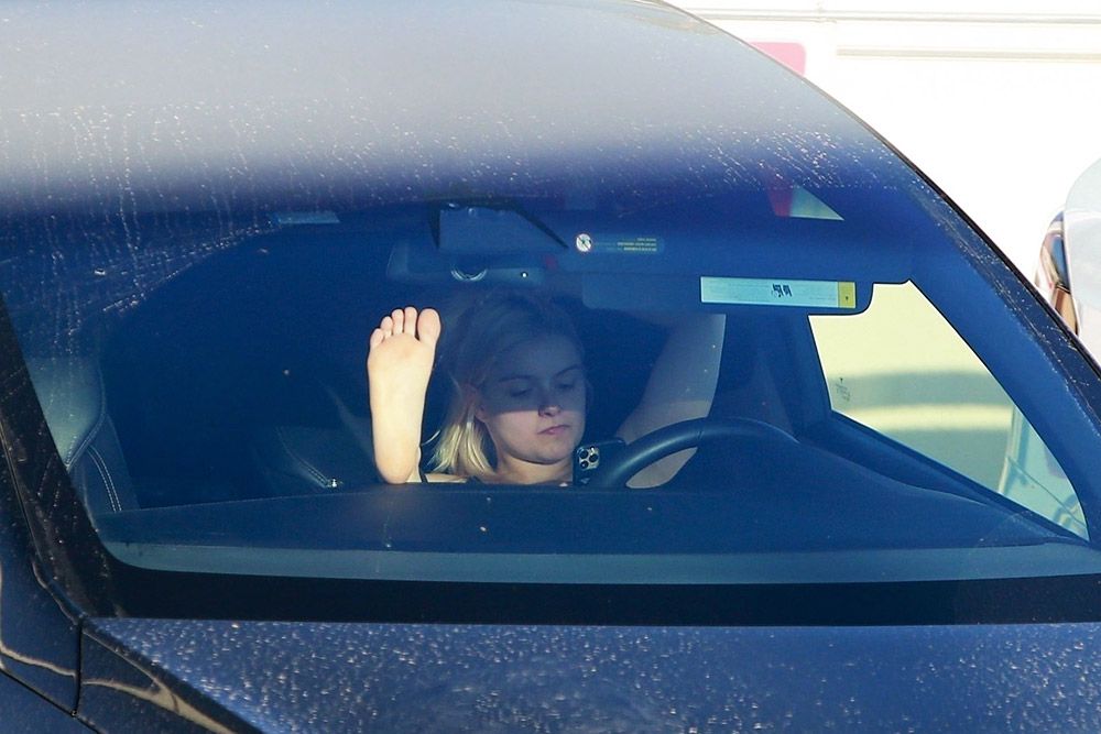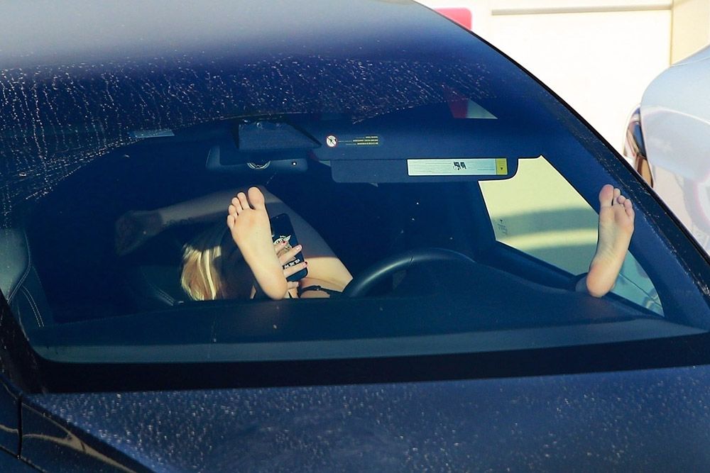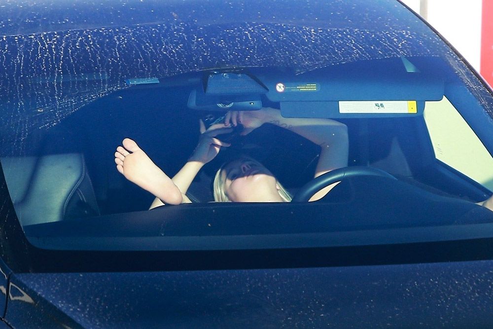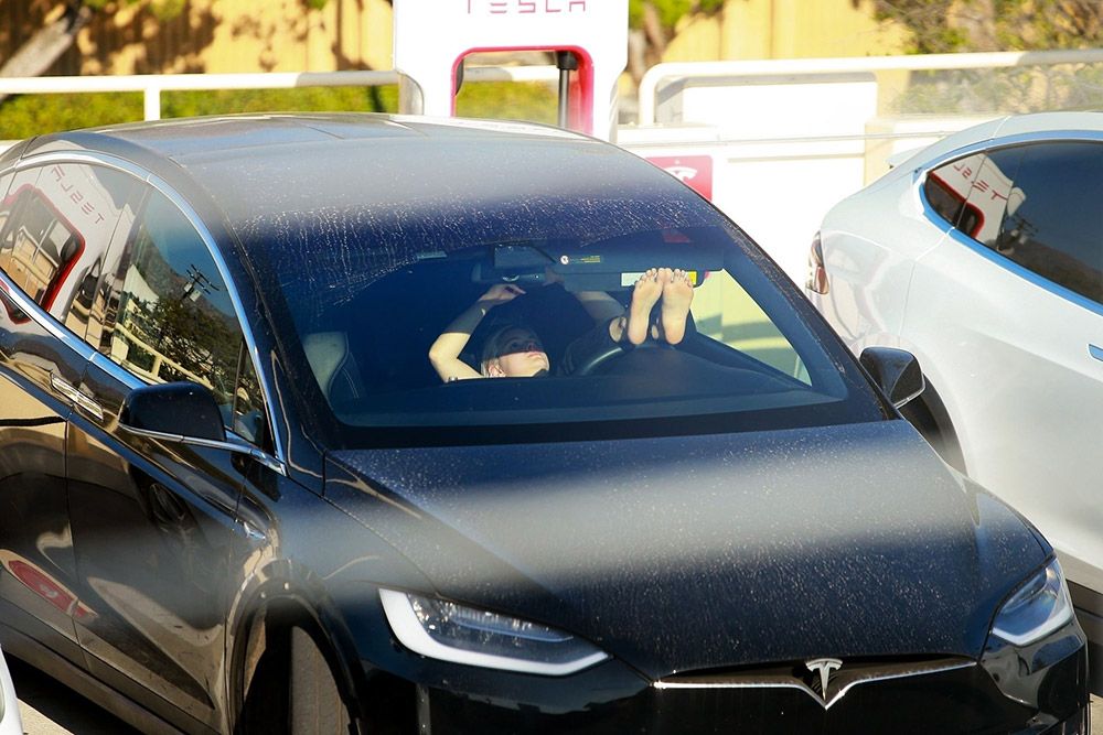 A makeup-free Ariel Winter kicks her feet up while waiting for her car to charge at the Tesla Charging Station in Burbank. The pretty babe spreads her legs for us and plays with her wet pussy alone.