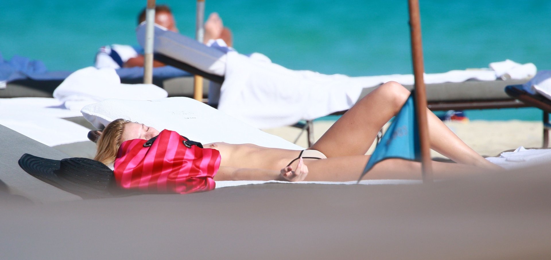 Ashlen Alexandra загорает топлесс на пляже вместе с Элейн Грегори в Майами-Бич, 09.02.2017. Ashlen Alexandra — американская модель.