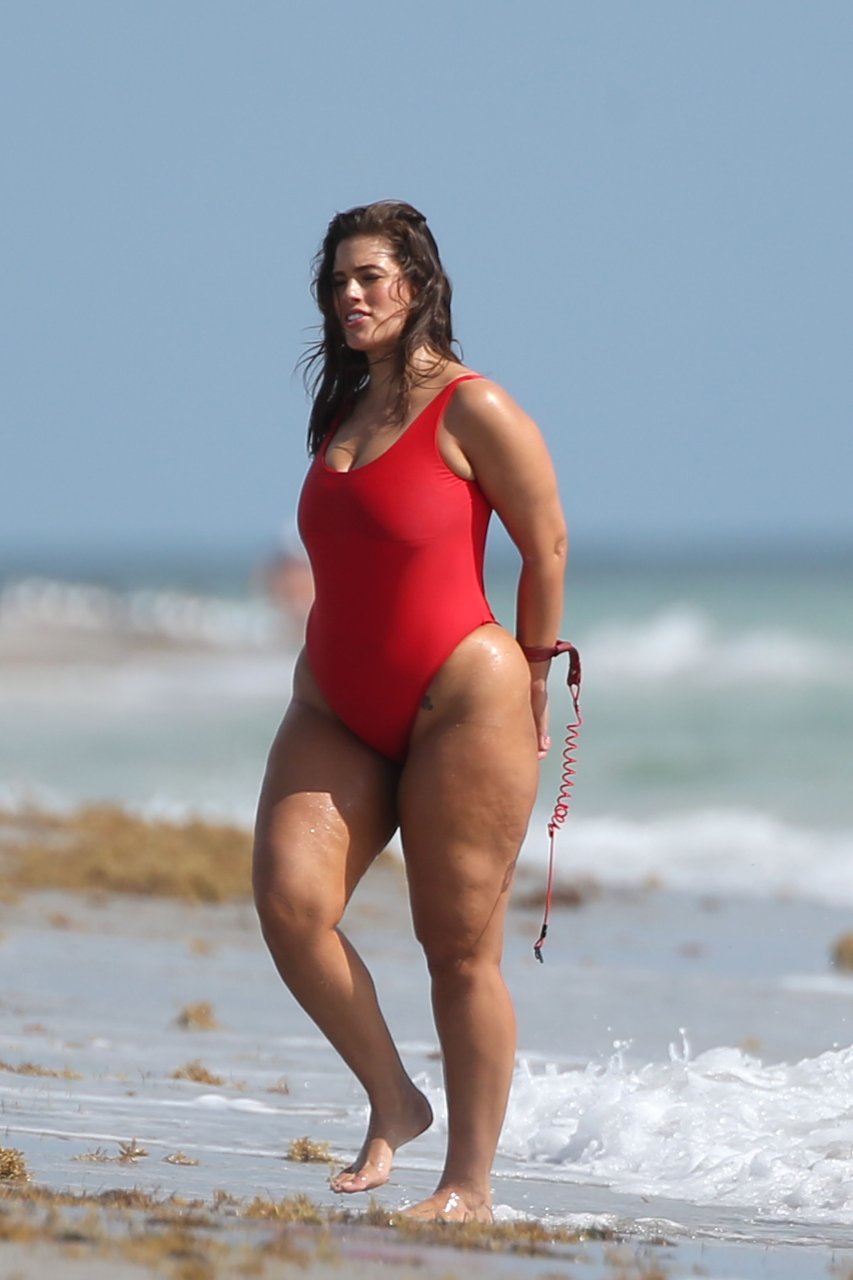Ashley Graham демонстрирует свою огромную попу в красном купальнике на пляже в Майами, 01.03.2017. Эшли Грэм — модель размера плюс (Glamour, Vogue, Harper’s Bazaar) из Линкольна (Небраска, США). Возраст — 29 лет, 30 октября 1987 года.
