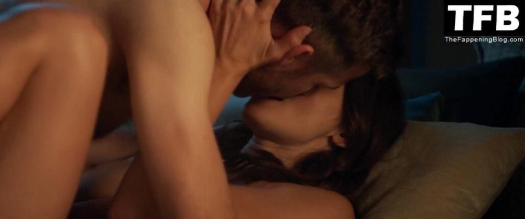 Эшли Грин целуется с парнем, после чего мы видим её топлесс на спине во время секса, Эшли обвивает ногами парня.