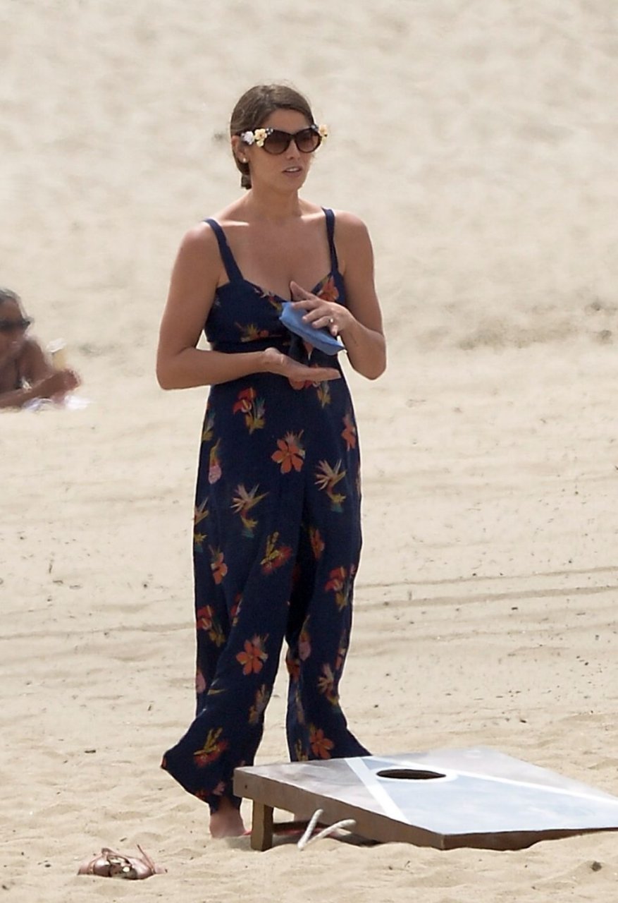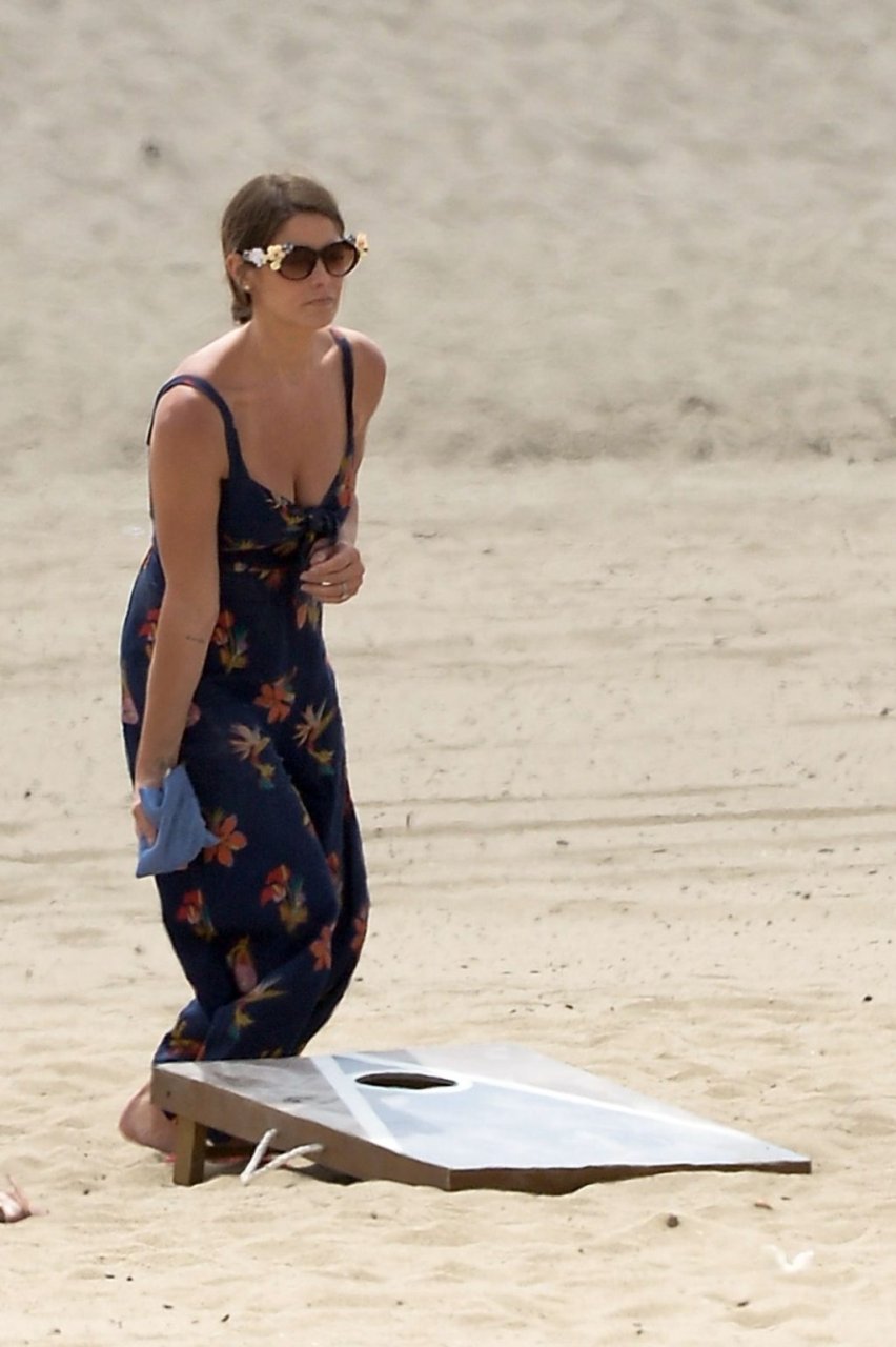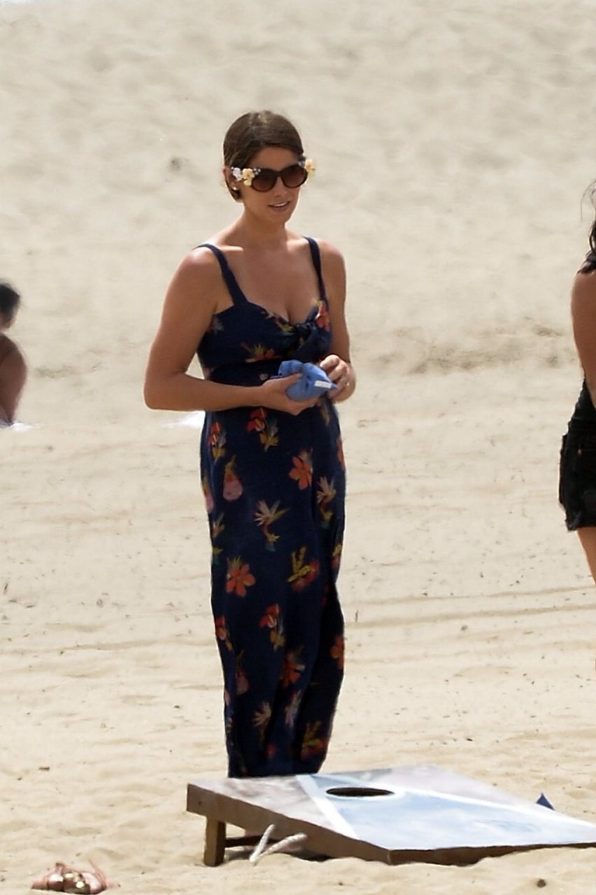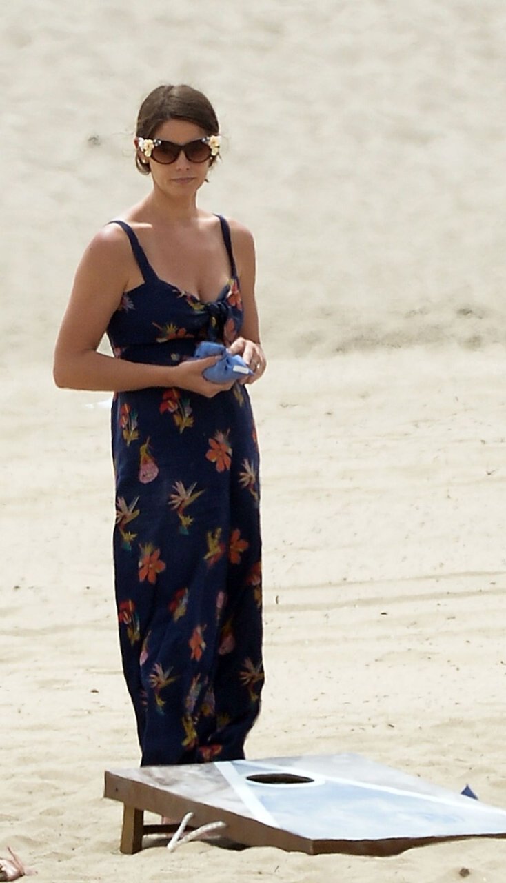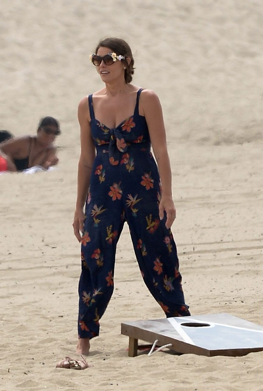 Эшли Грин замечена на пляжной вечеринке с друзьями в Лос-Анджелесе, 14.07.2019. 32-летняя актриса ходила босиком по песку в цветочном комбинезоне и в солнцезащитных очках с цветочным узором.