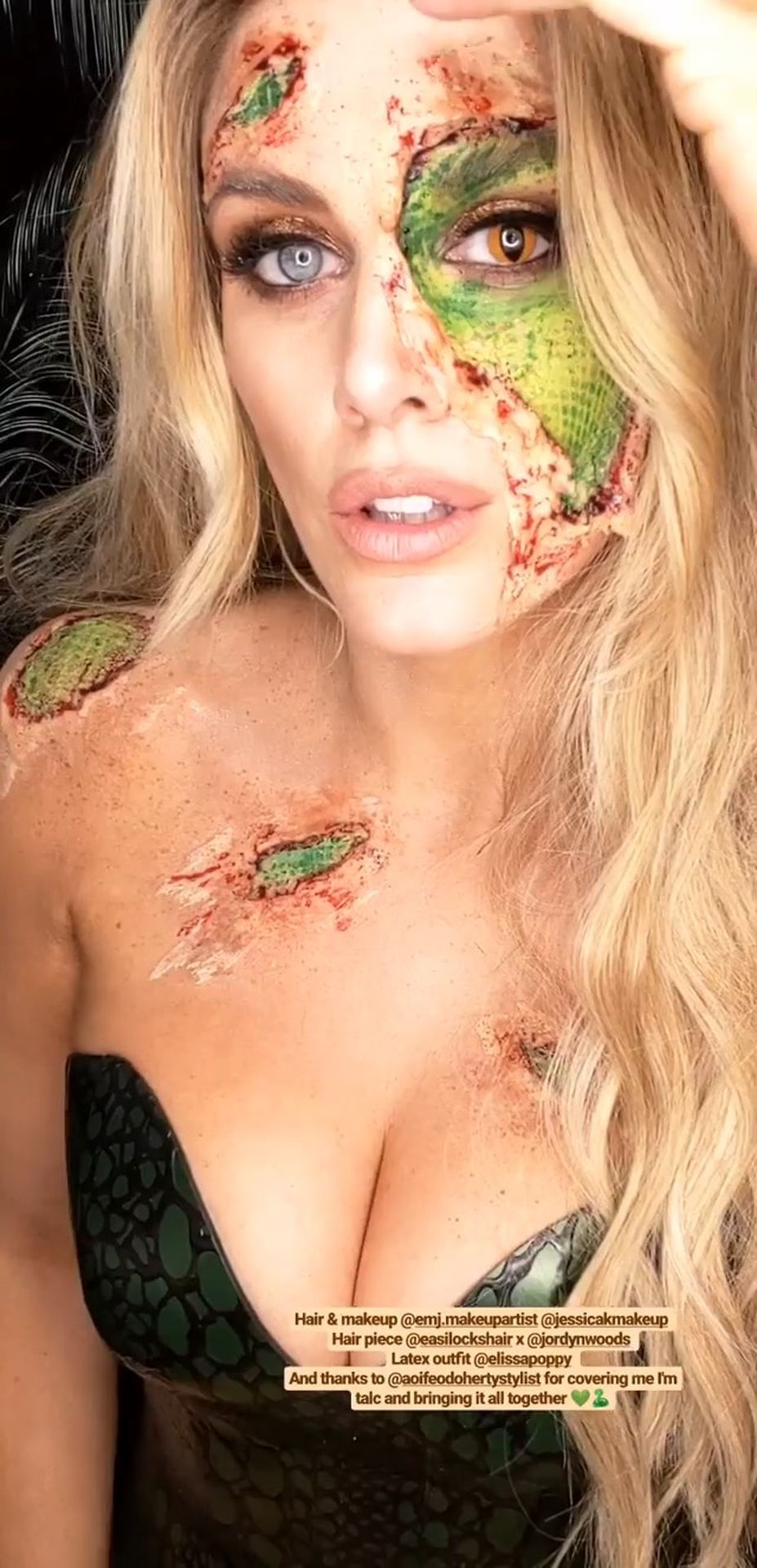 Ведущий телевидения и радио Джонатан Росс проводит свою ежегодную Хэллоуин-вечеринку в Лондоне, 01.11.2019. 32-летняя звезда реалити-шоу и диджей Эшли Джеймс появилась здесь в сексуальном латексном костюме “Змея”, демонстрируя свою знаменитую грудь.